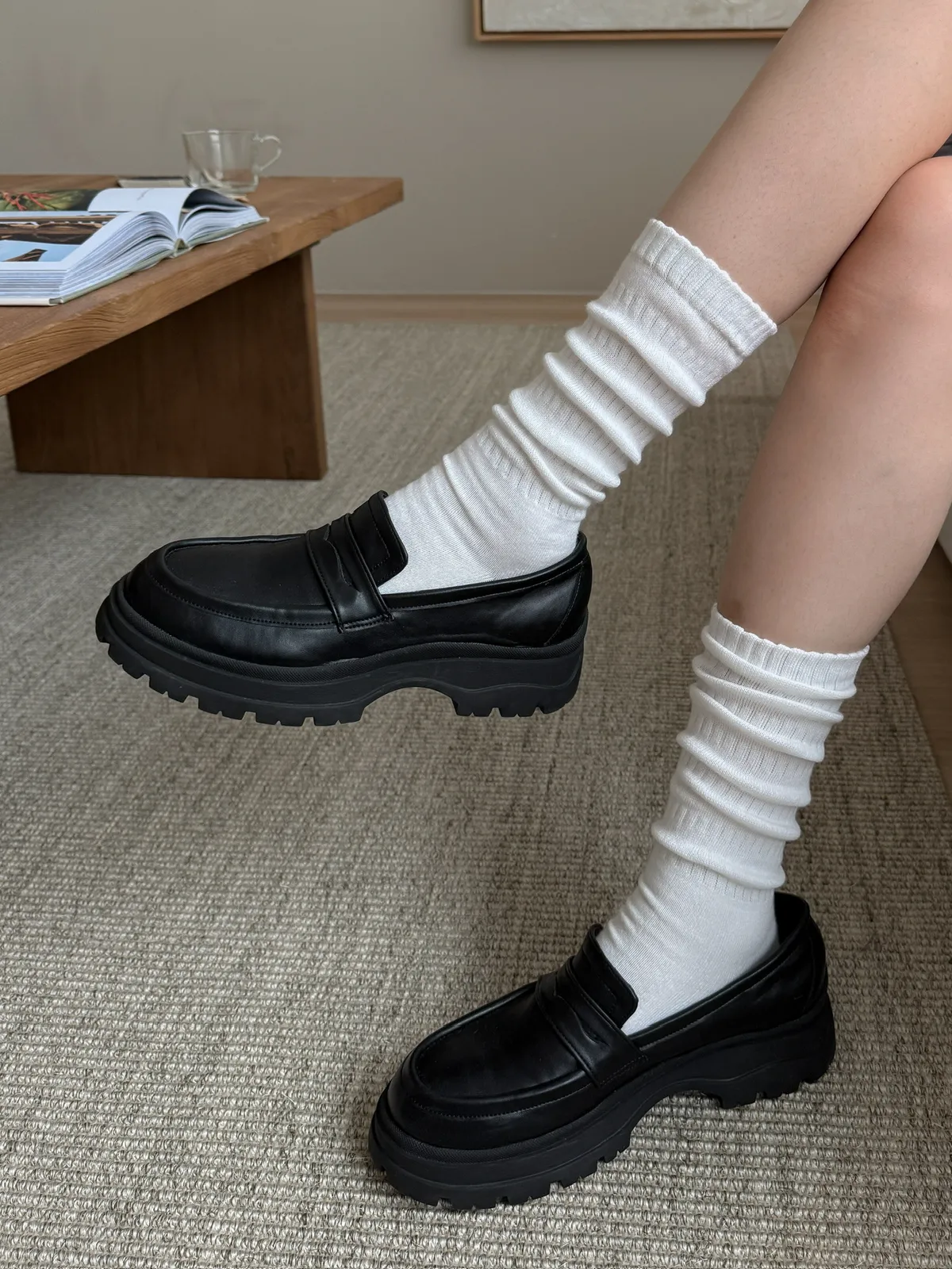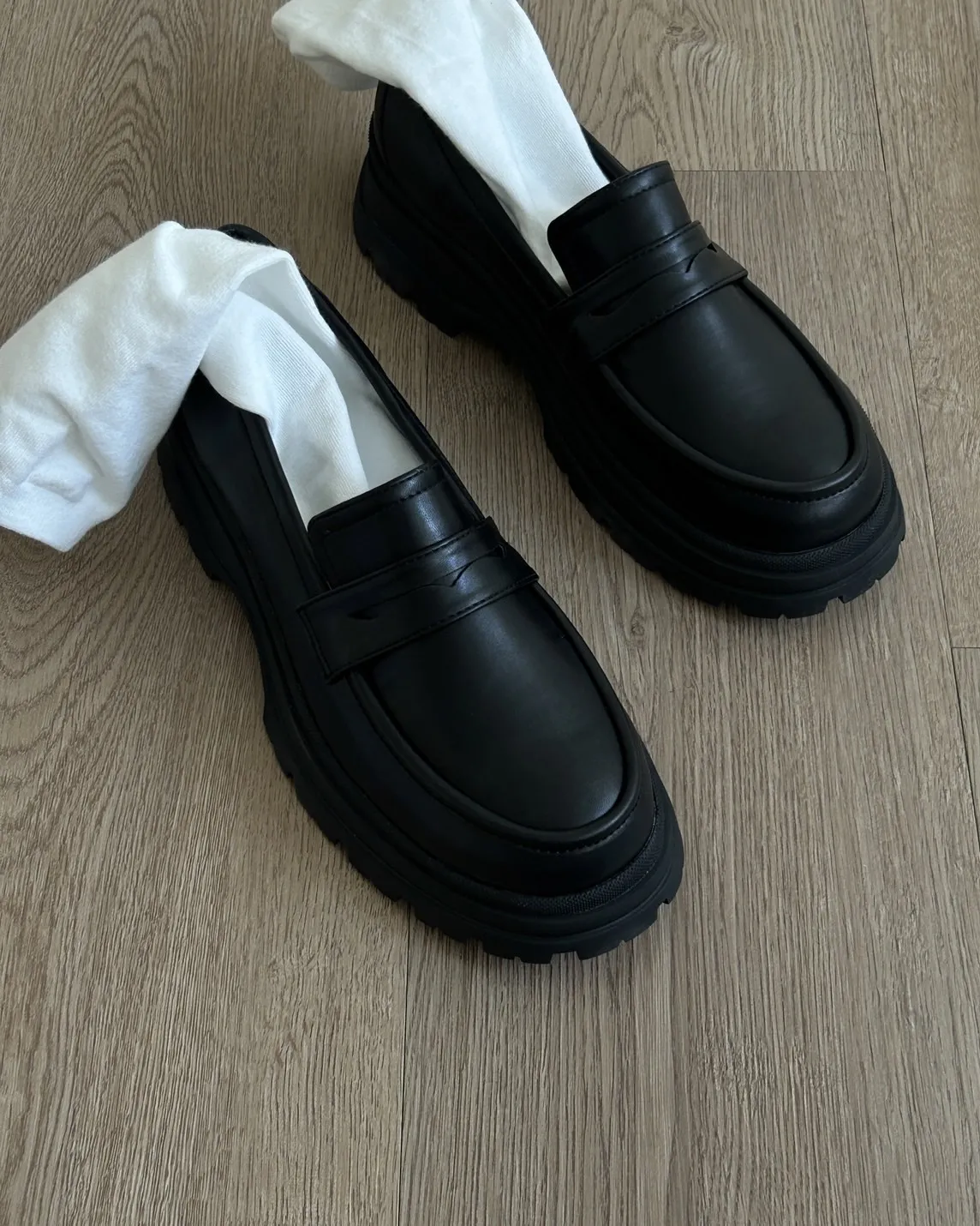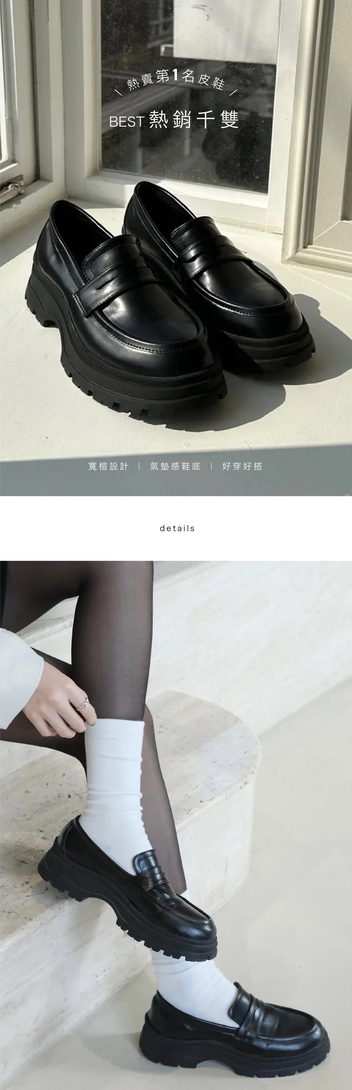 (持續熱銷千雙!!)長腿濾鏡厚底黑皮鞋