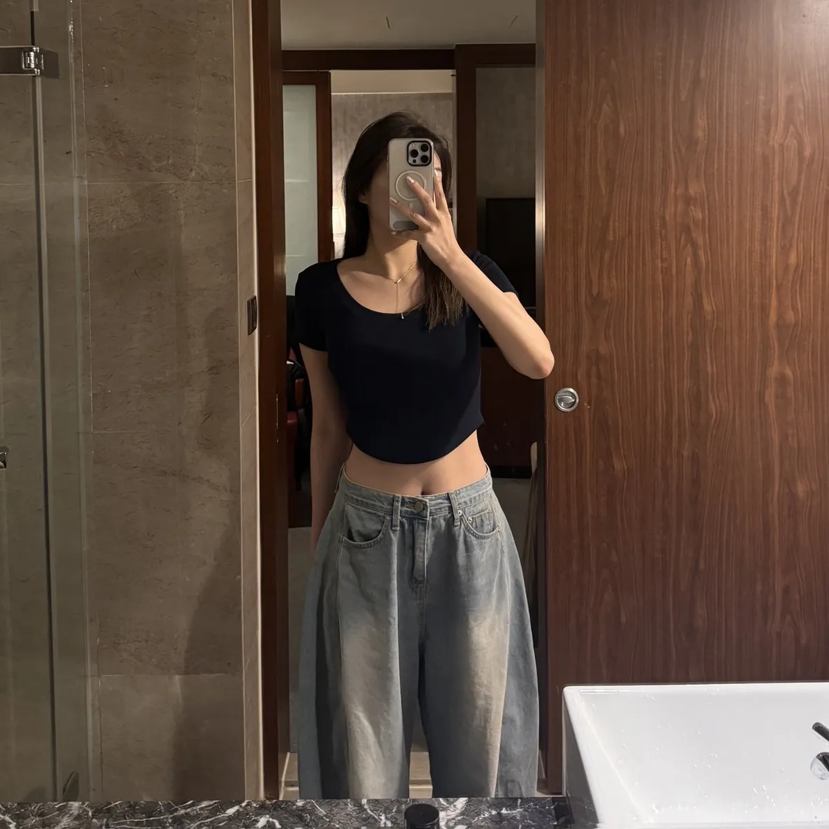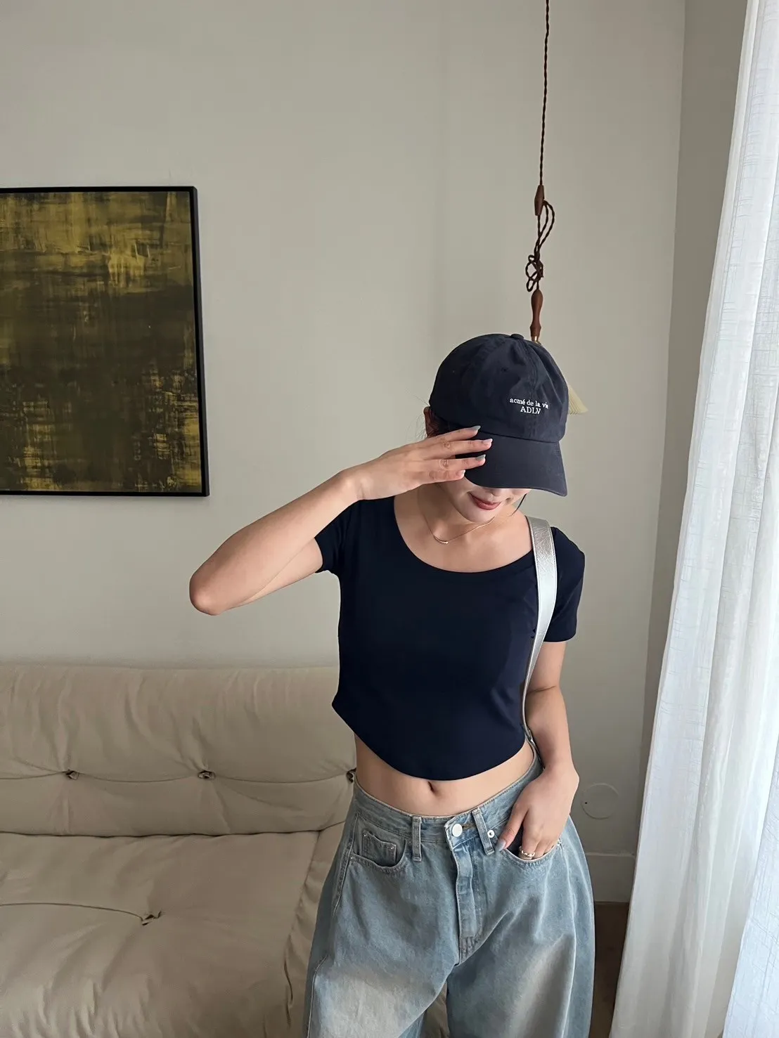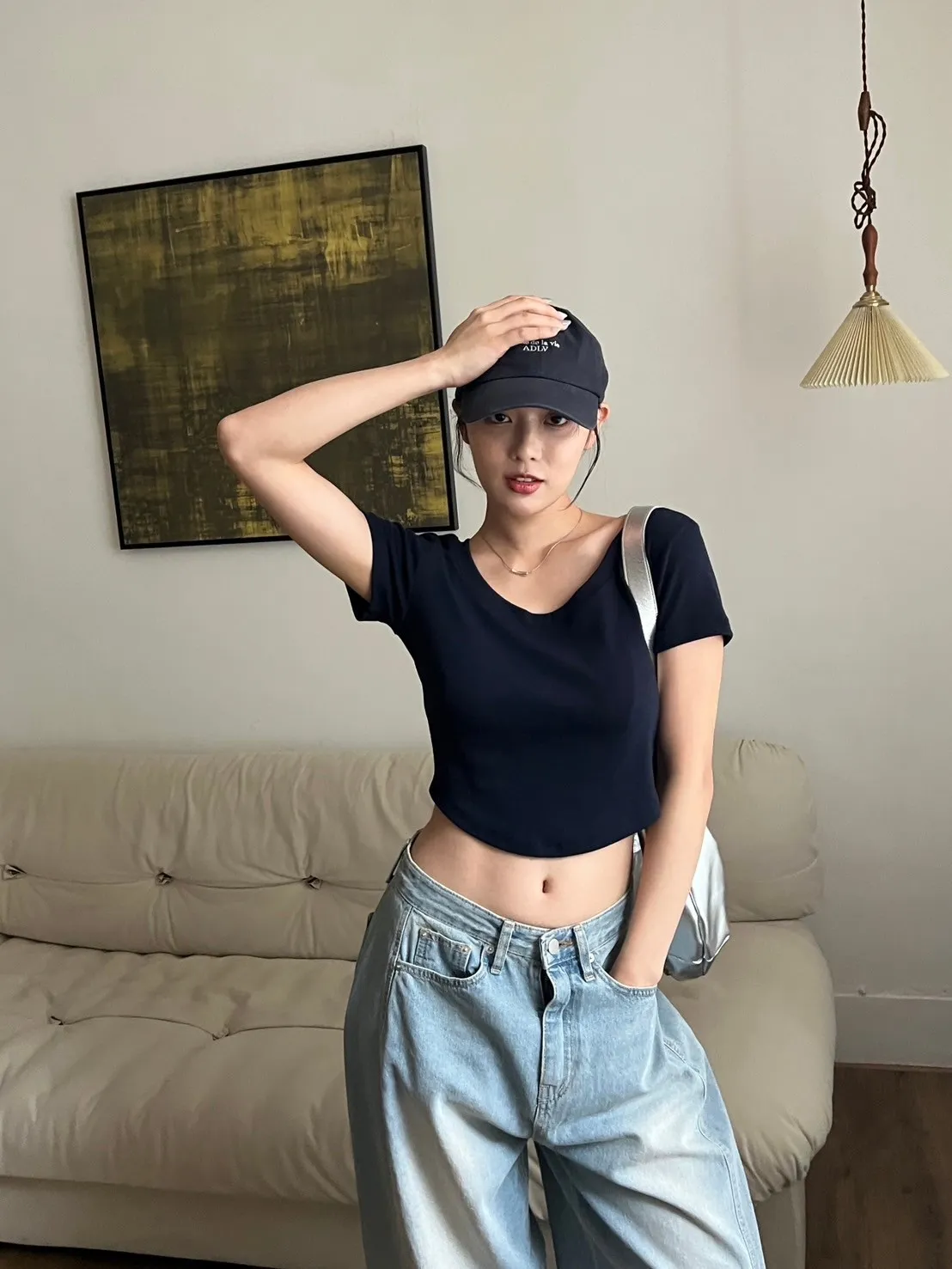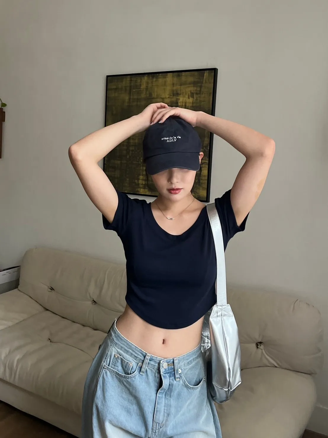 正常不會露肚子但舉手投足