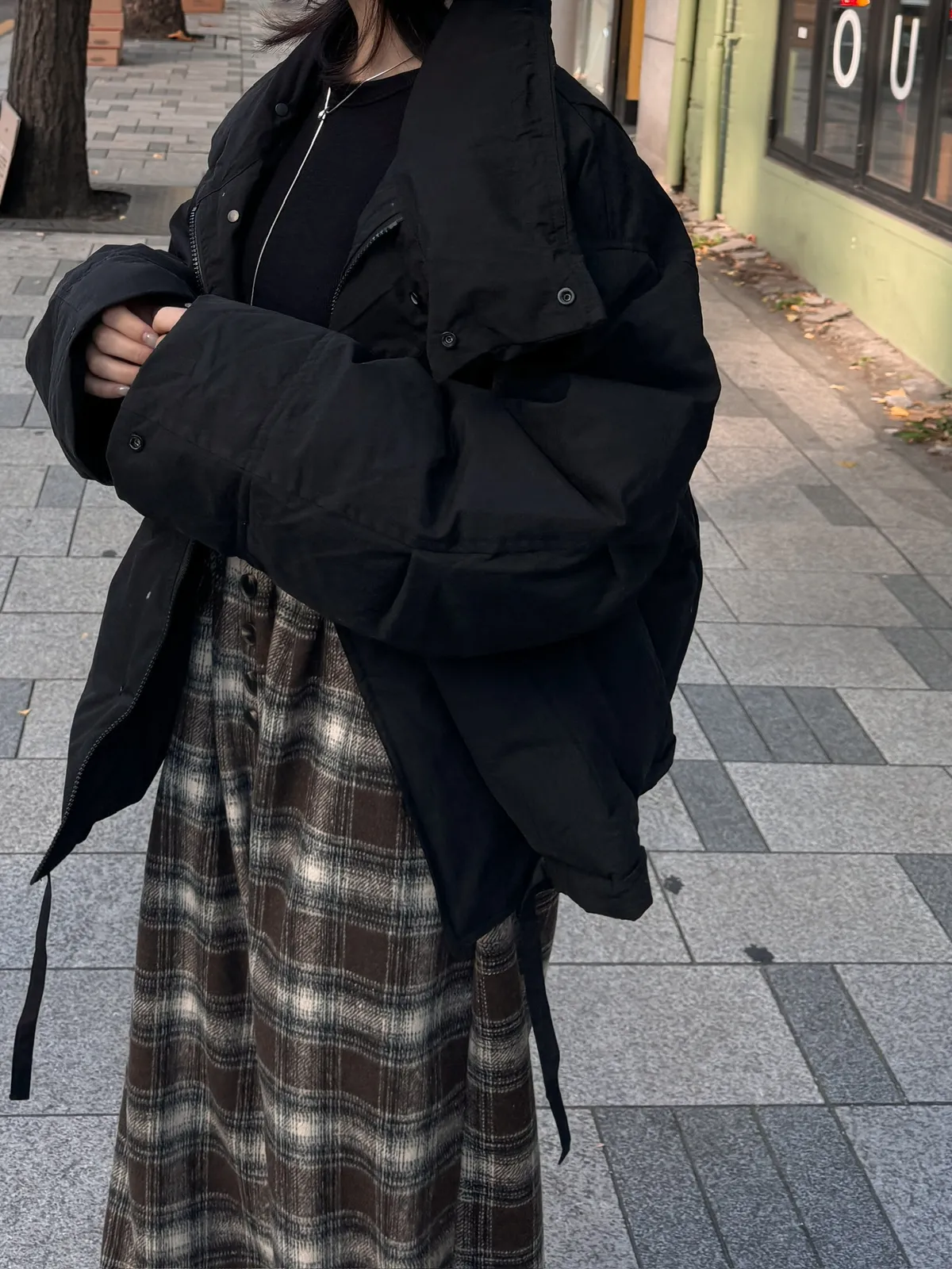 拉鍊上下開式搭配下擺鬆緊可以製造一點開衩感