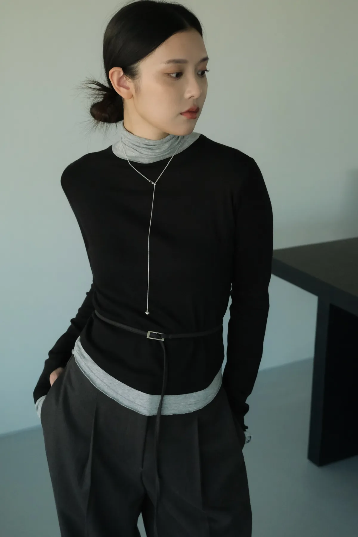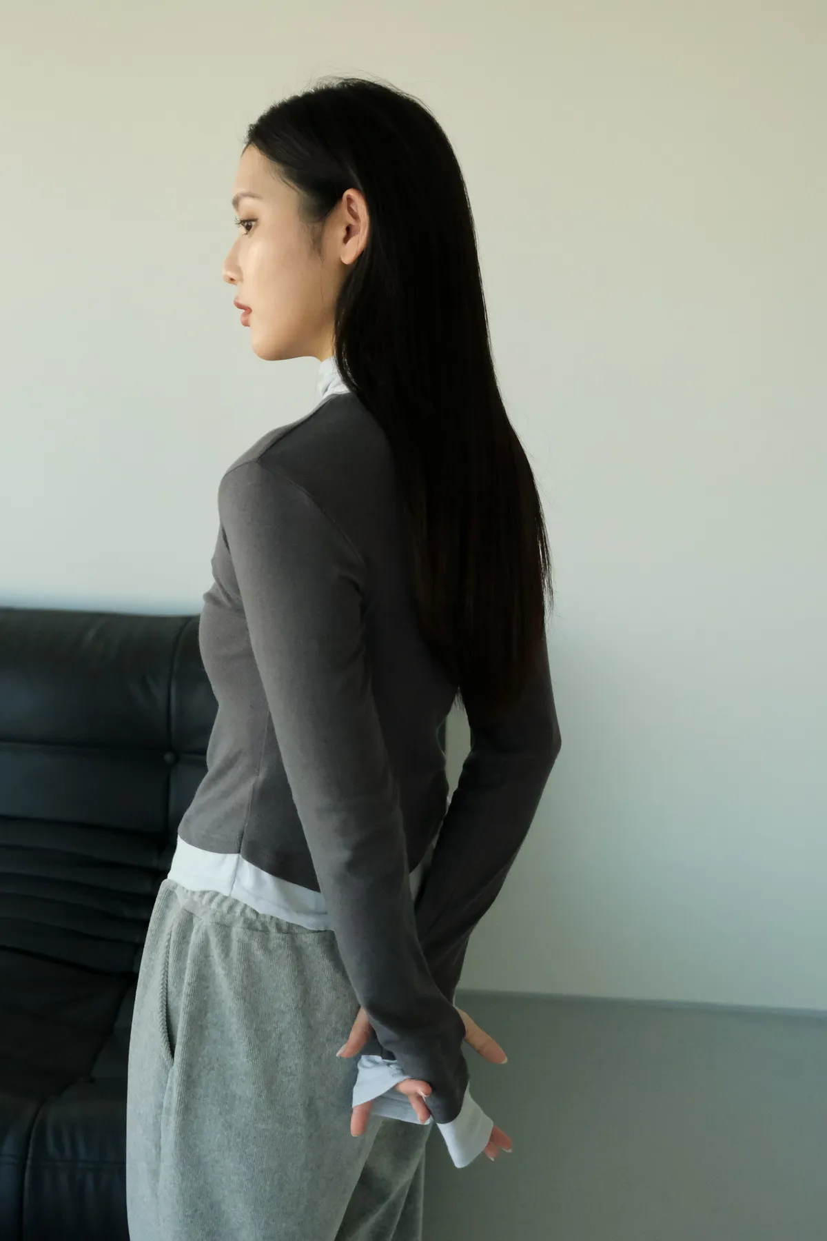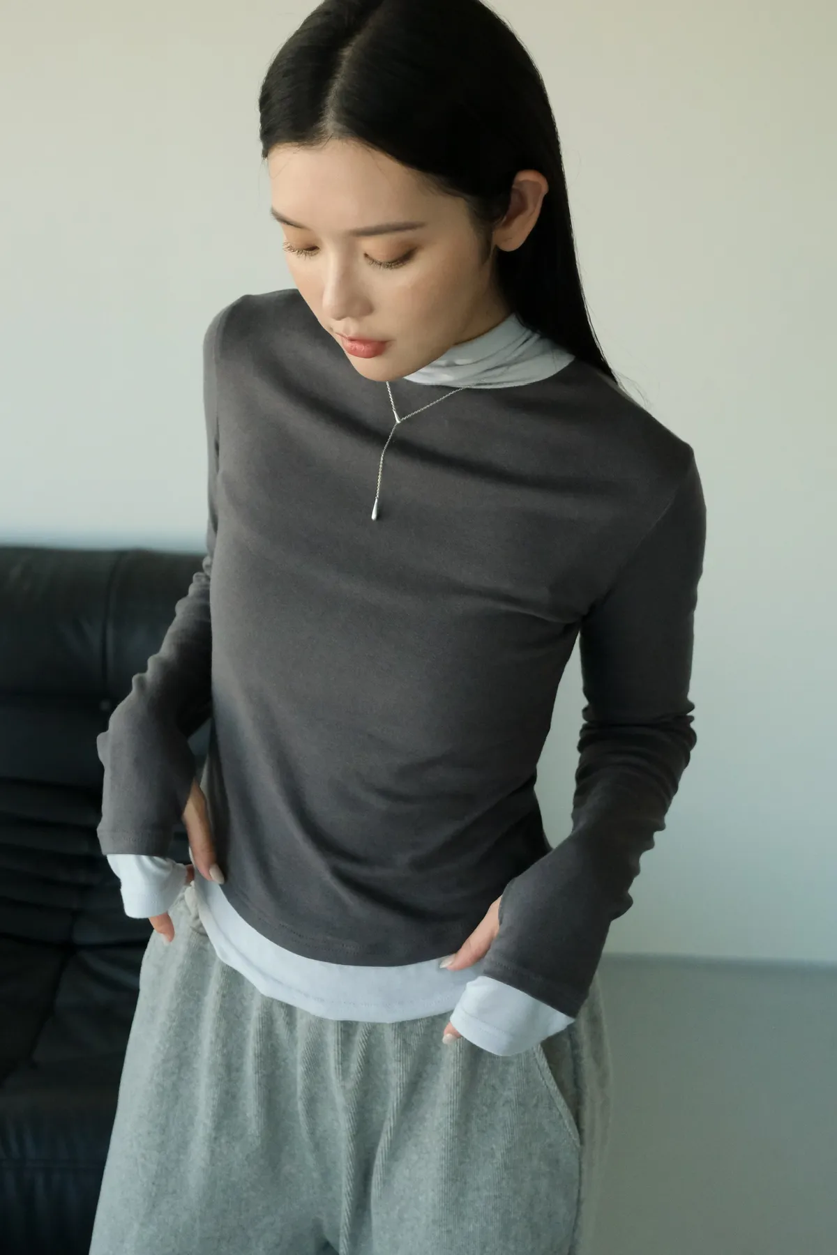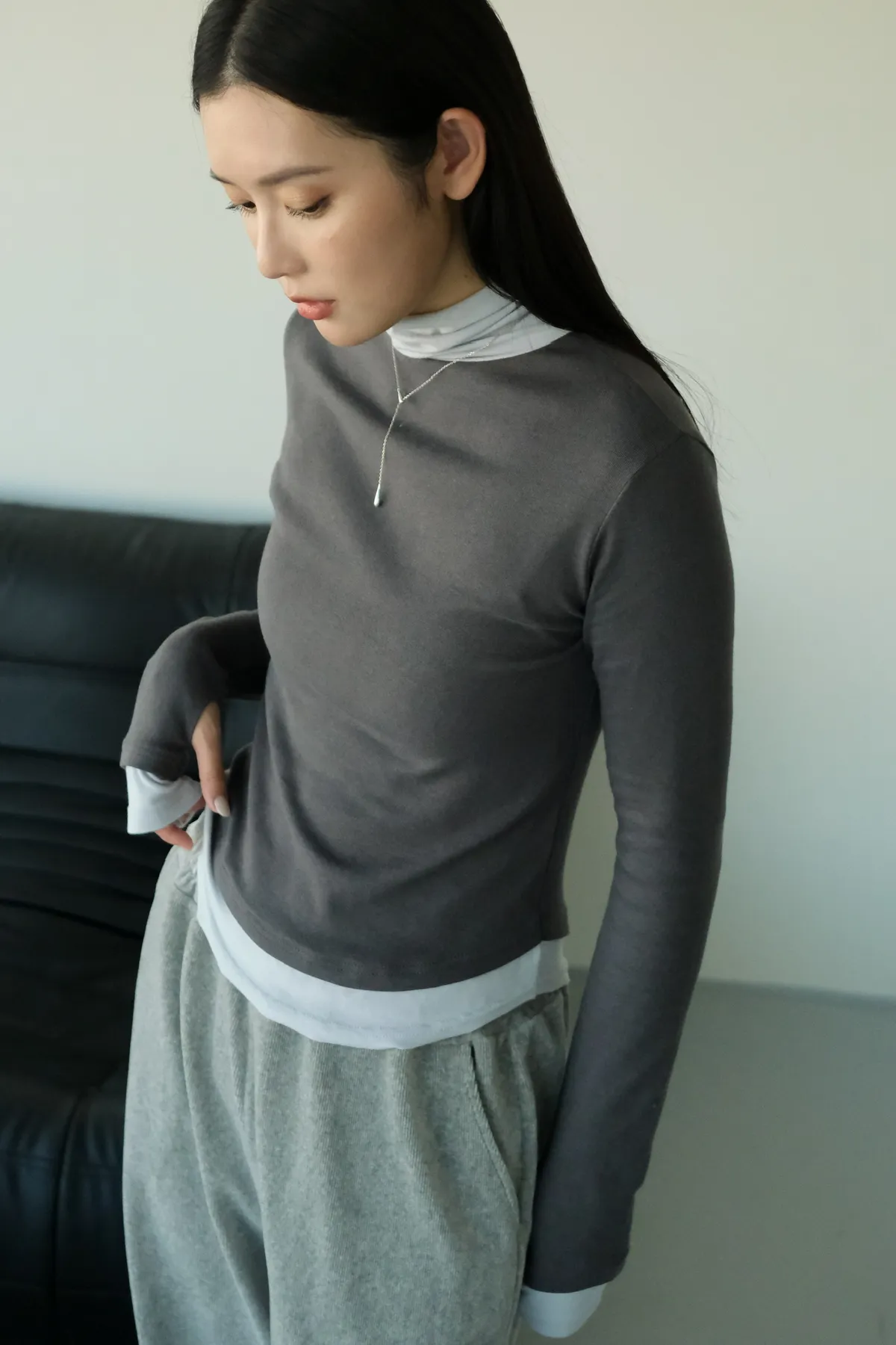 視覺上是疊穿兩件同款上衣的感覺