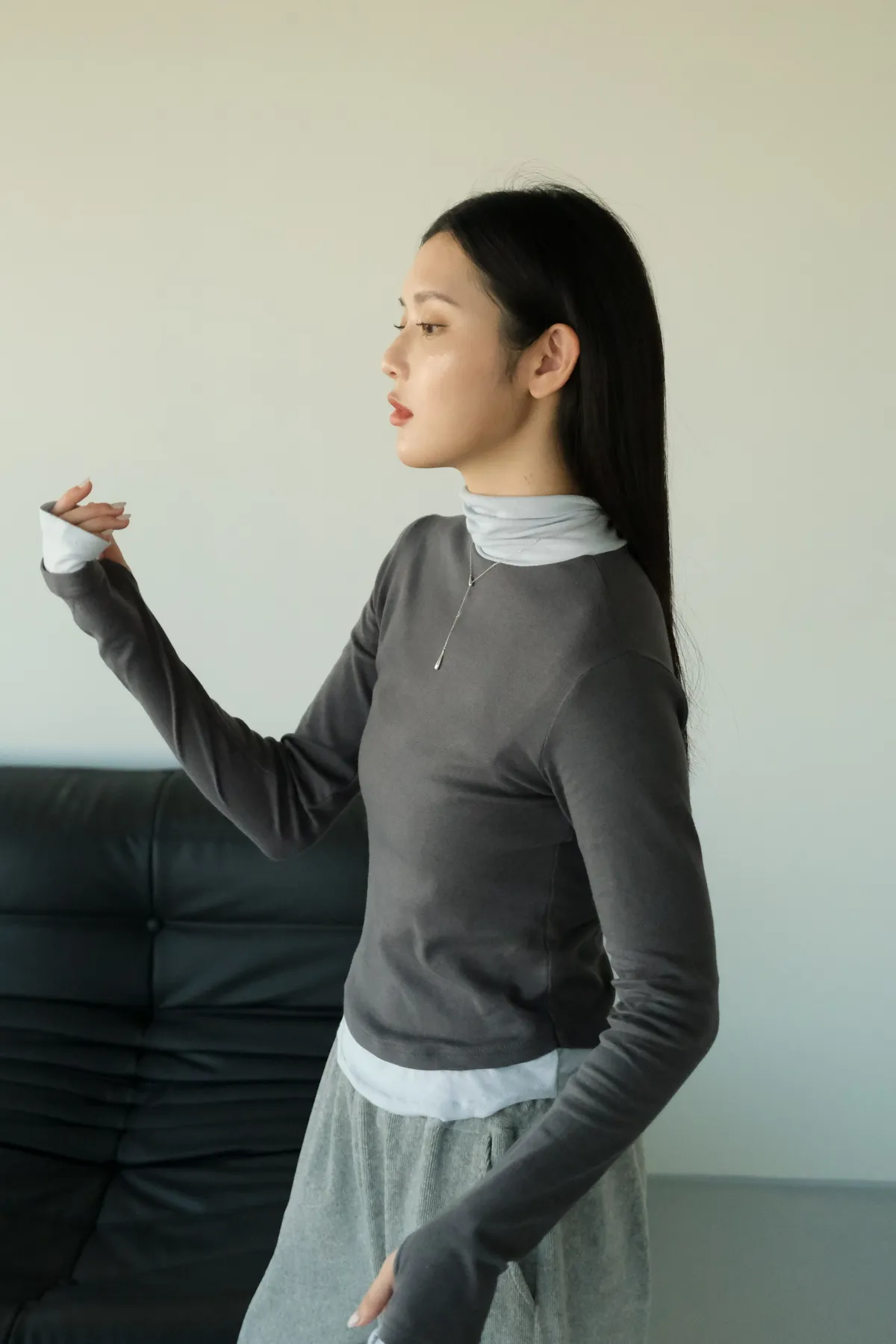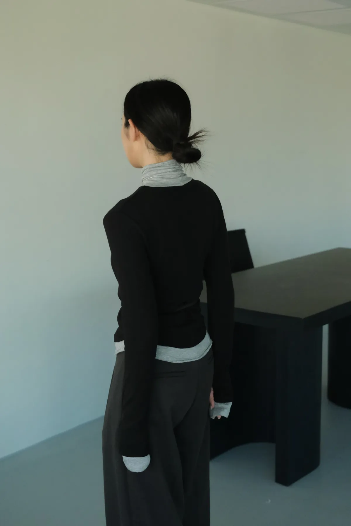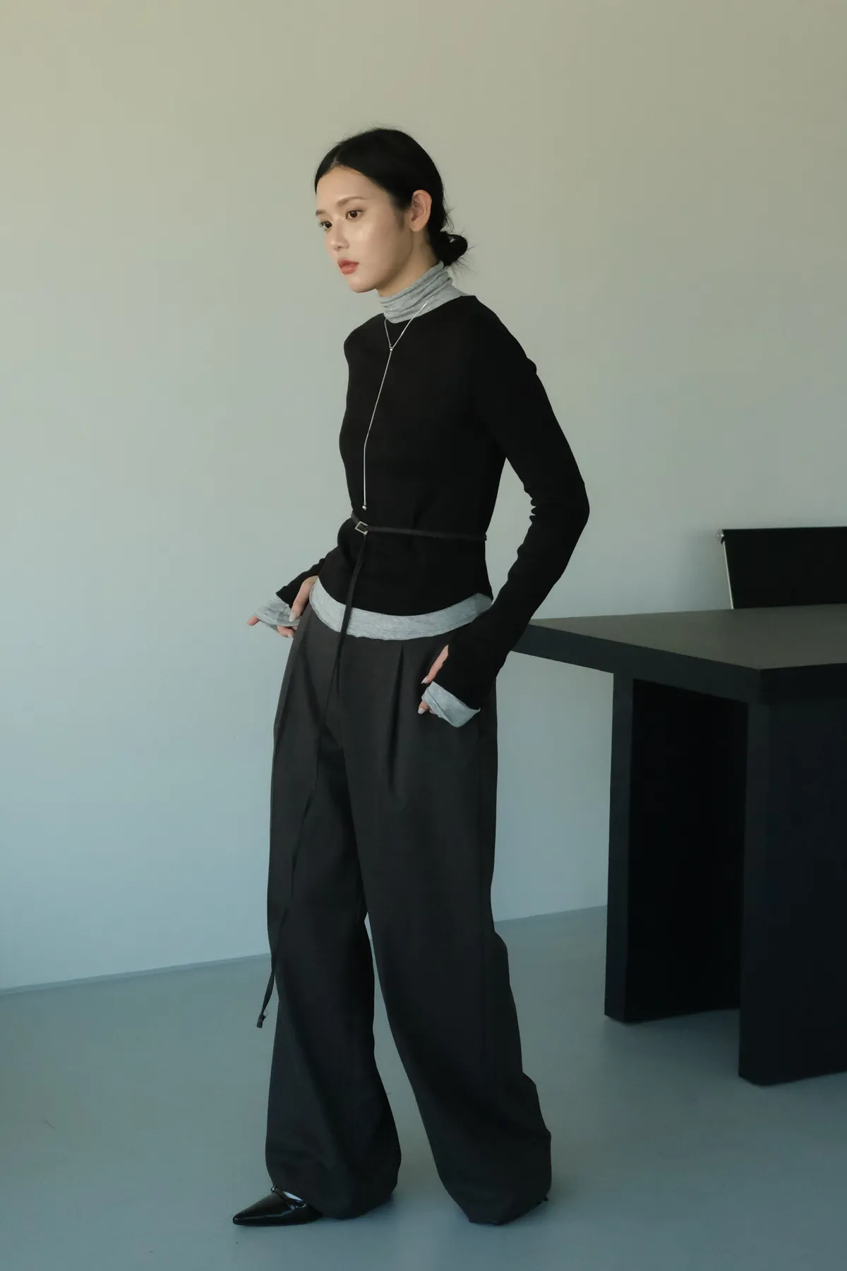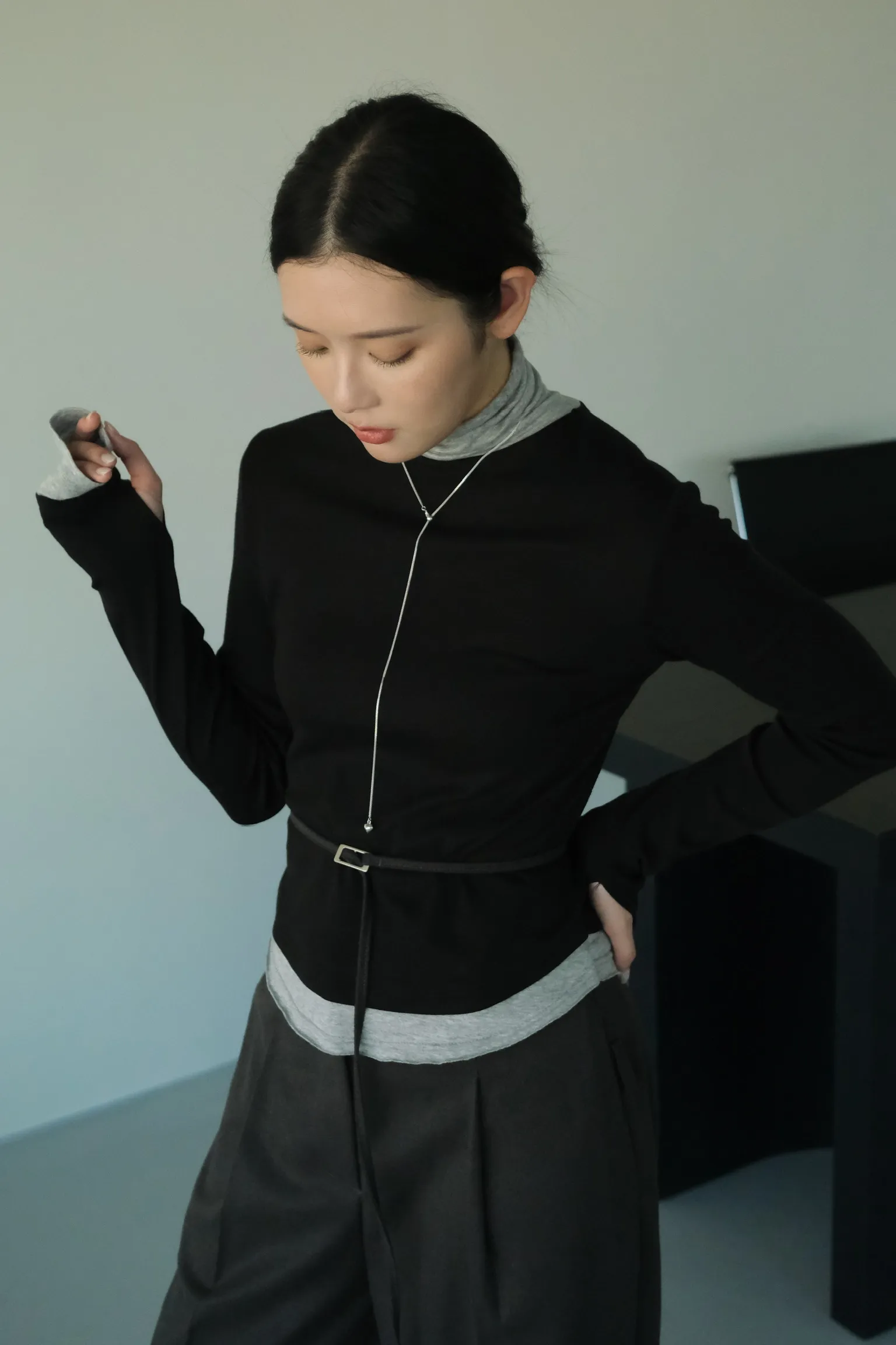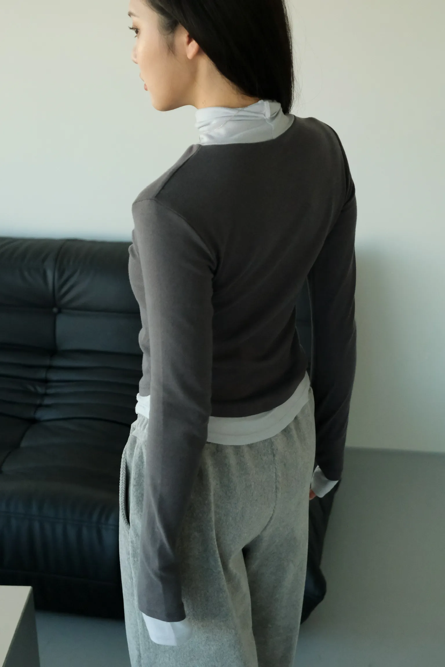 視覺上是疊穿兩件同款上衣的感覺