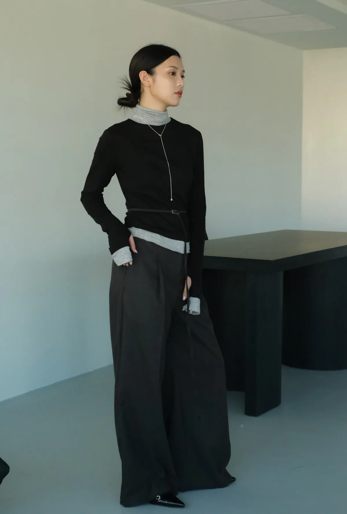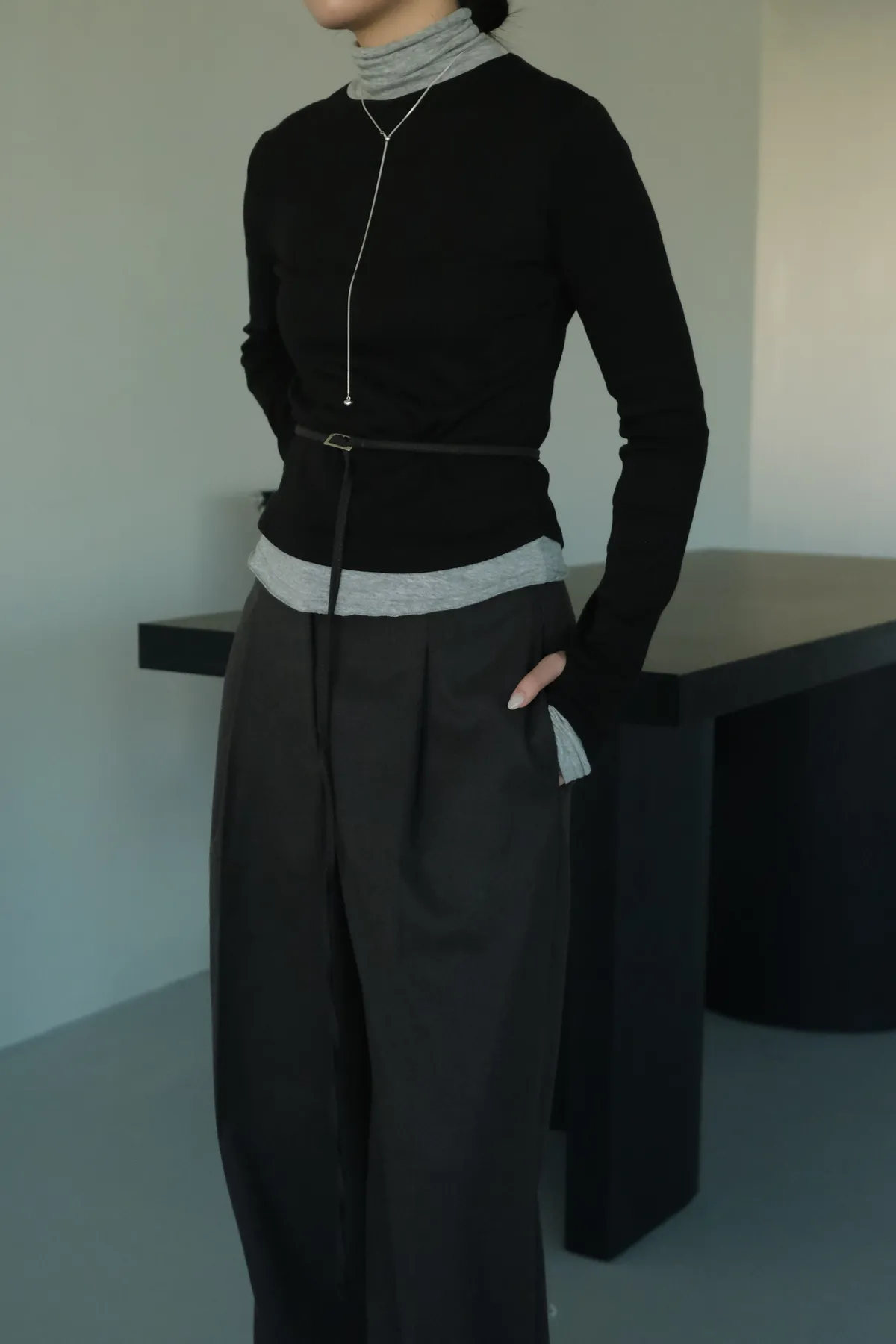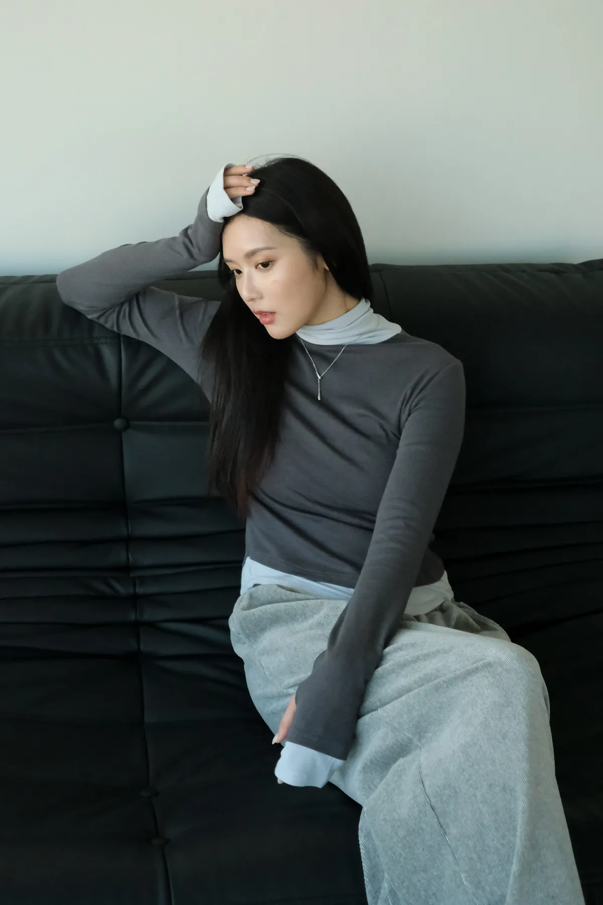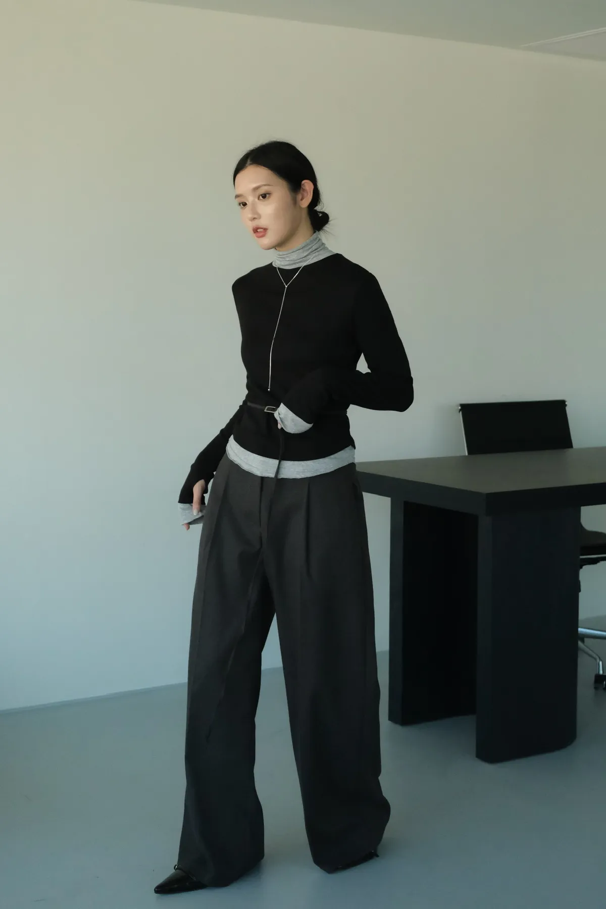 視覺上是疊穿兩件同款上衣的感覺