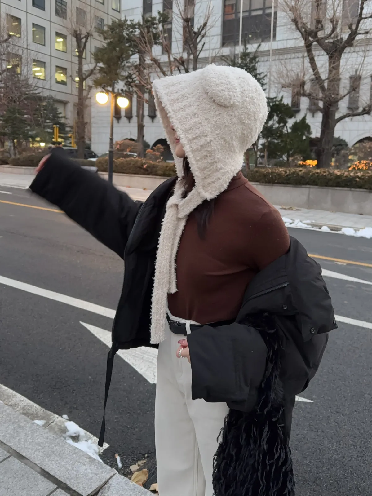 進到室內不想戴也可以掛在肩上當疊搭造型(會有帽T感)