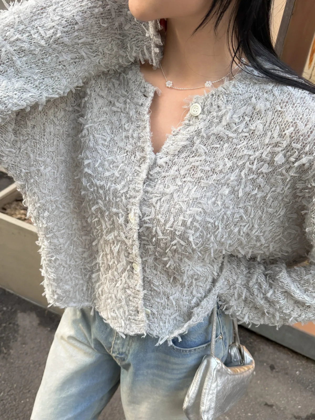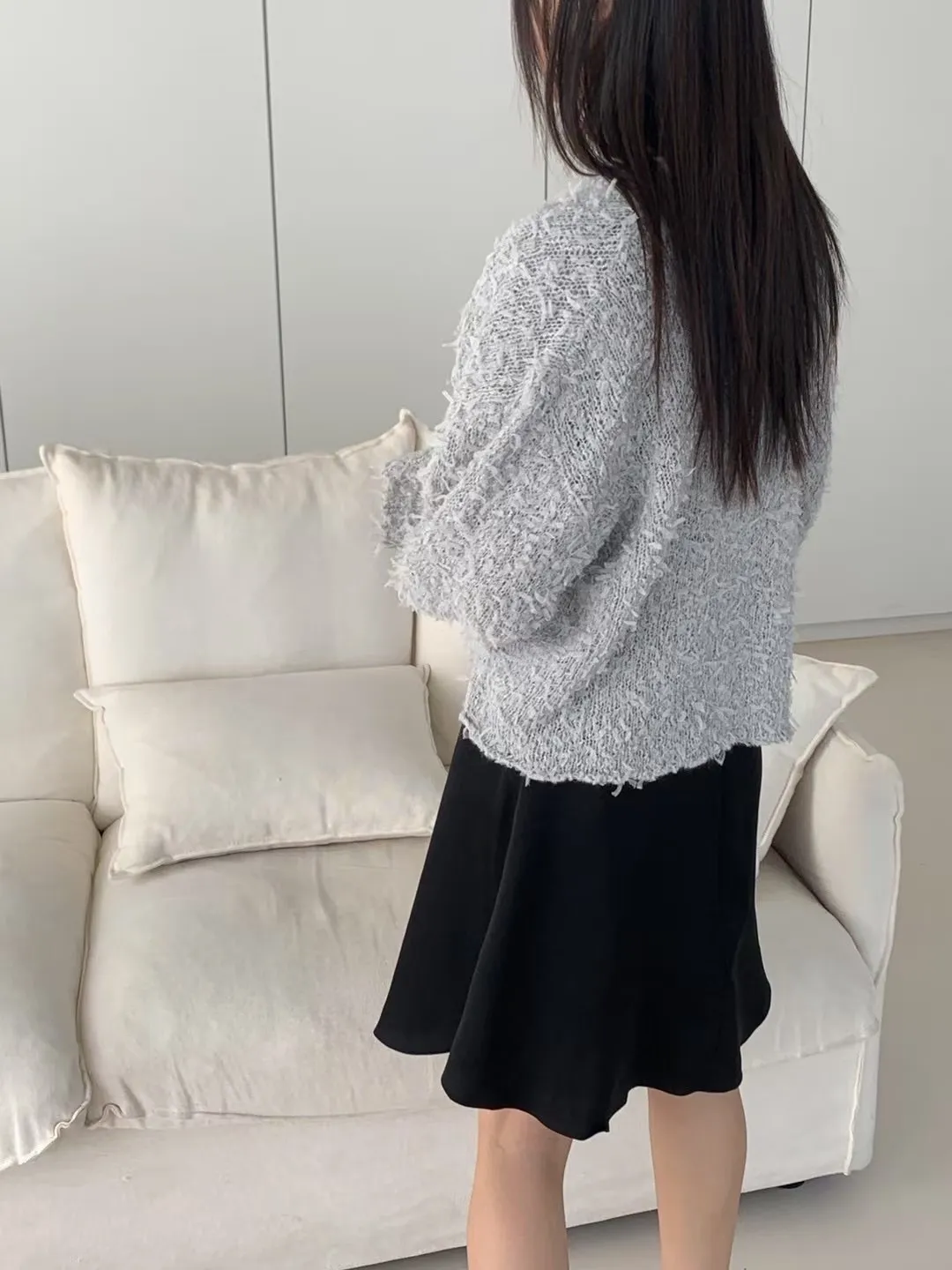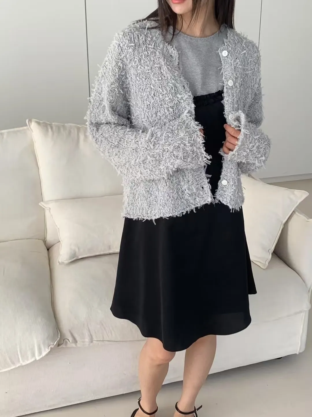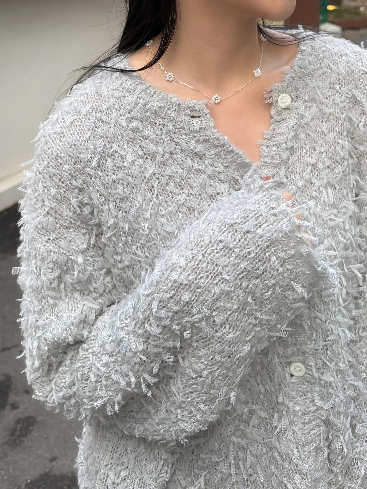 布料是網紗針織的羽毛感