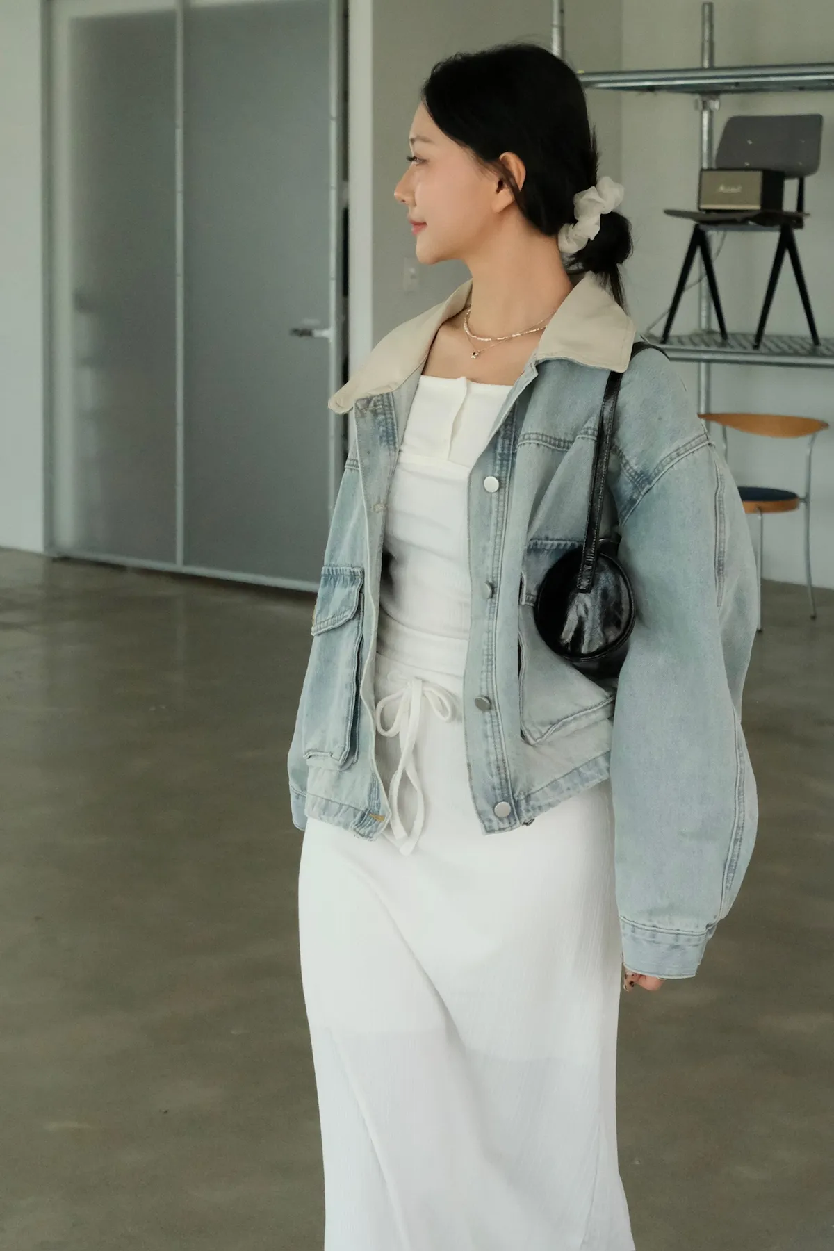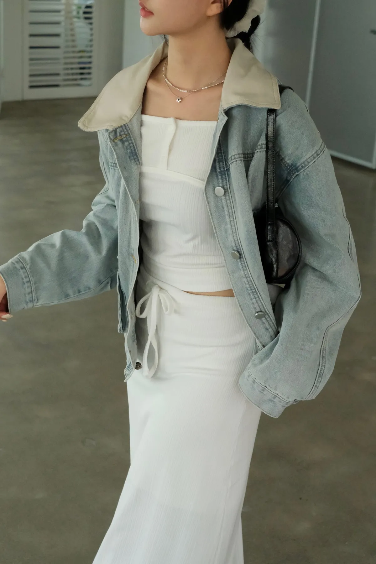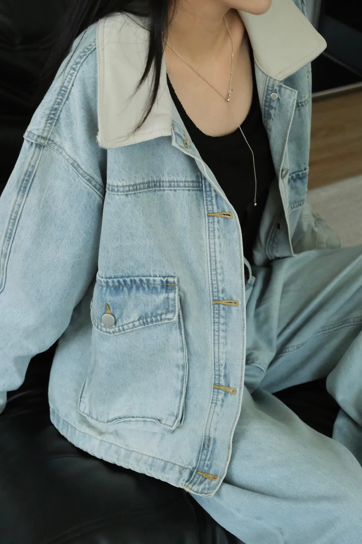 領子搭杏色軟皮革超級Q