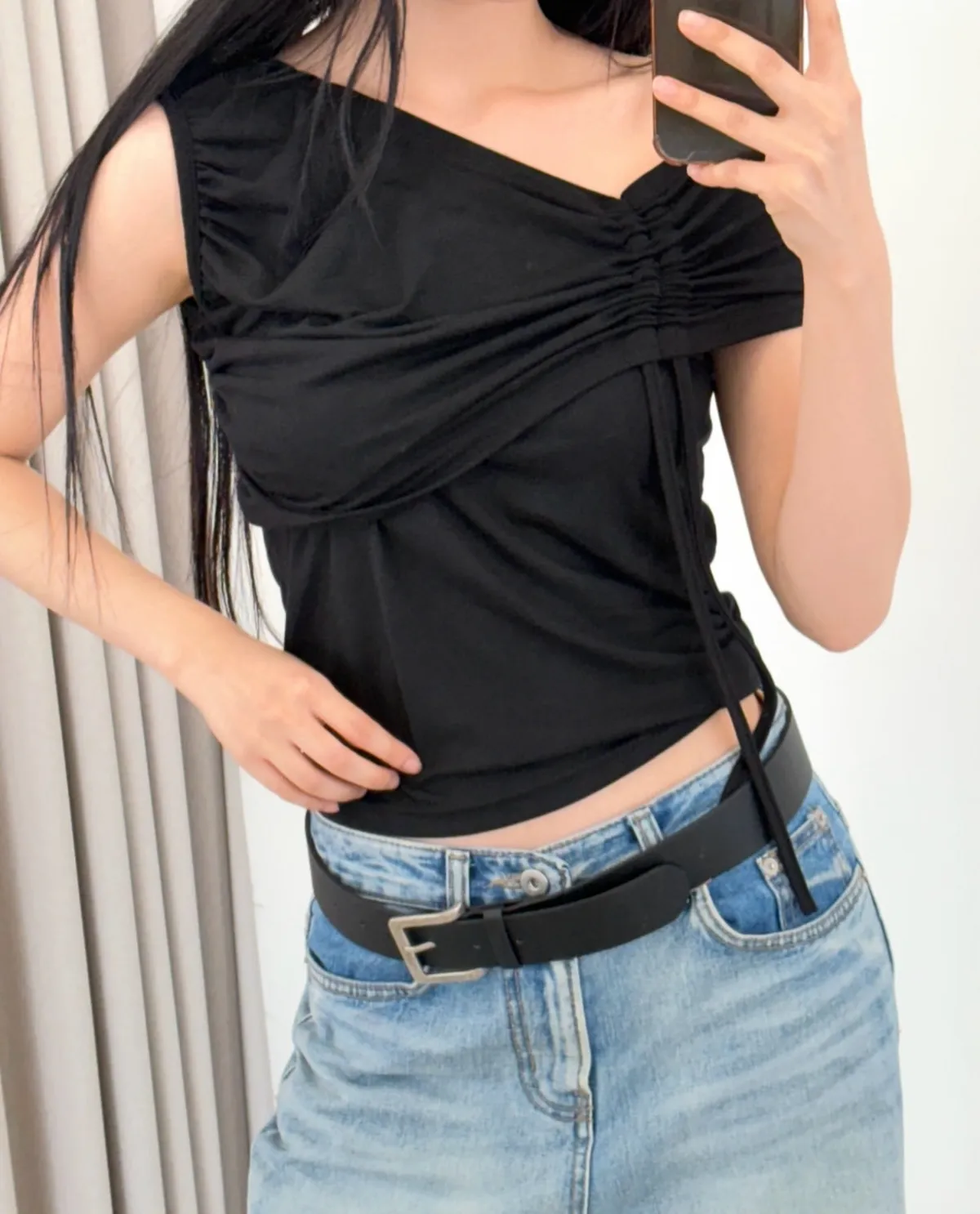 外層:半截式抽繩抓皺設計(可以自行調整)