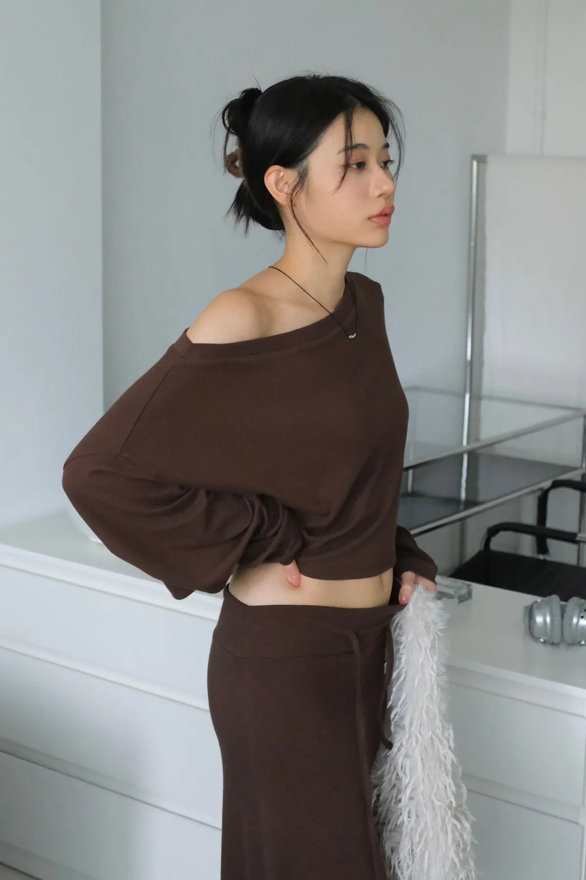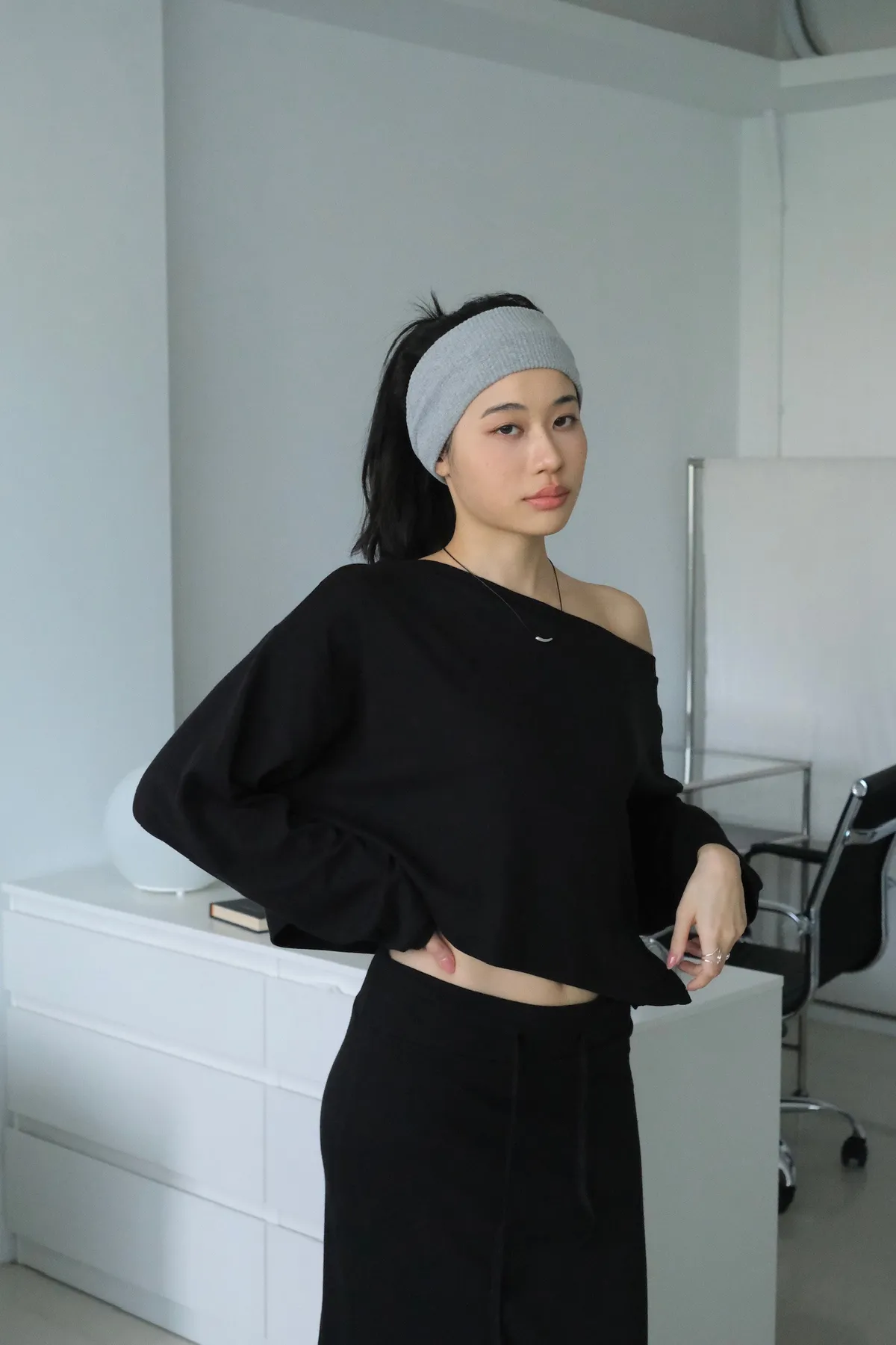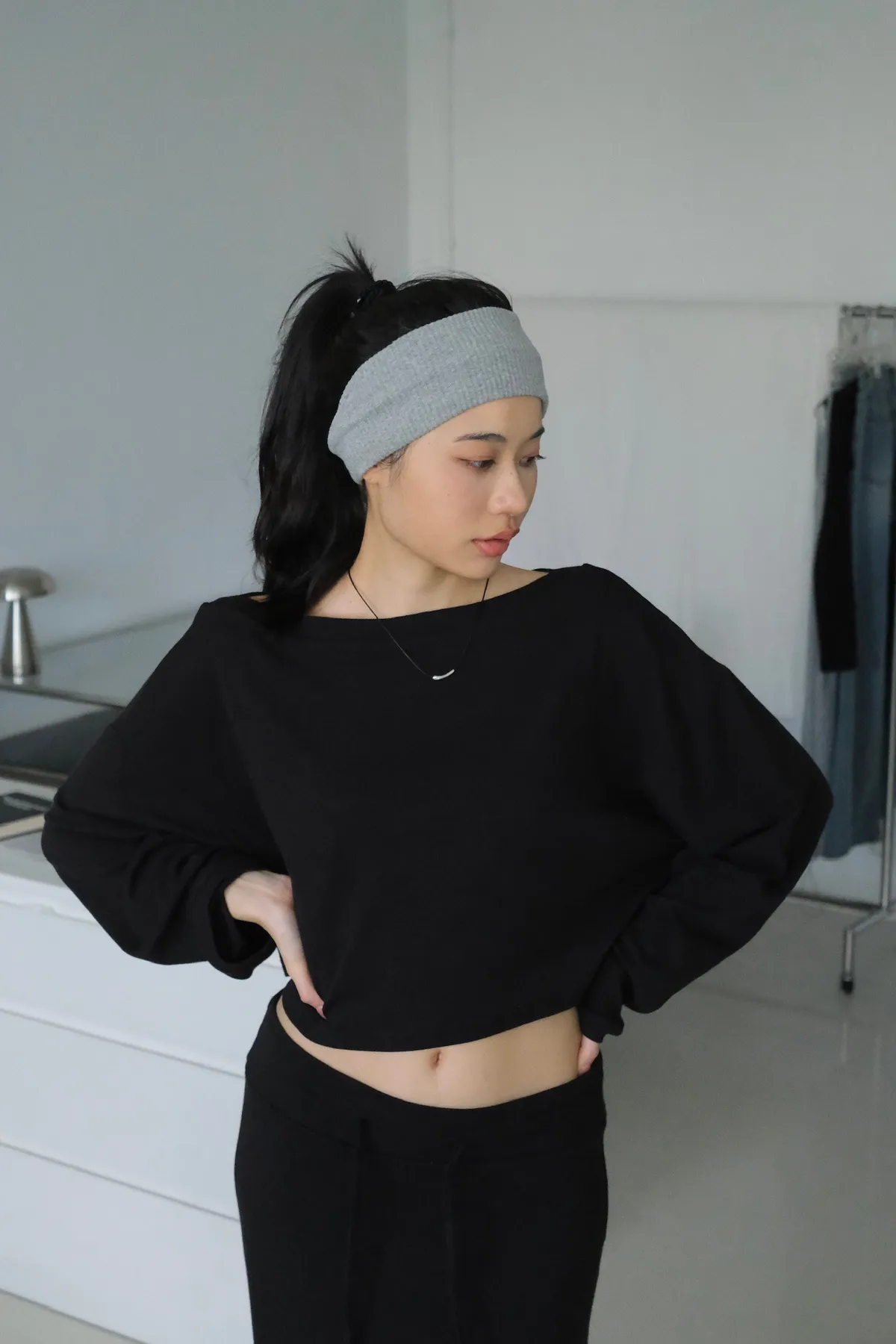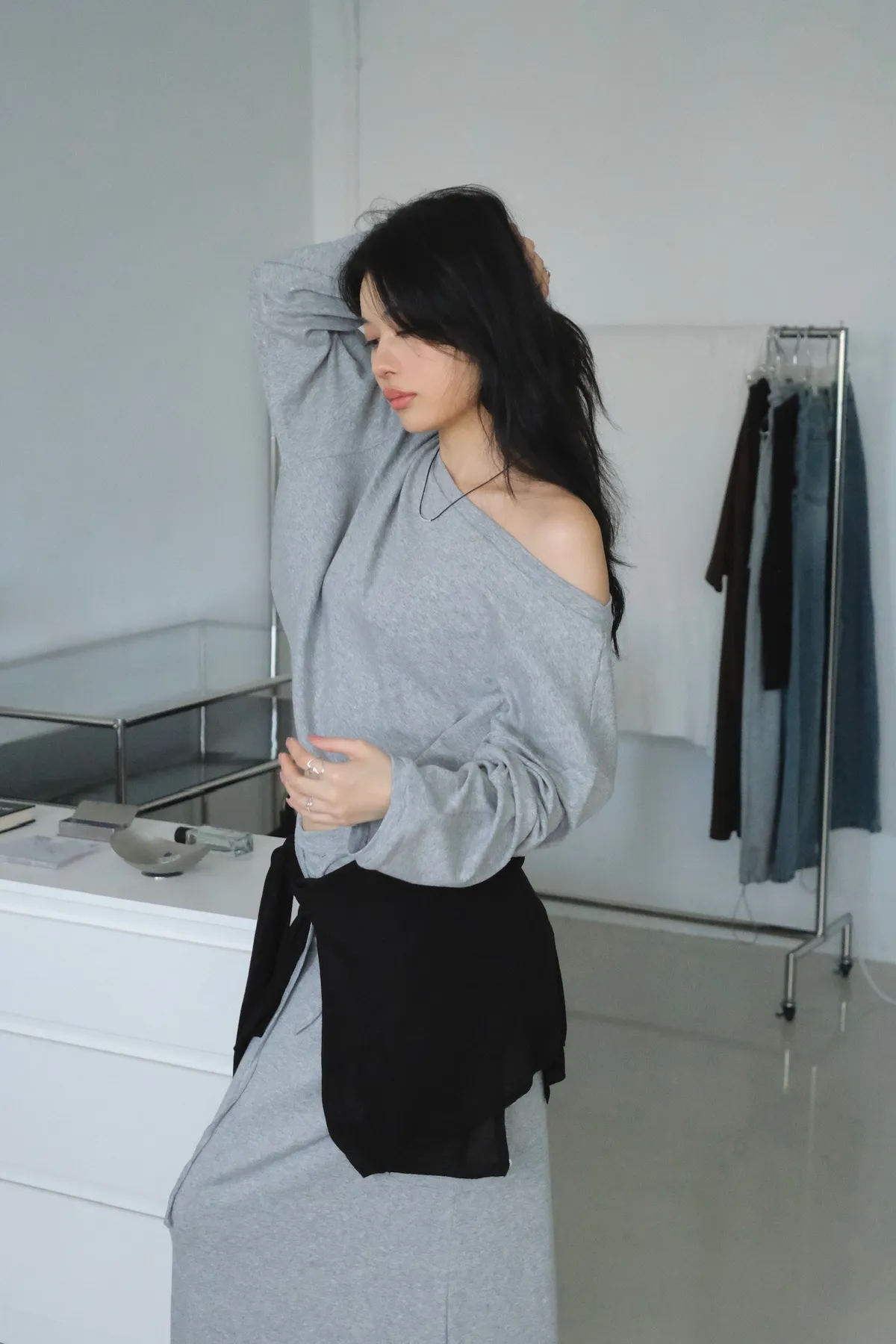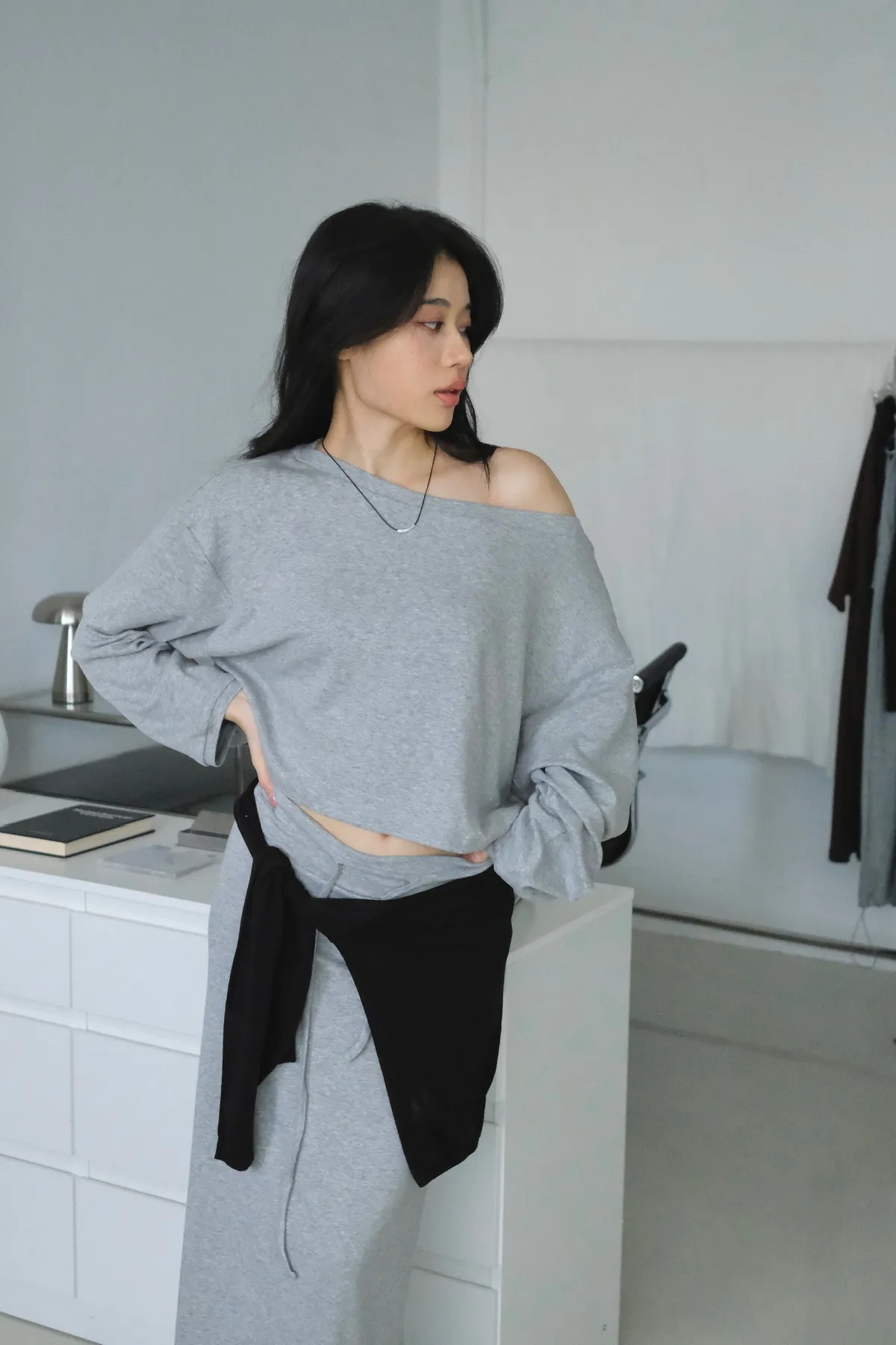 短版落肩+寬袖設計 慵懶隨性