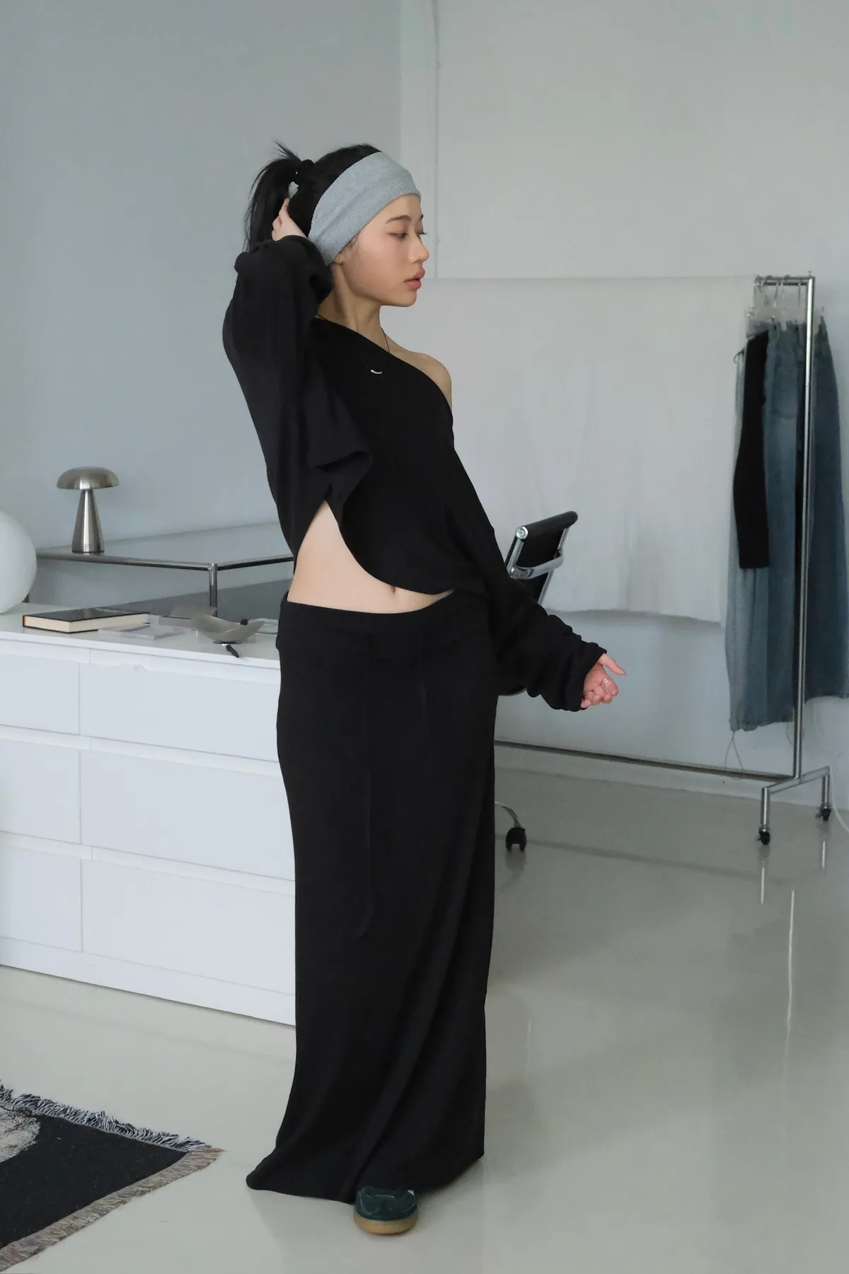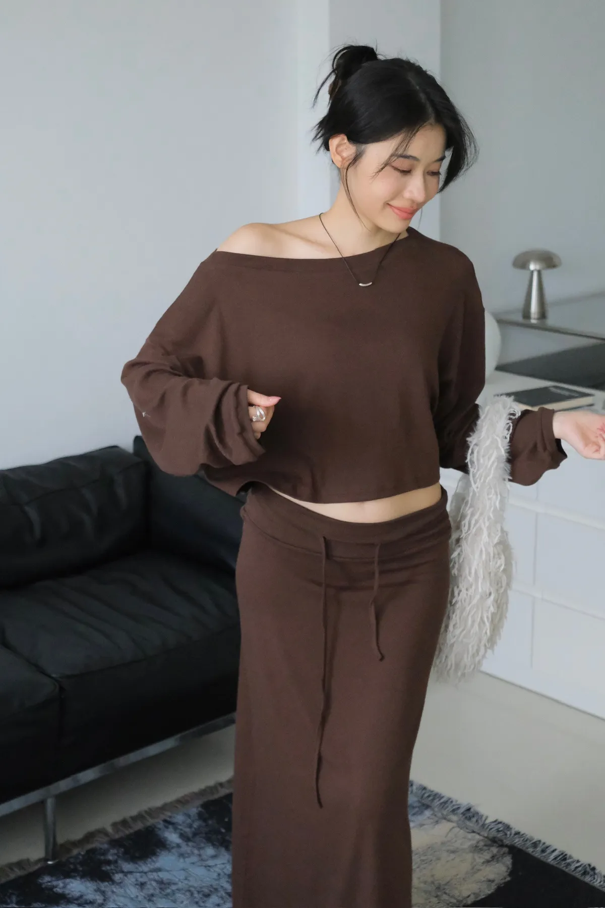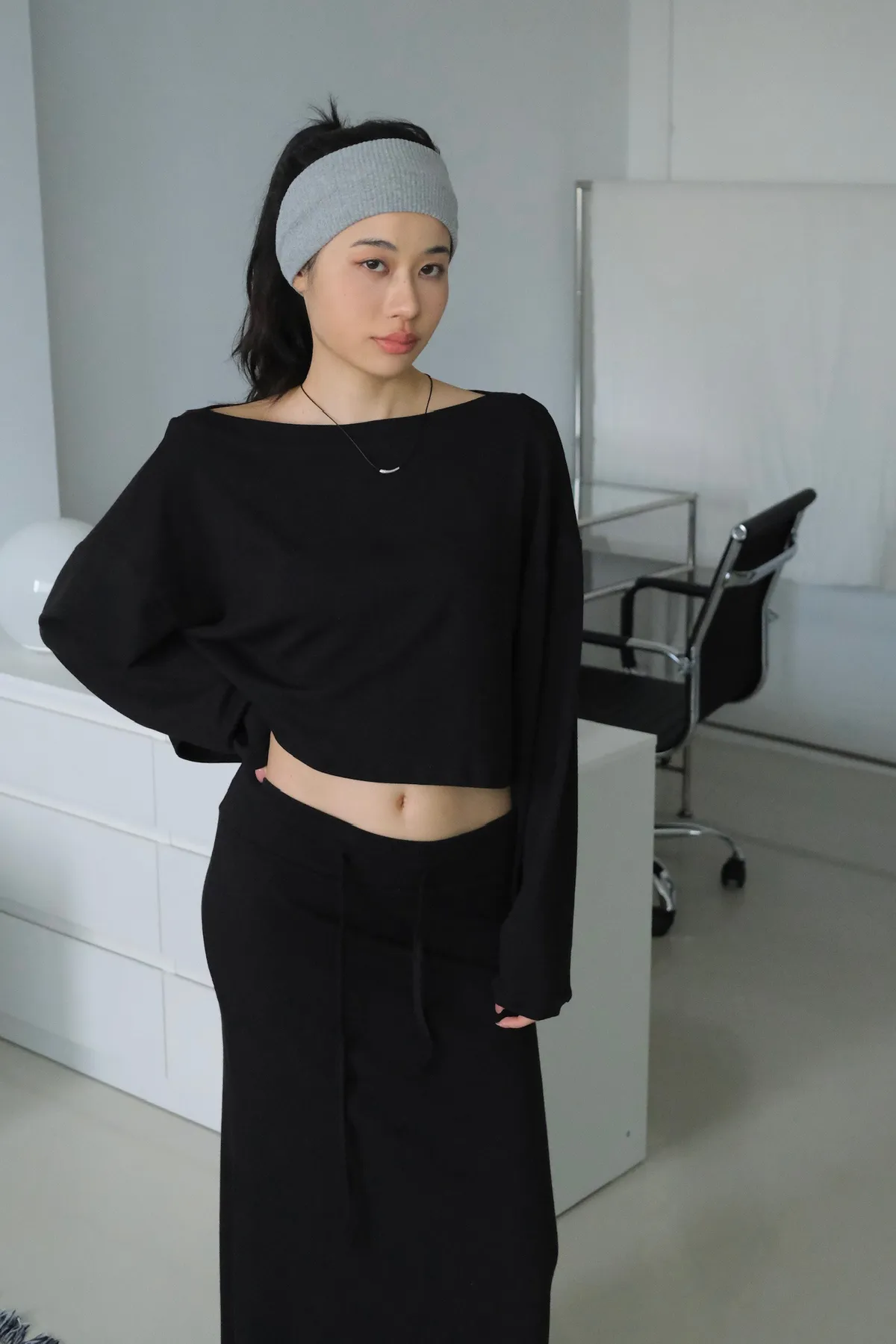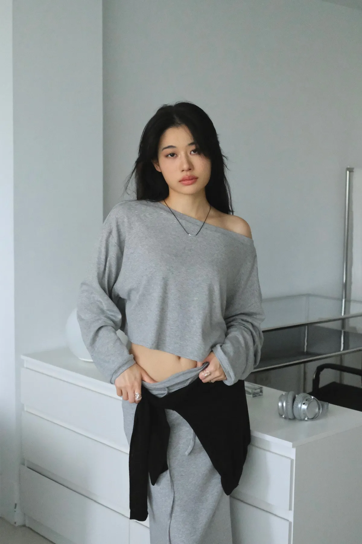 短版落肩+寬袖設計 慵懶隨性