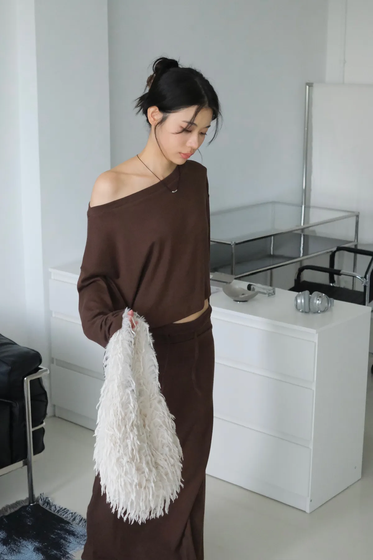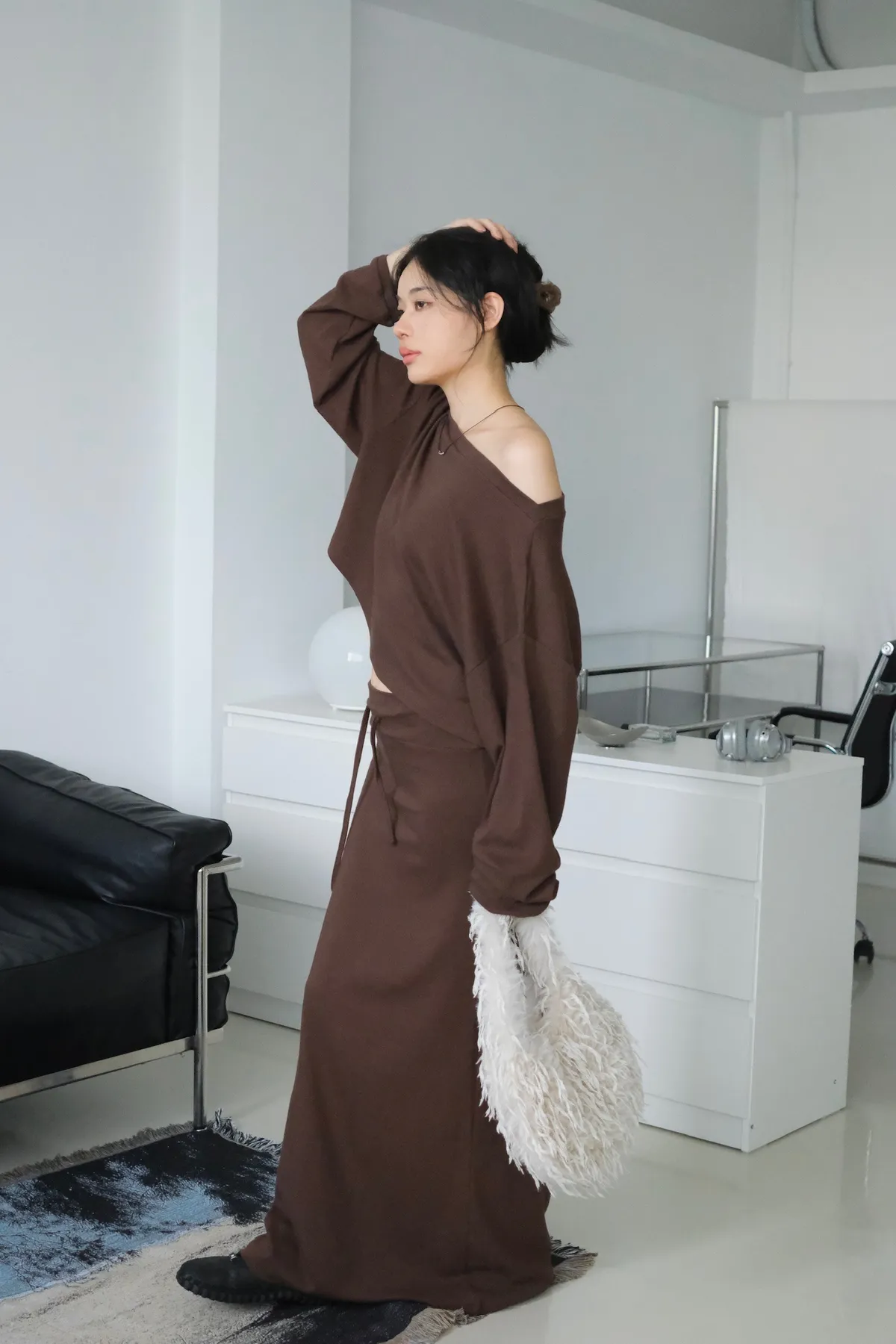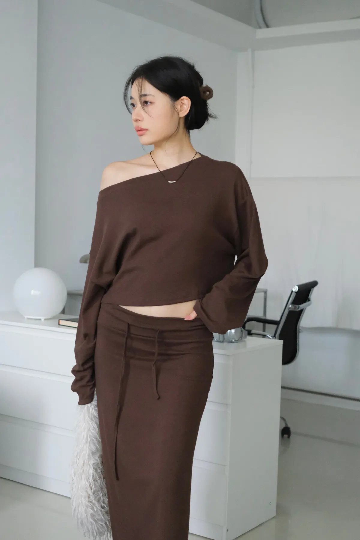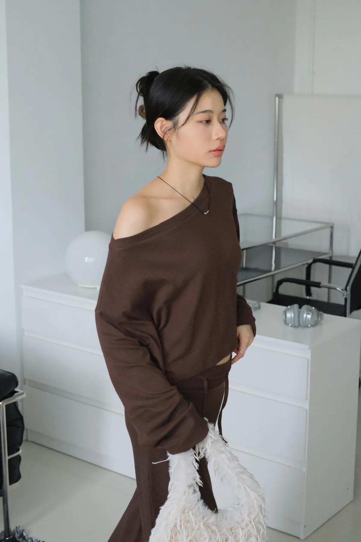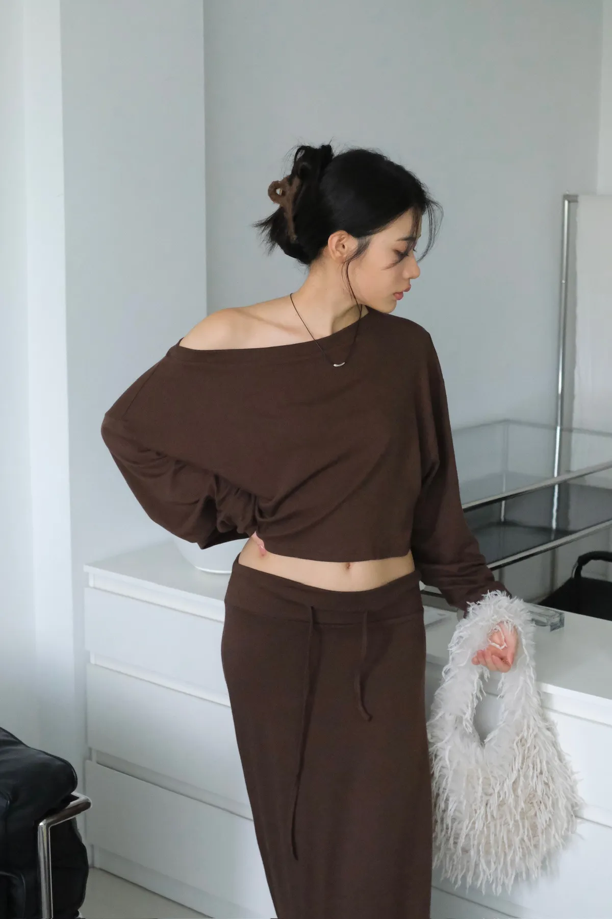 短版落肩+寬袖設計 慵懶隨性