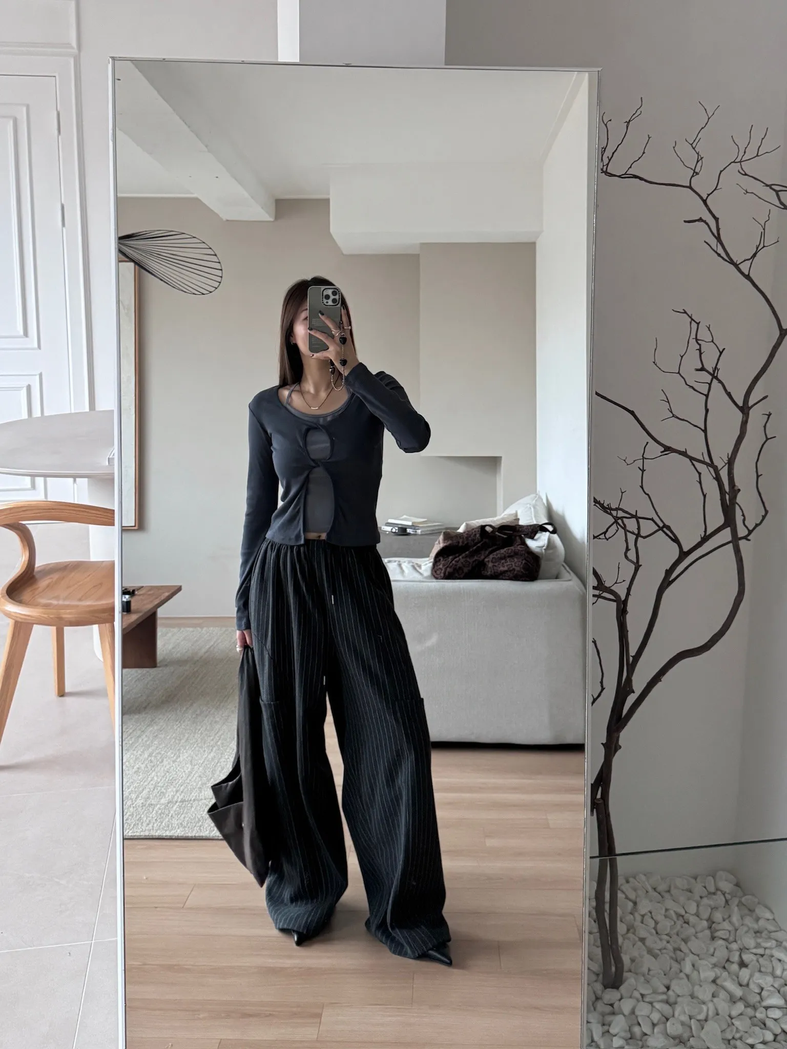 內斂直紋寬鬆休閒褲