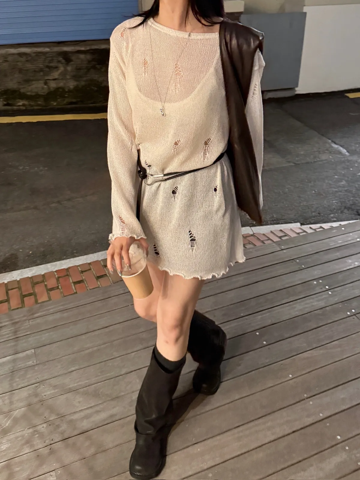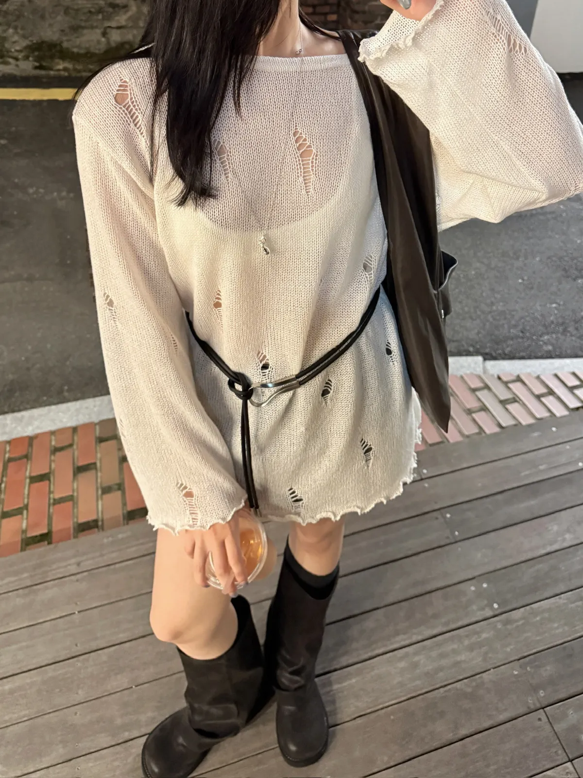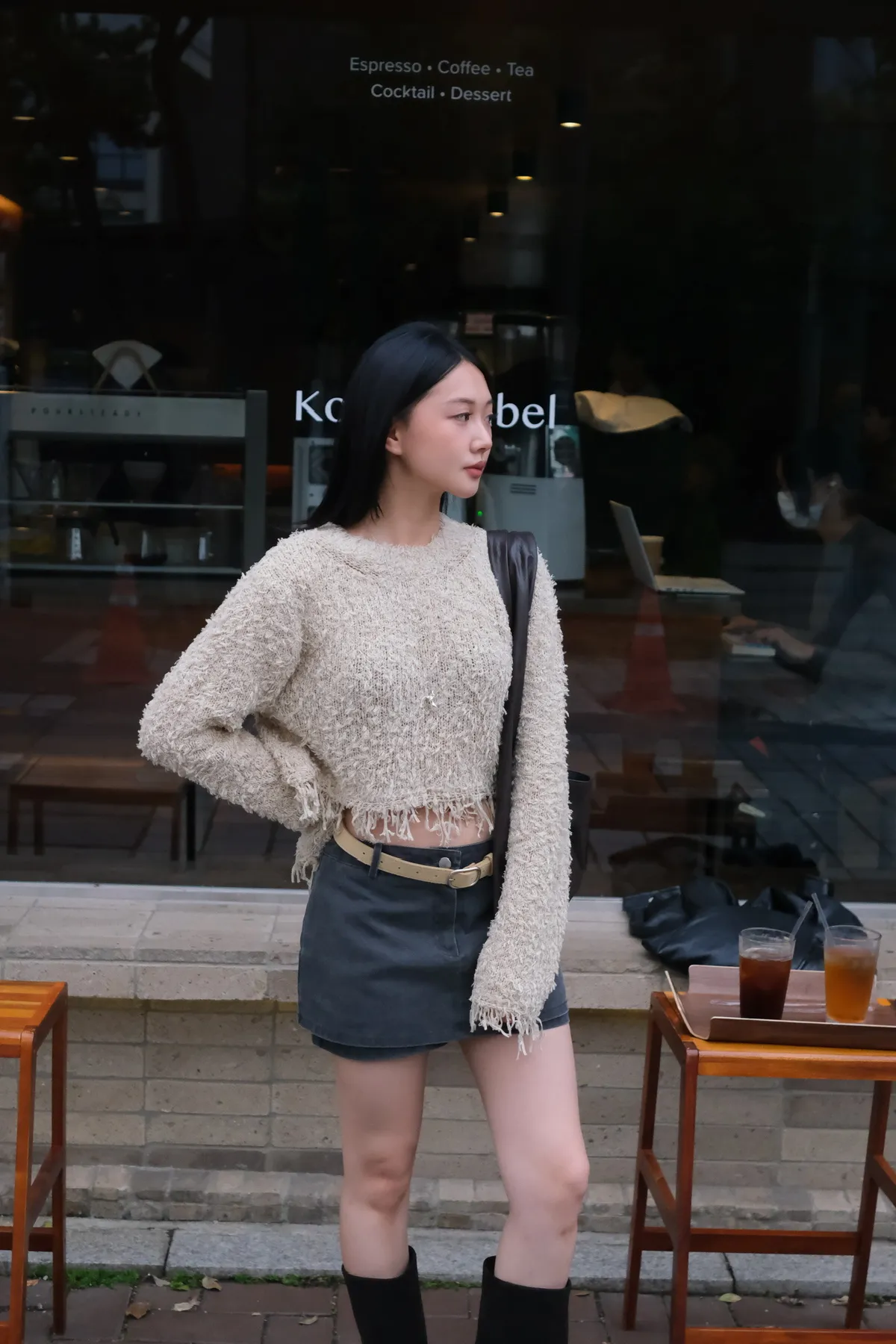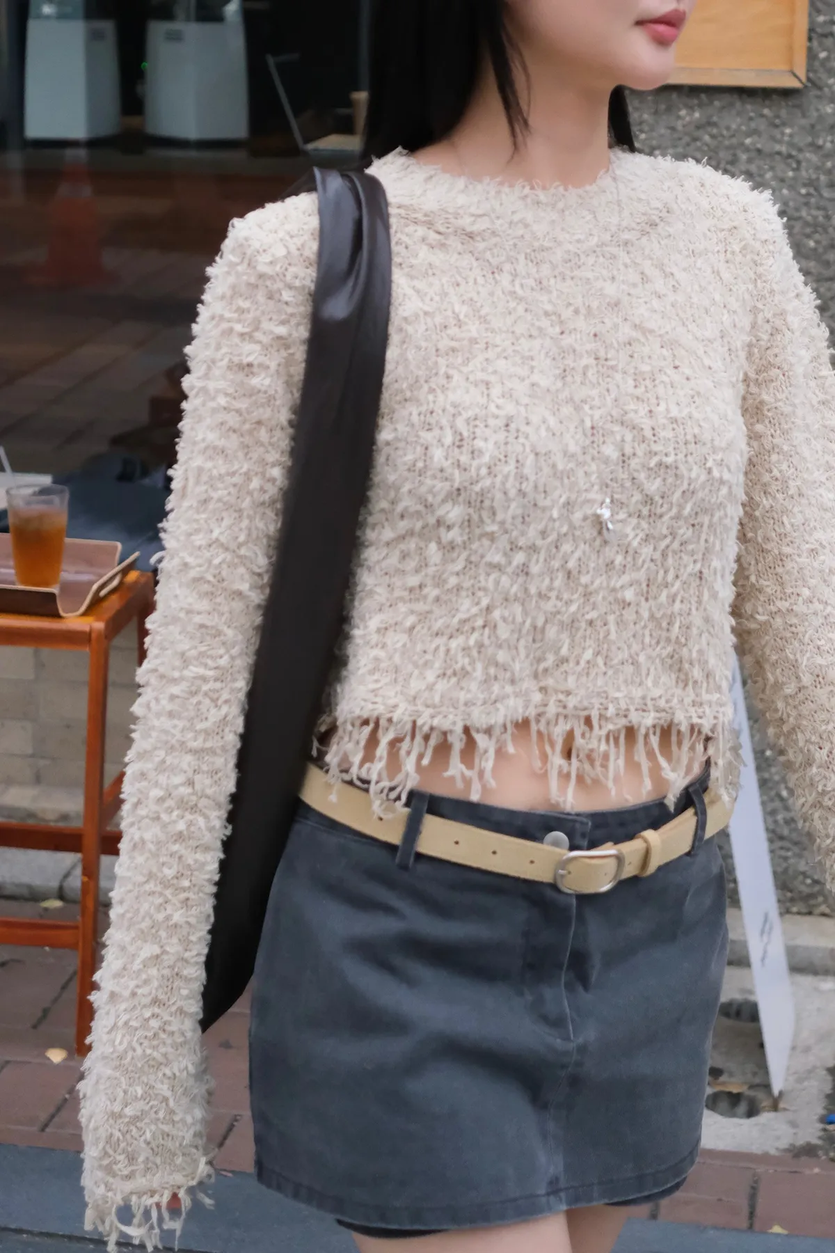 織圈流蘇短版針織毛衣