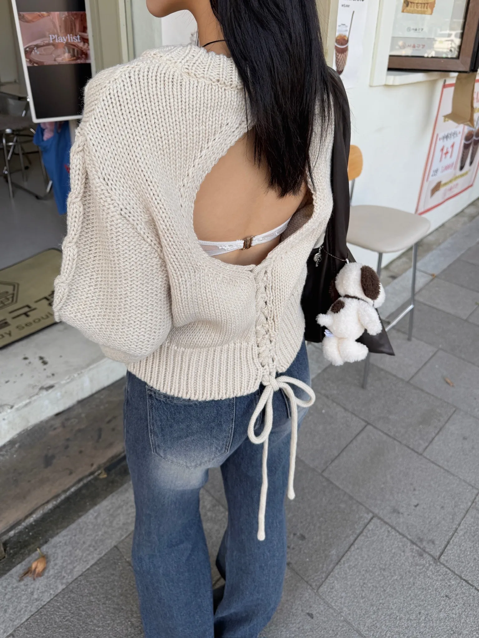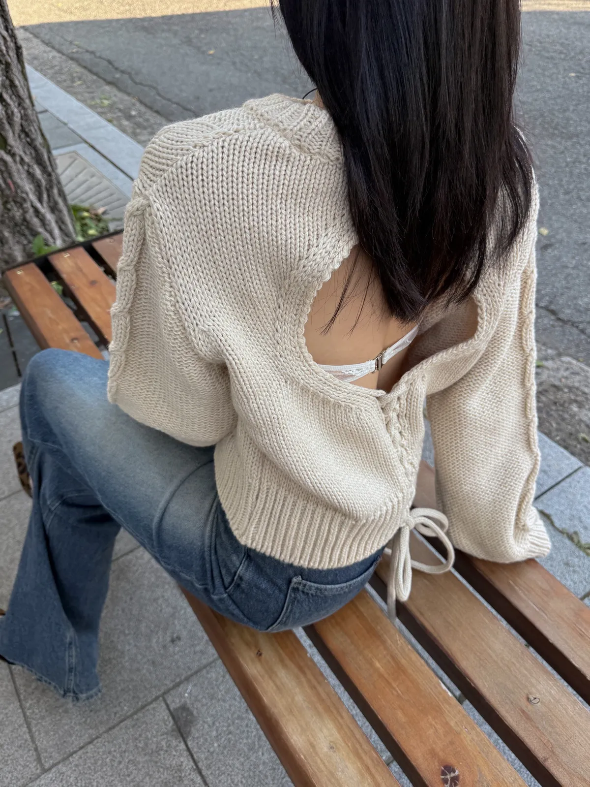 極美露背麻花針織毛衣/兩色