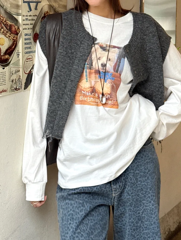 Q!!狗狗喵喵一次滿足長袖TEE/兩款