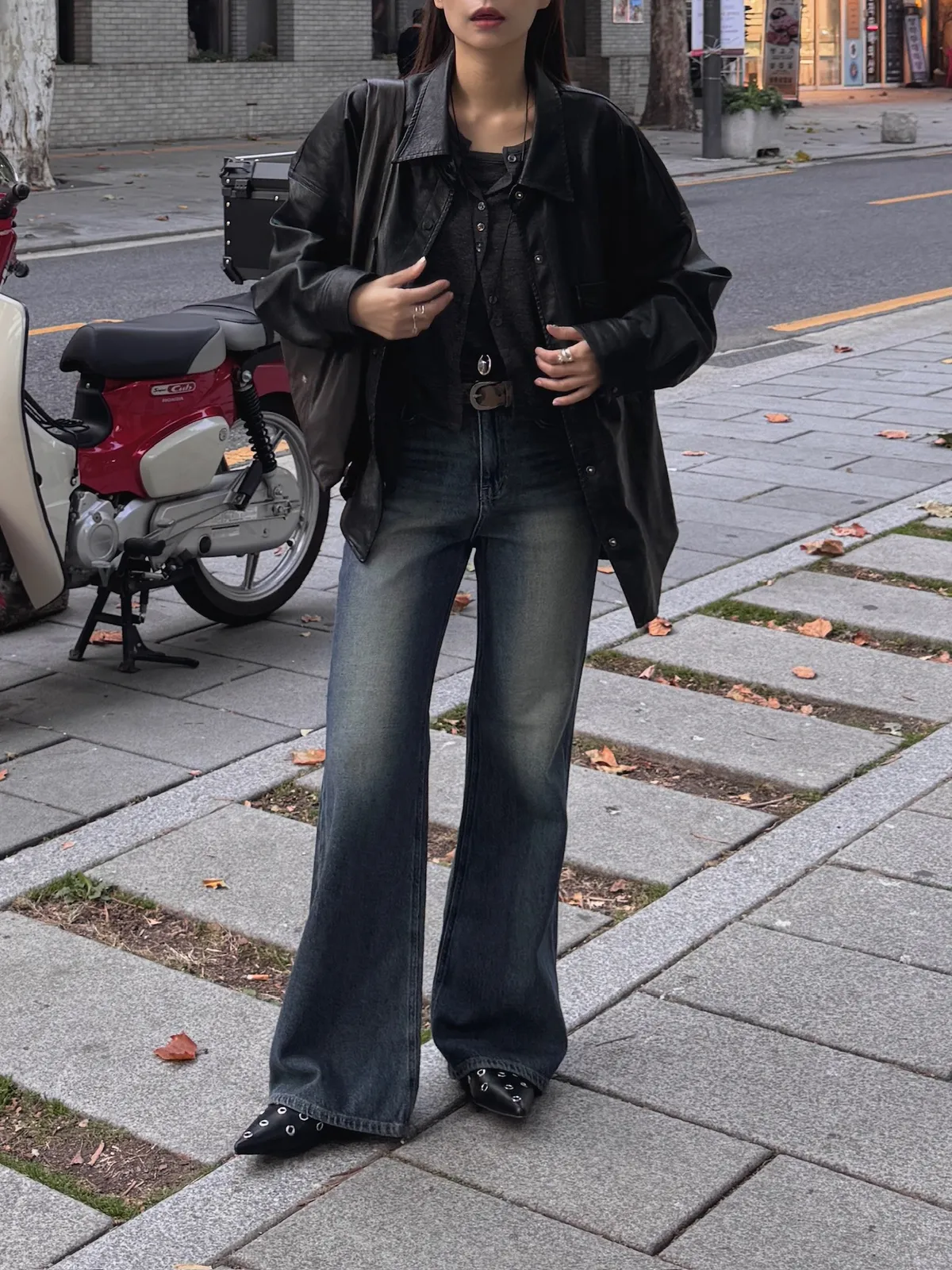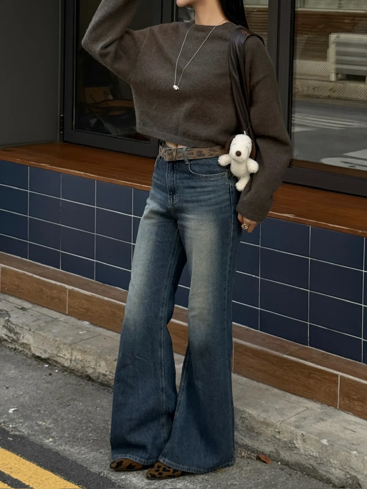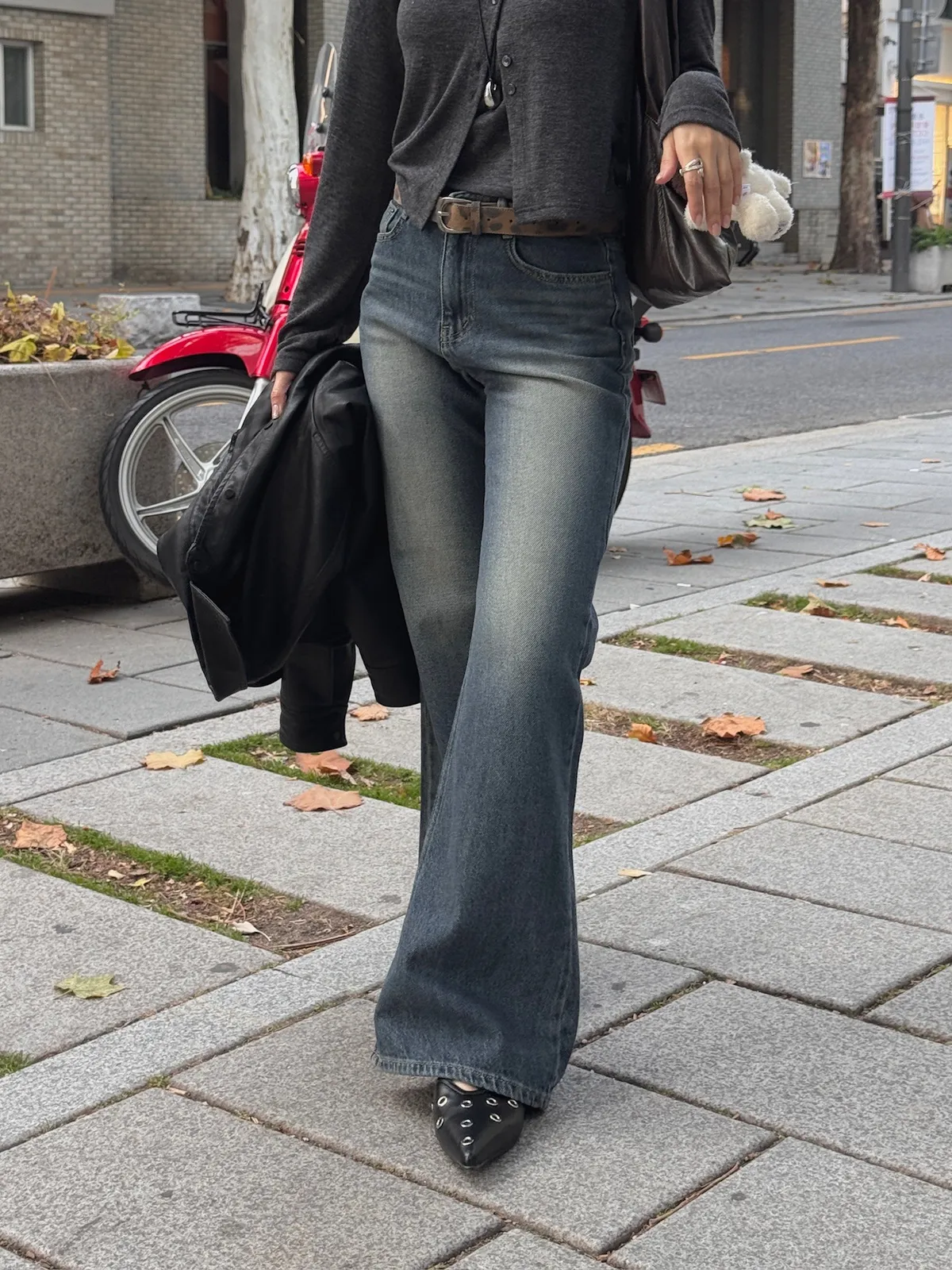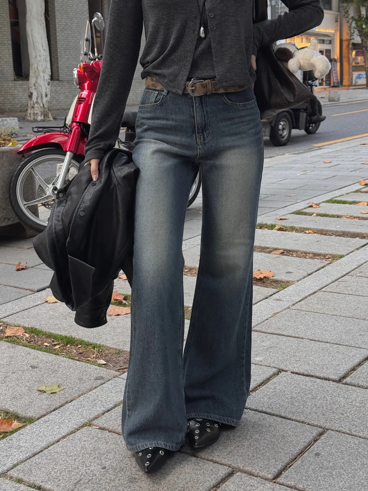 (熱銷破百)-5kg激瘦!!復古藍微喇叭牛仔褲