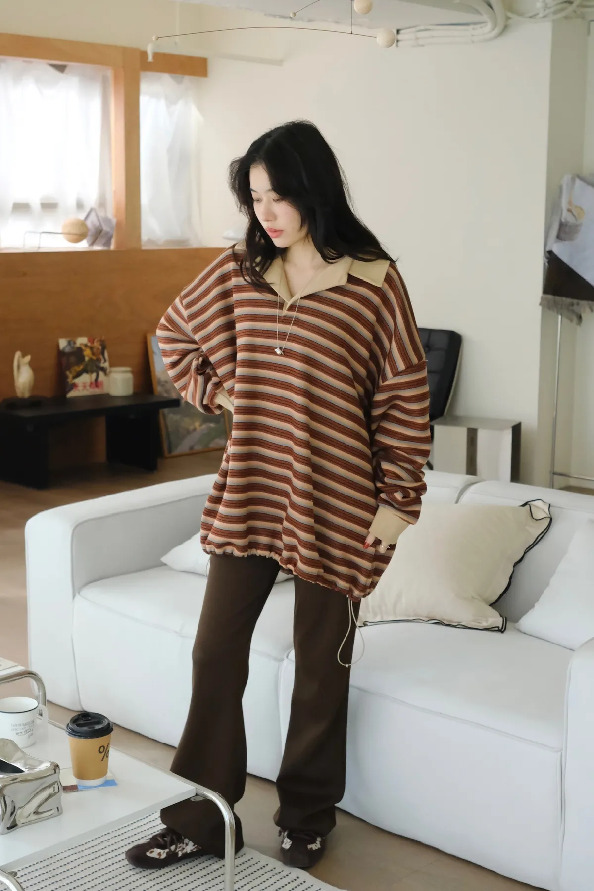 可以搭配遮住臀及大腿根部的 寬鬆/長版的上身