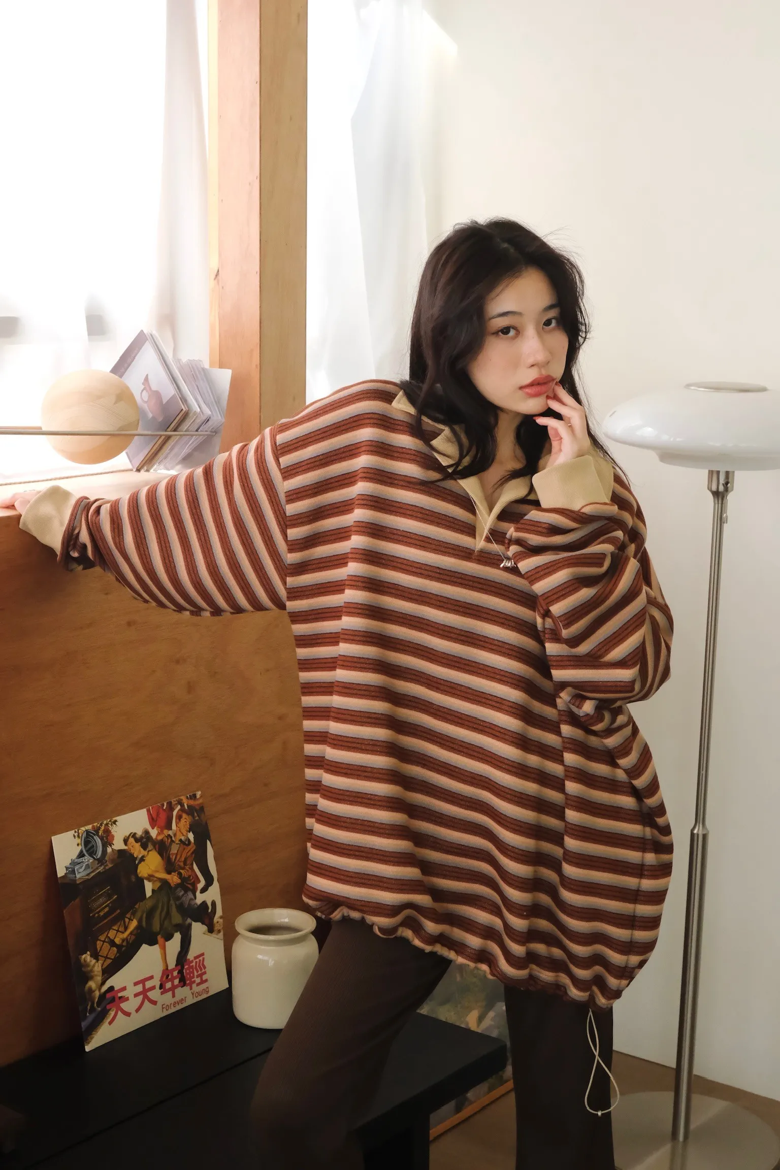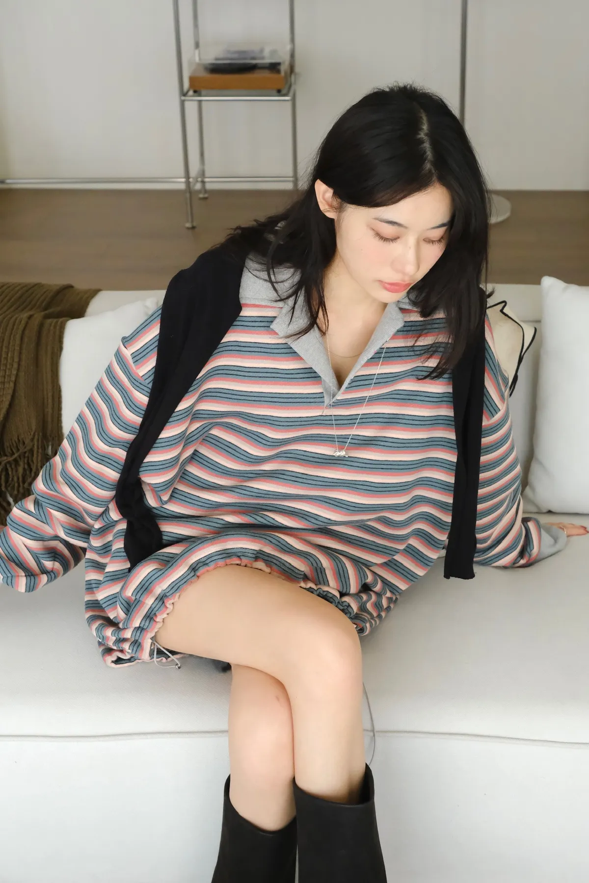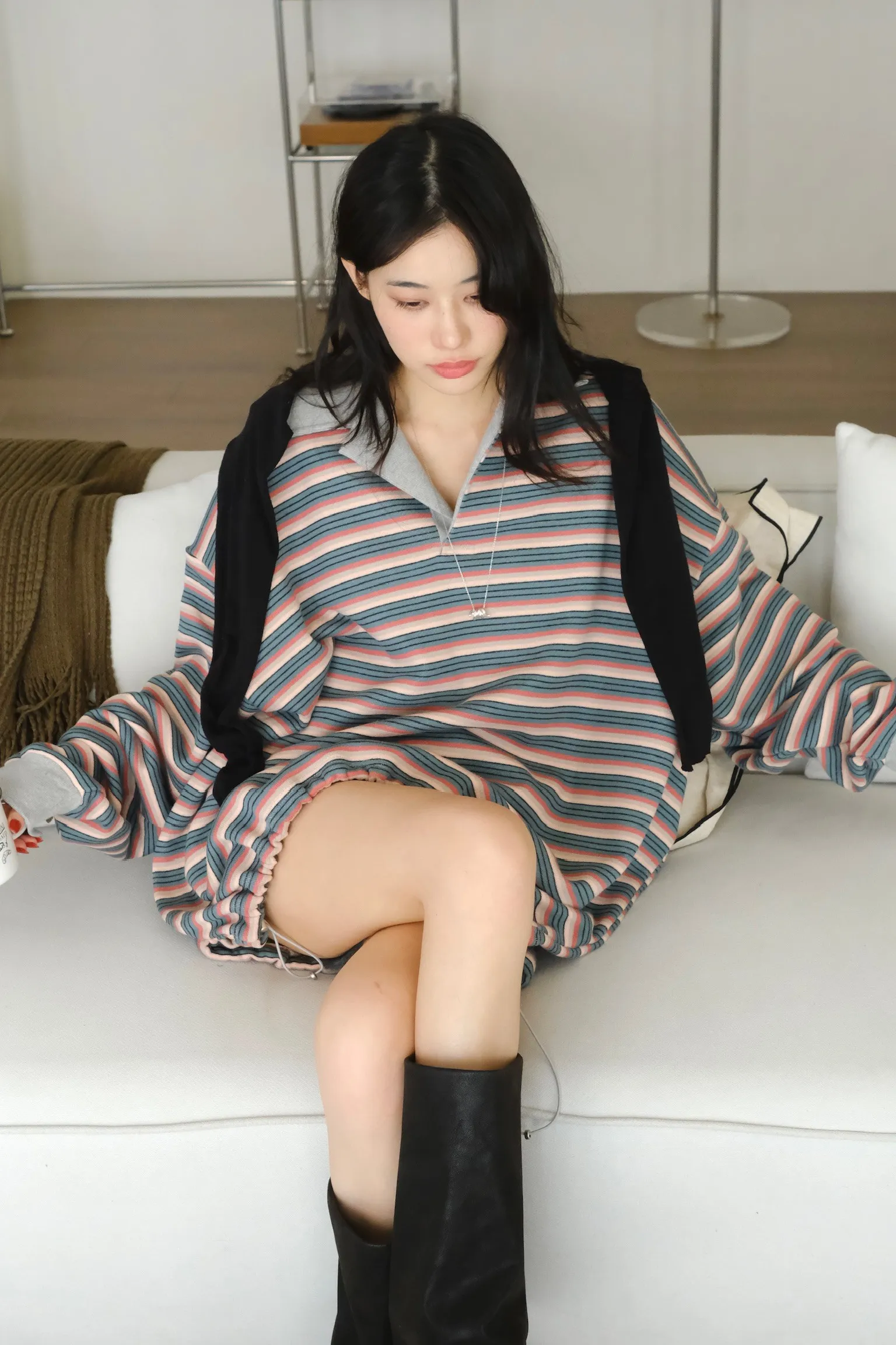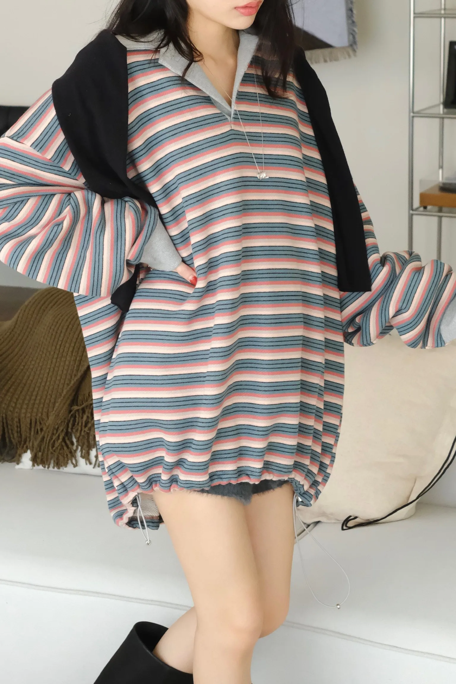 寬鬆落肩的版型 長度會完全蓋到臀