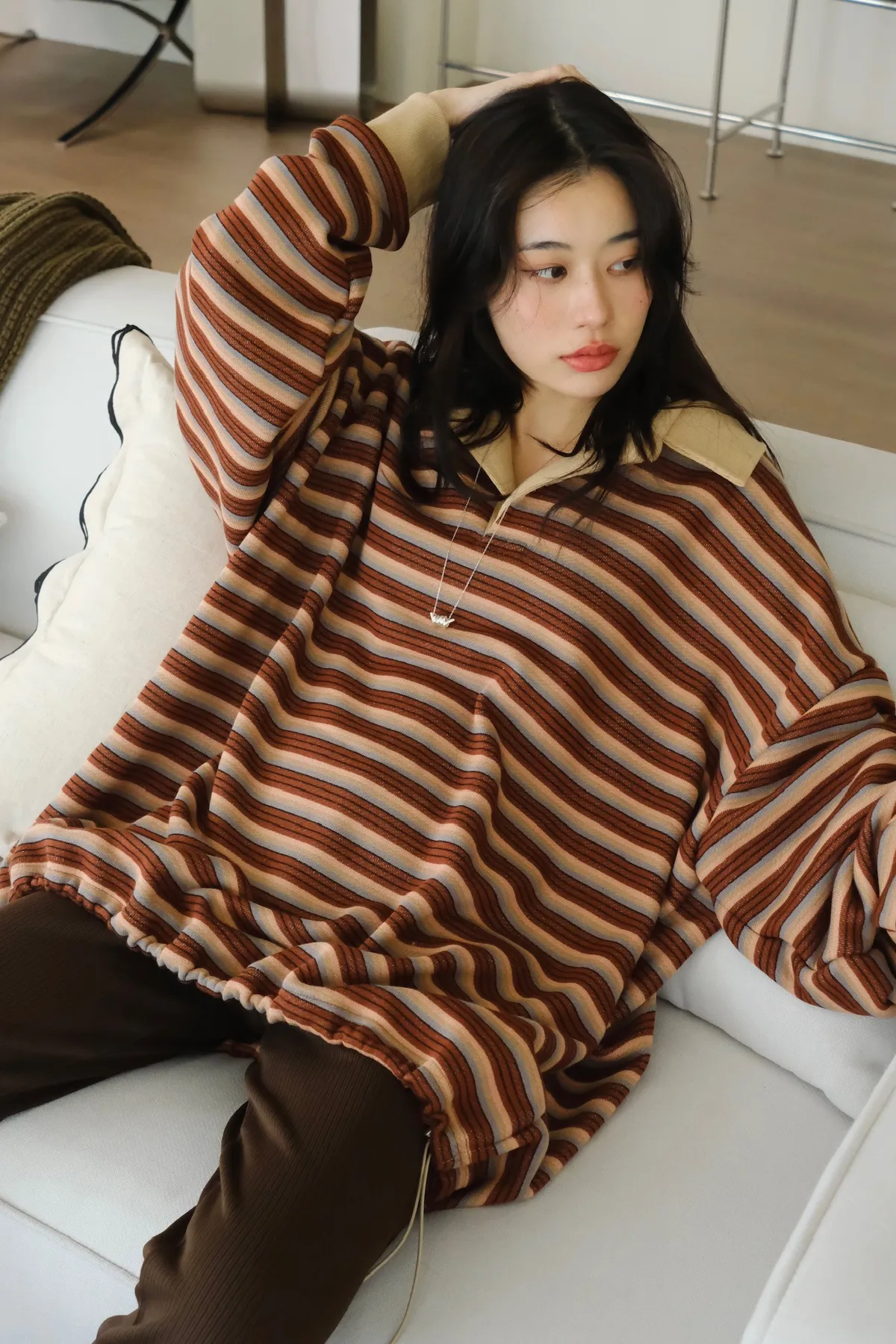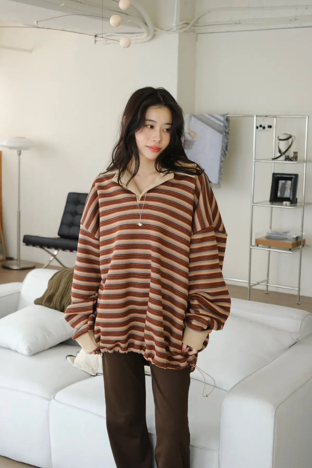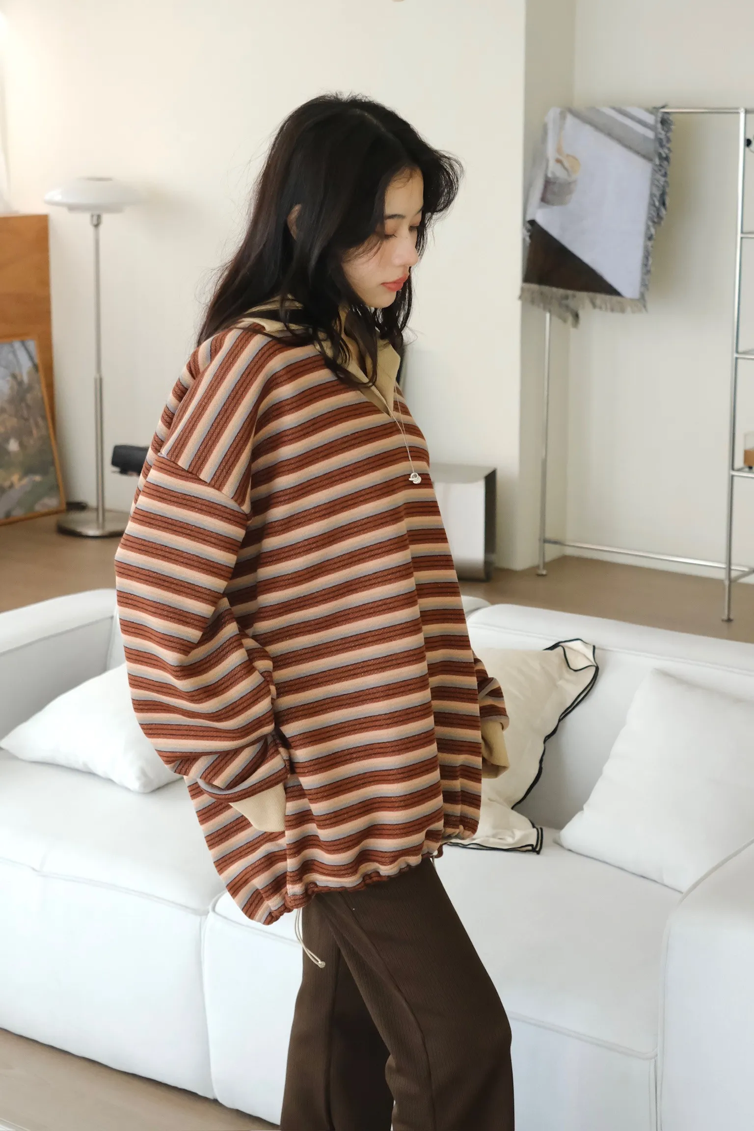 寬鬆落肩的版型 長度會完全蓋到臀