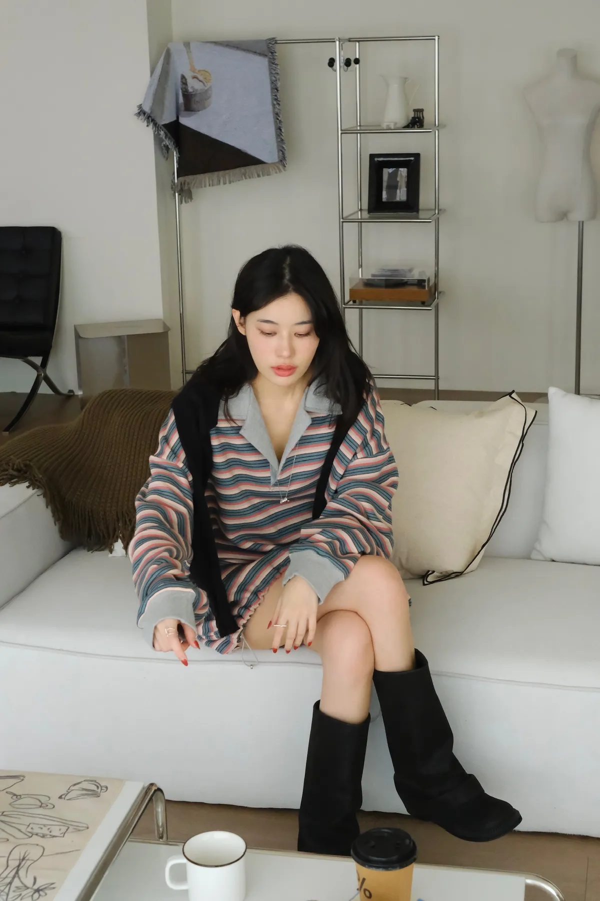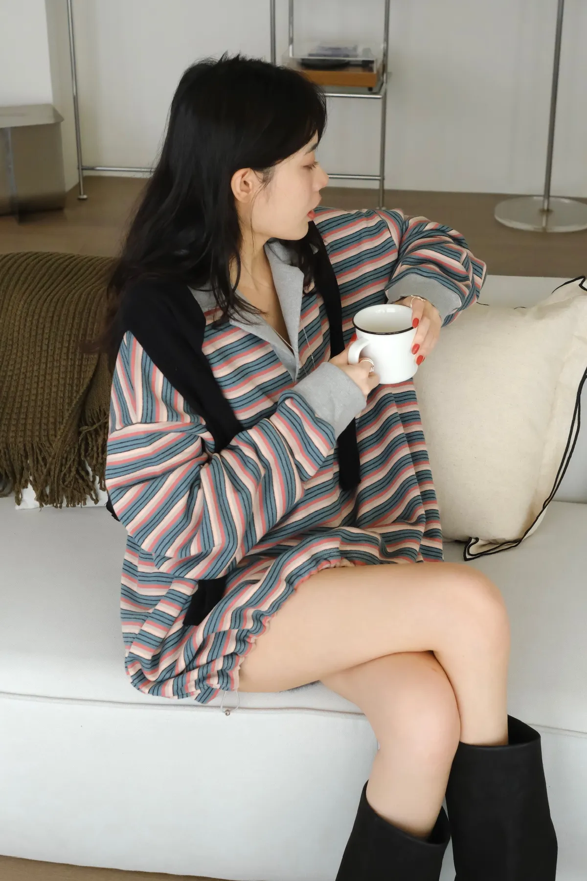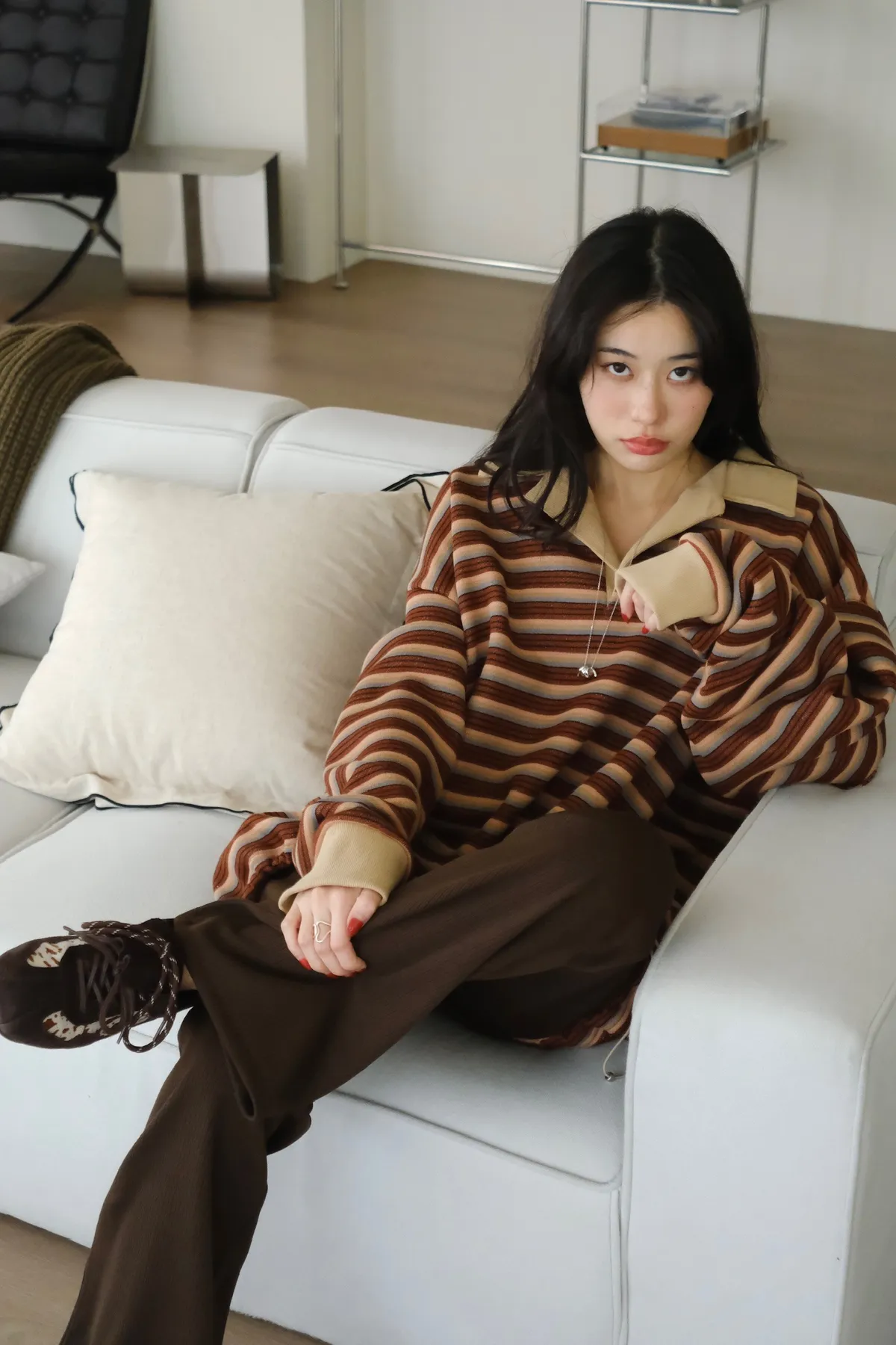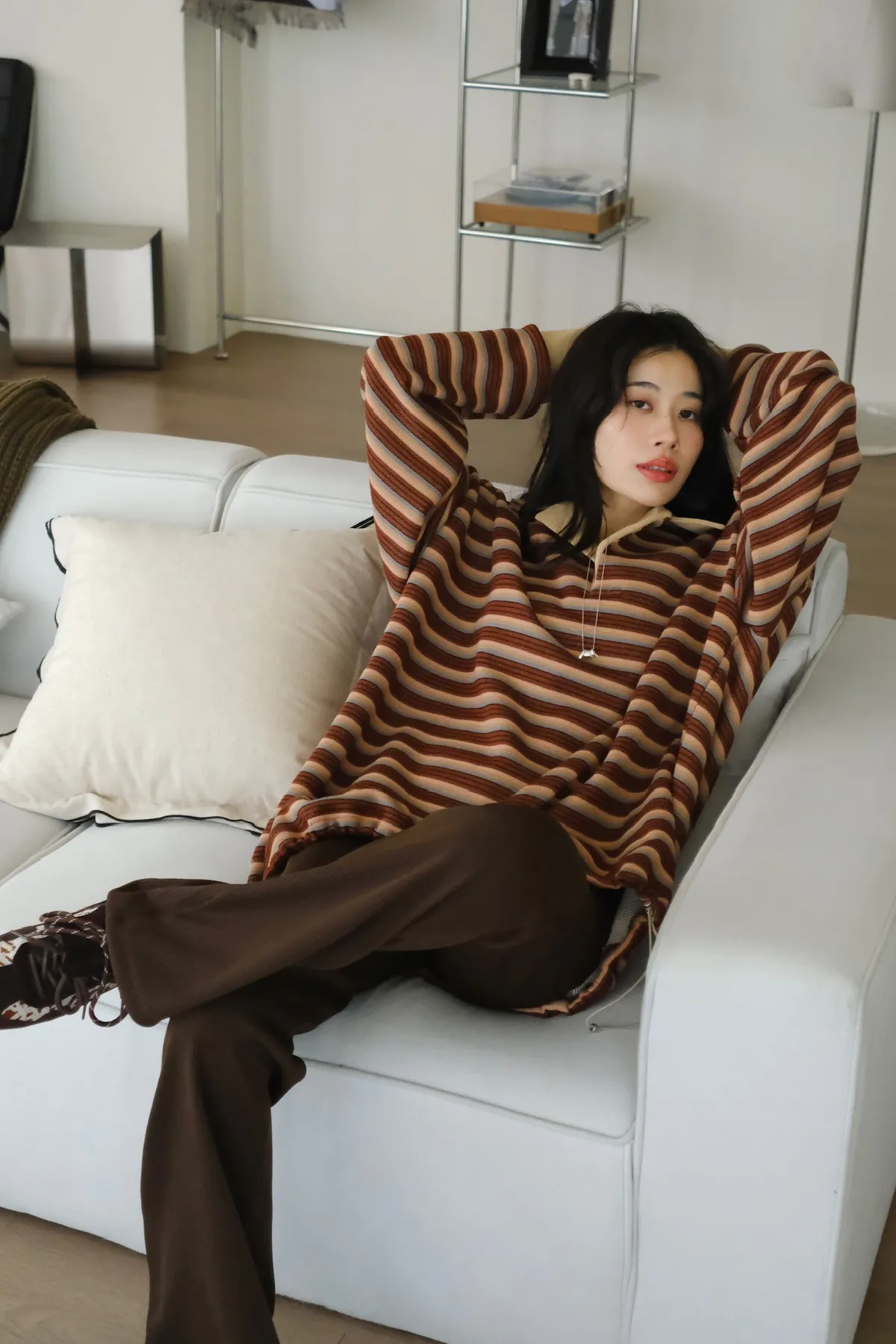 寬鬆落肩的版型 長度會完全蓋到臀