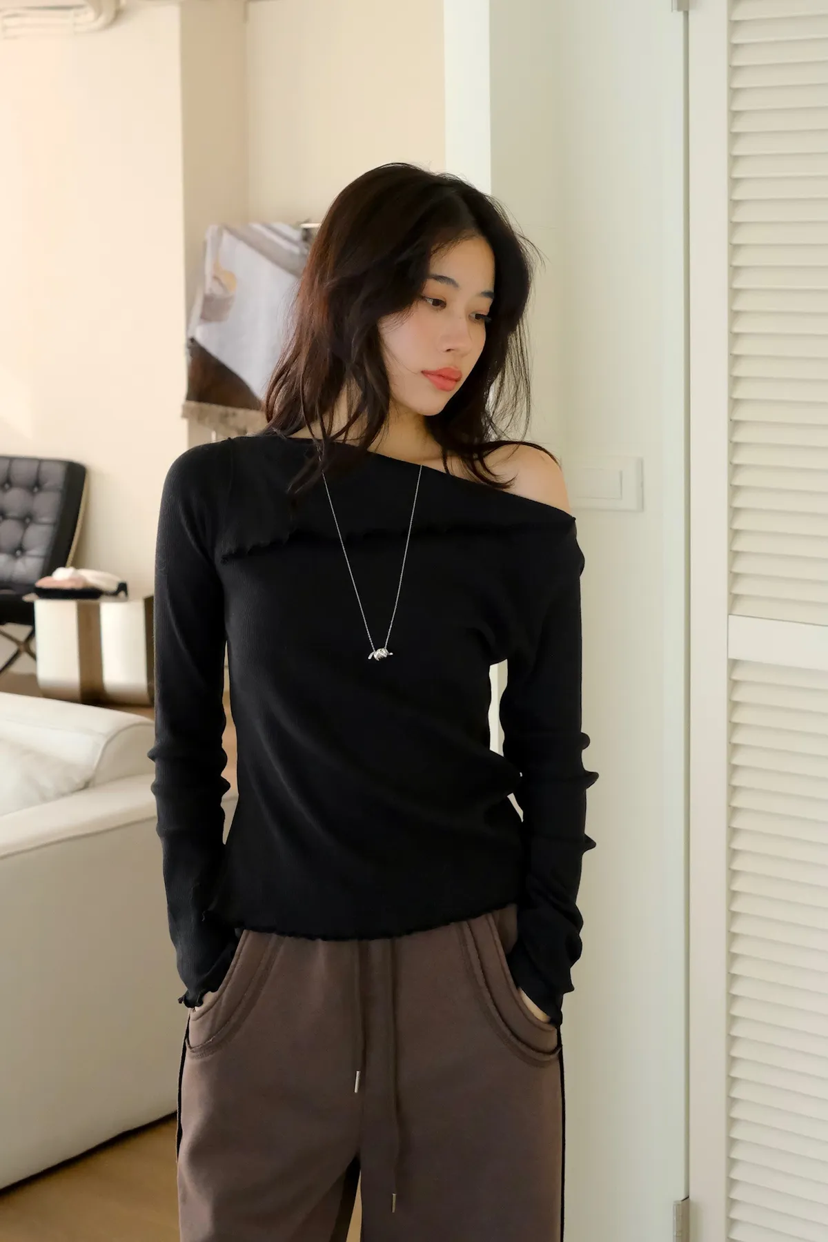 翻領設計要斜領或直接變微辣的一字領都 OK