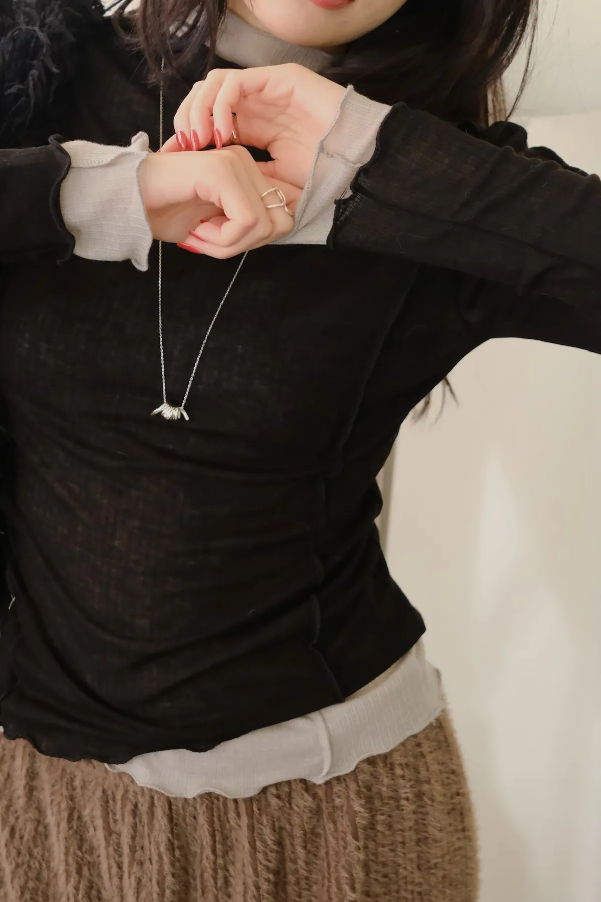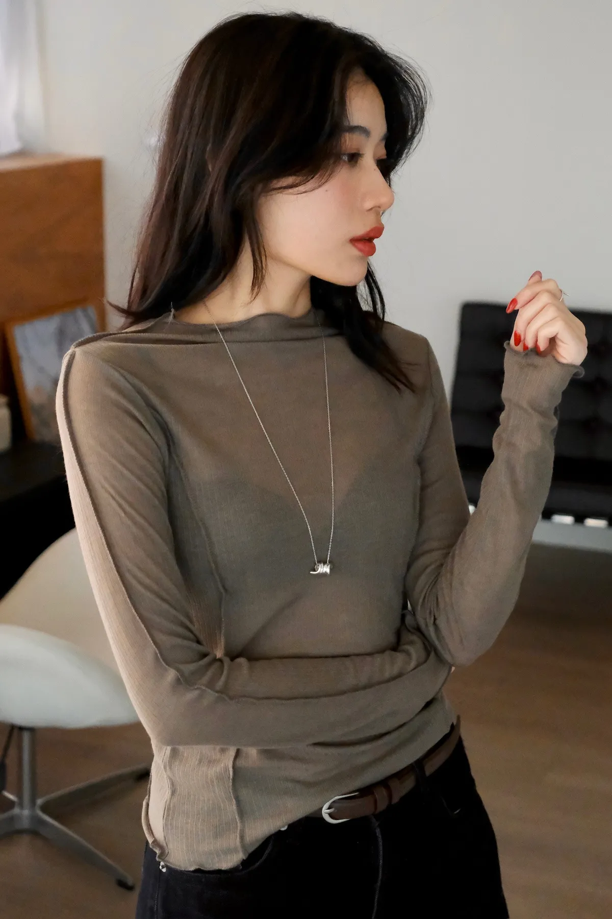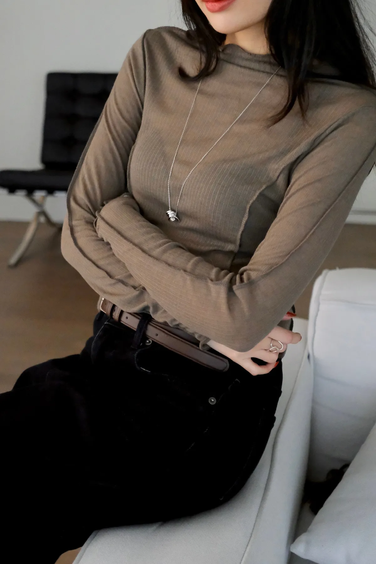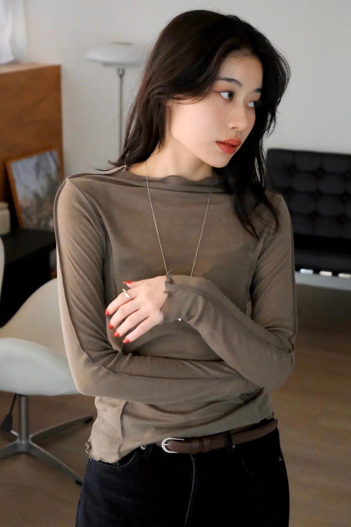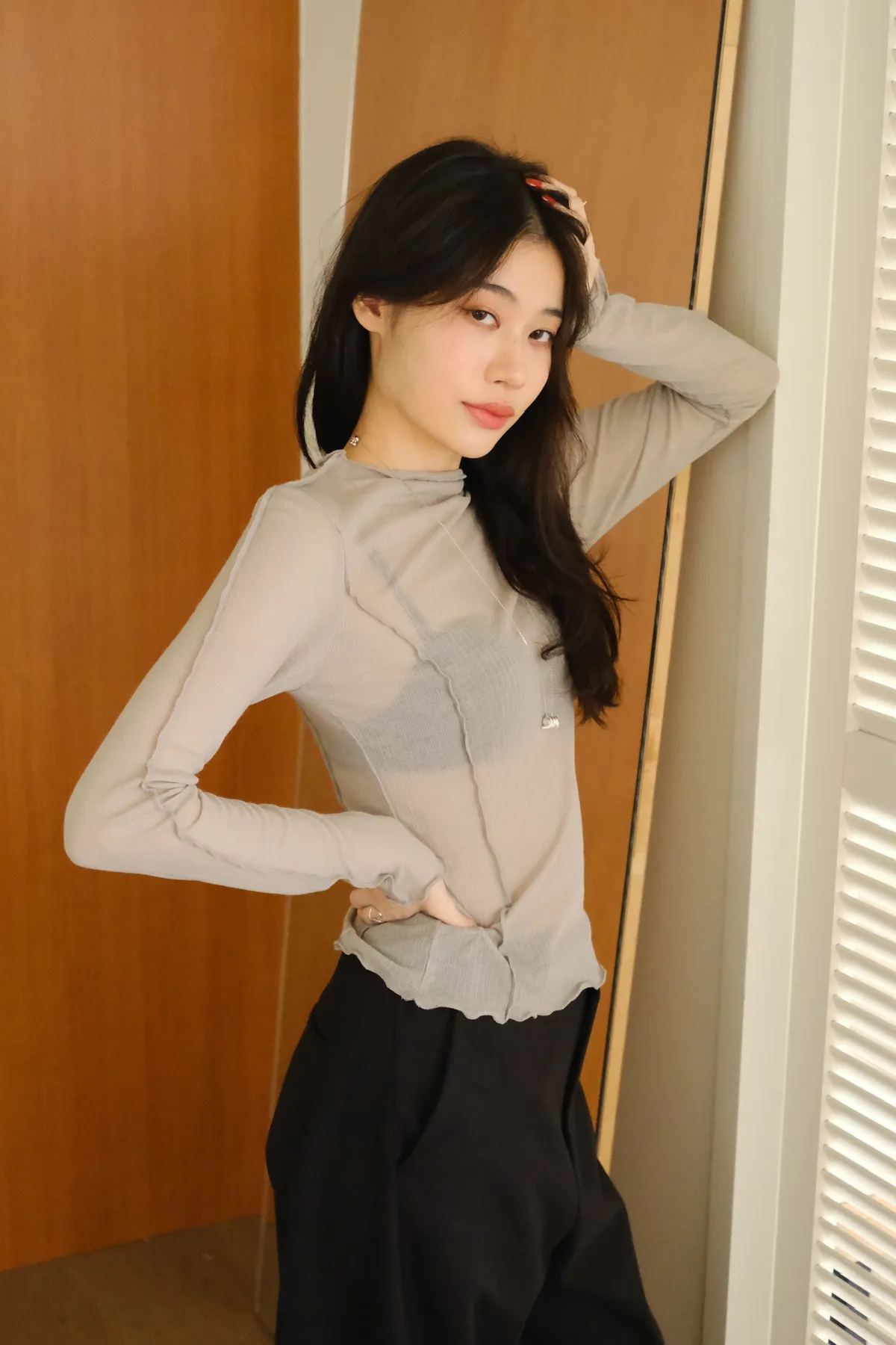 領口做微立領會更修飾拉長脖子線條