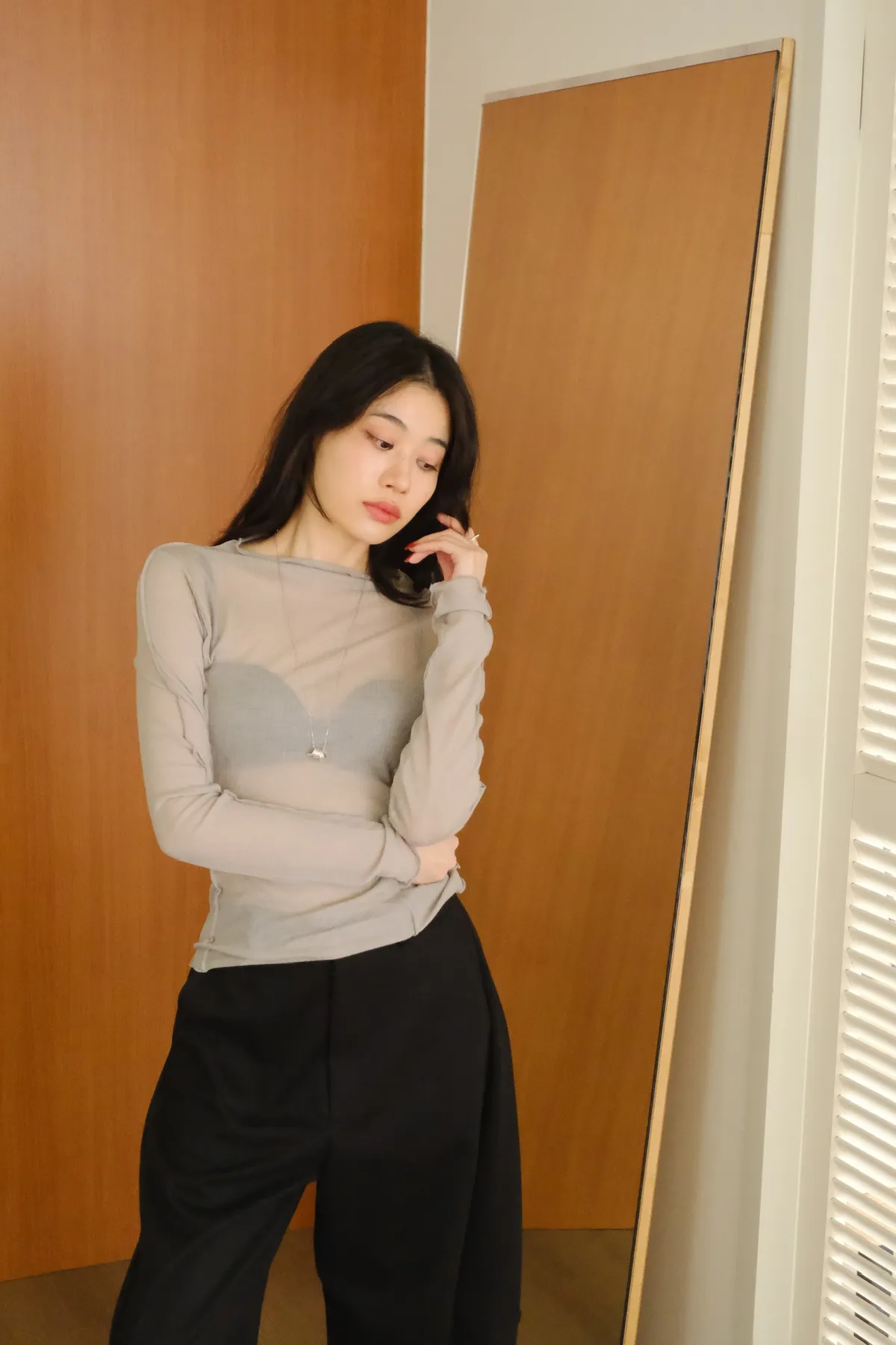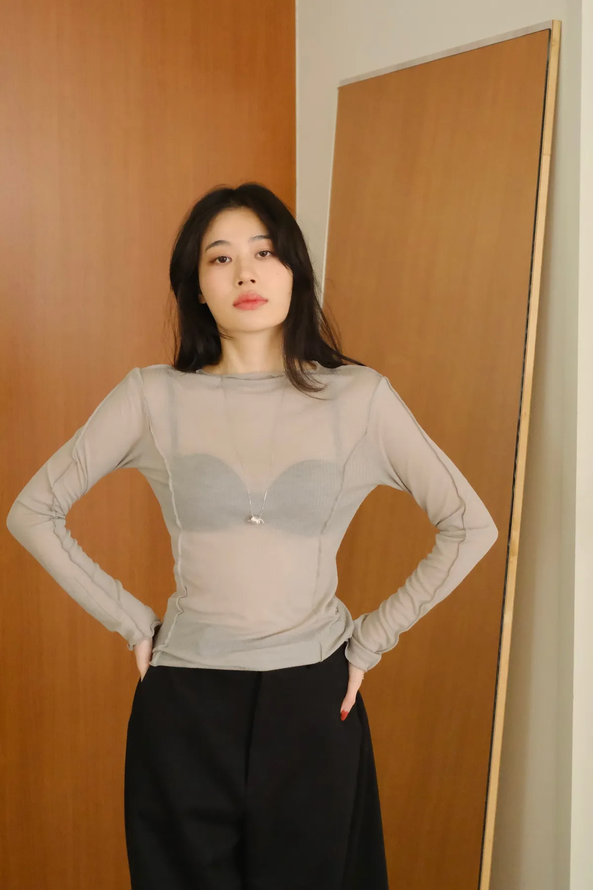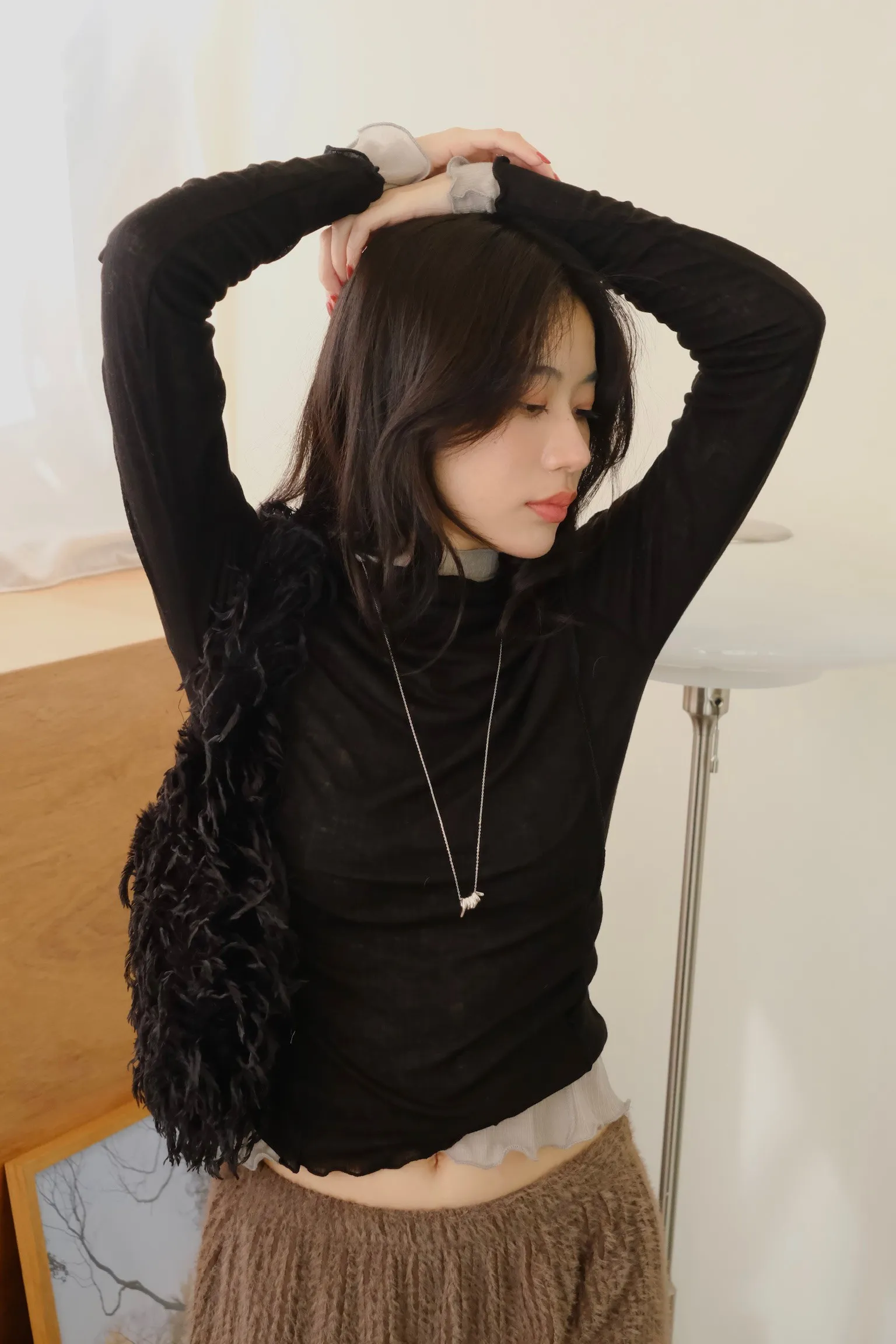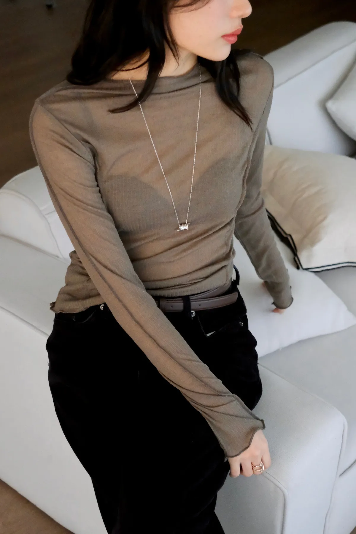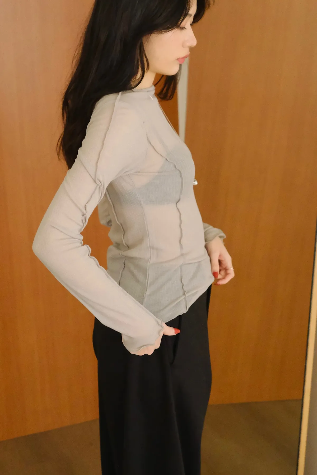 領口做微立領會更修飾拉長脖子線條