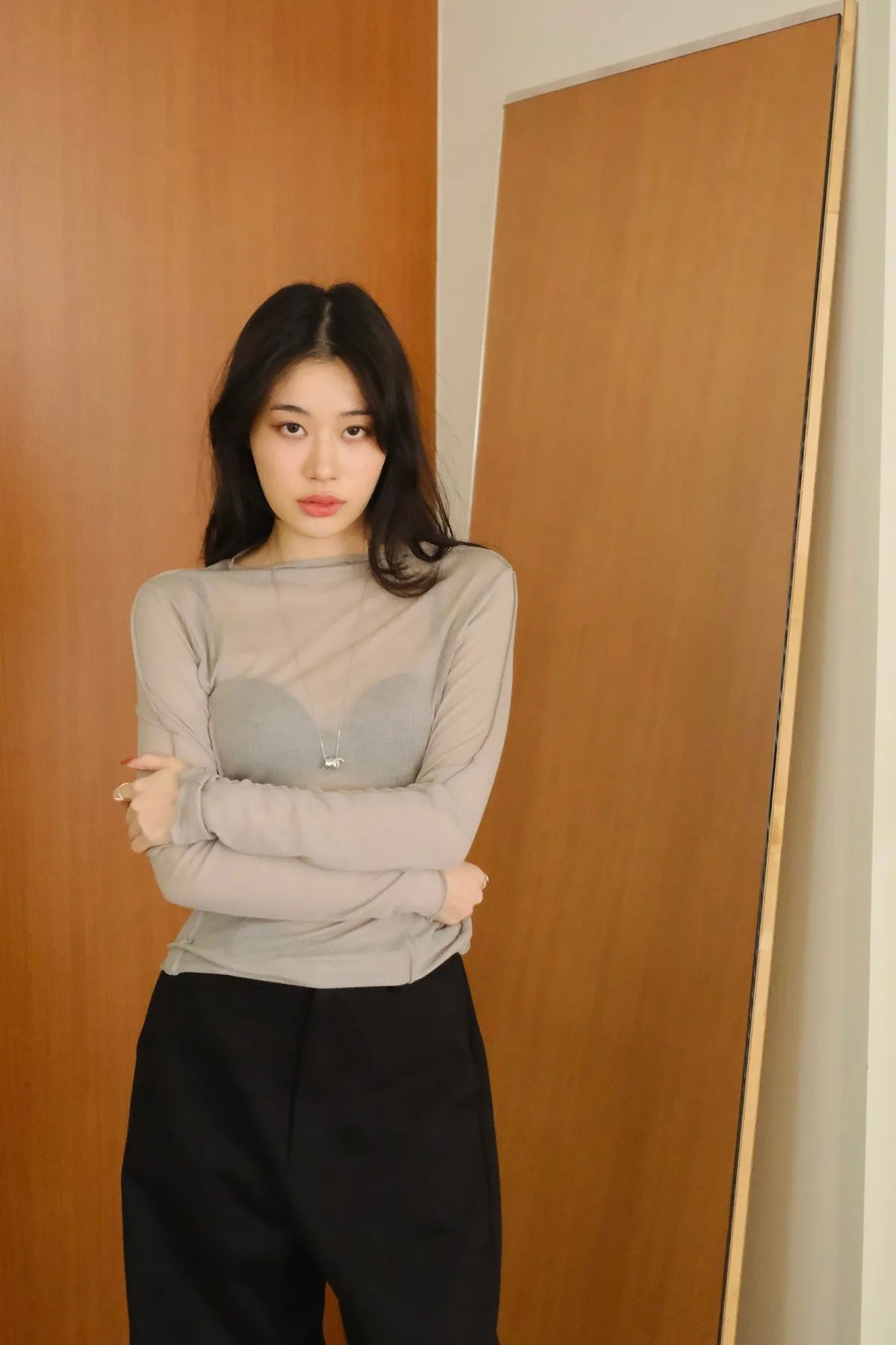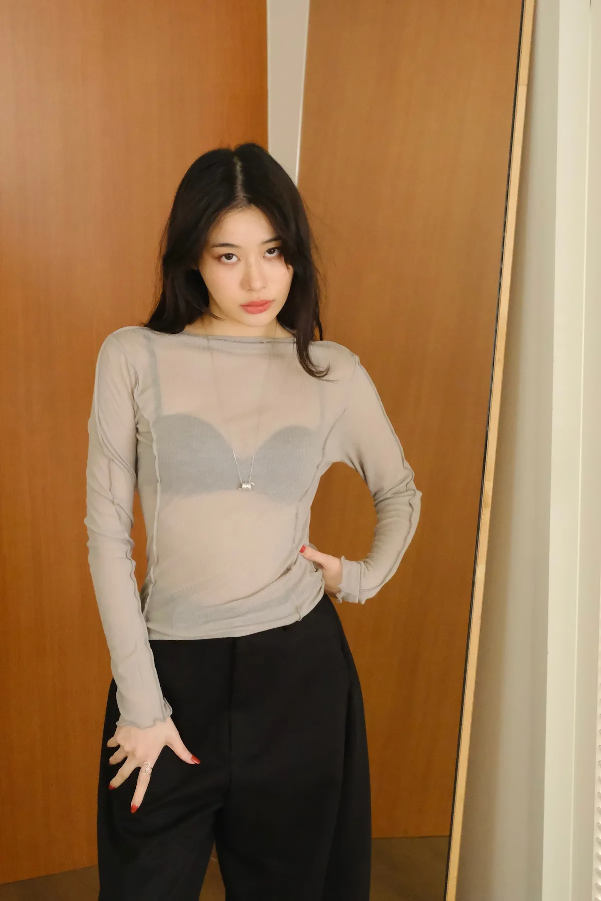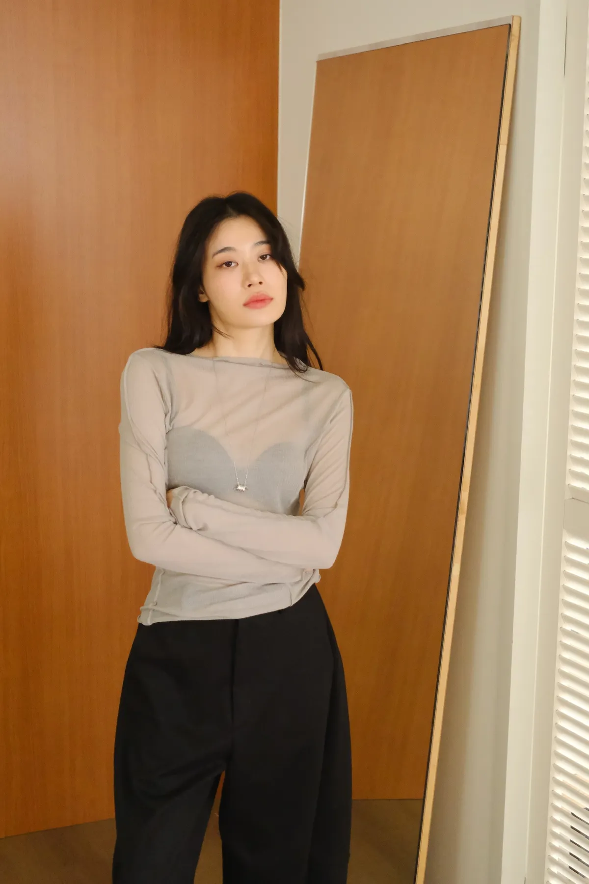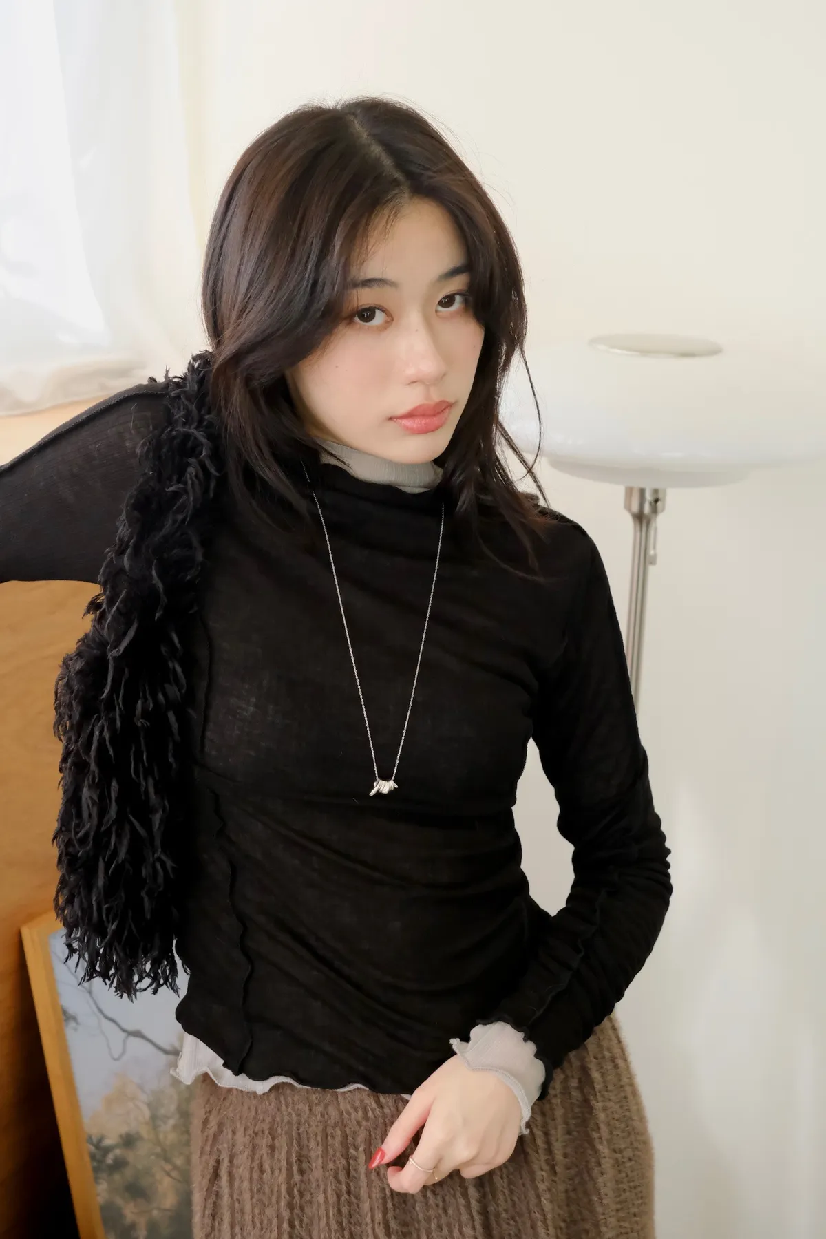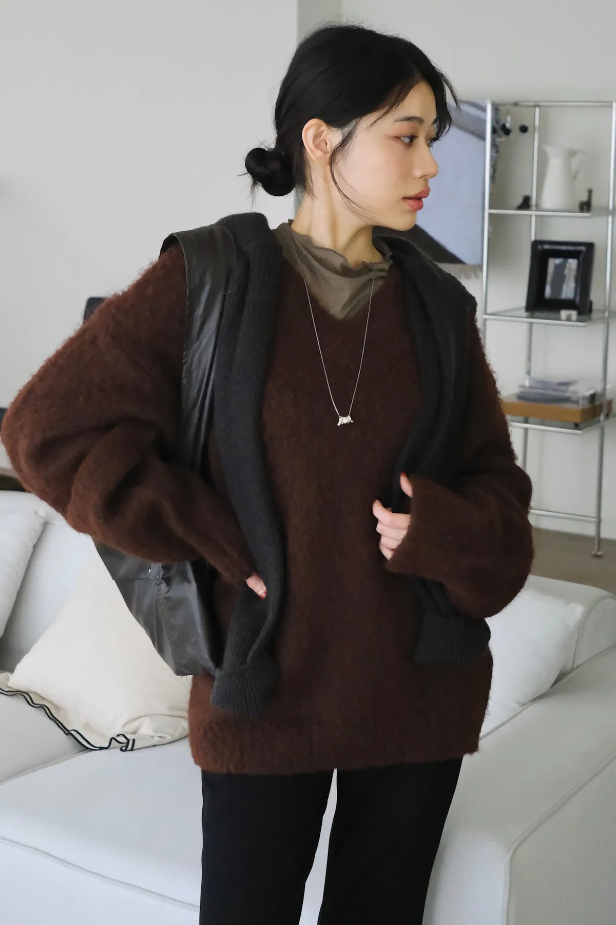 領口做微立領會更修飾拉長脖子線條