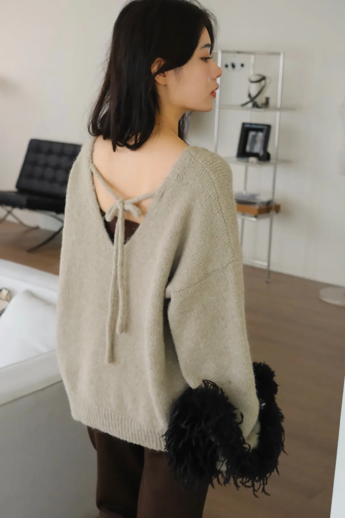 美到不行的深V+綁帶設計