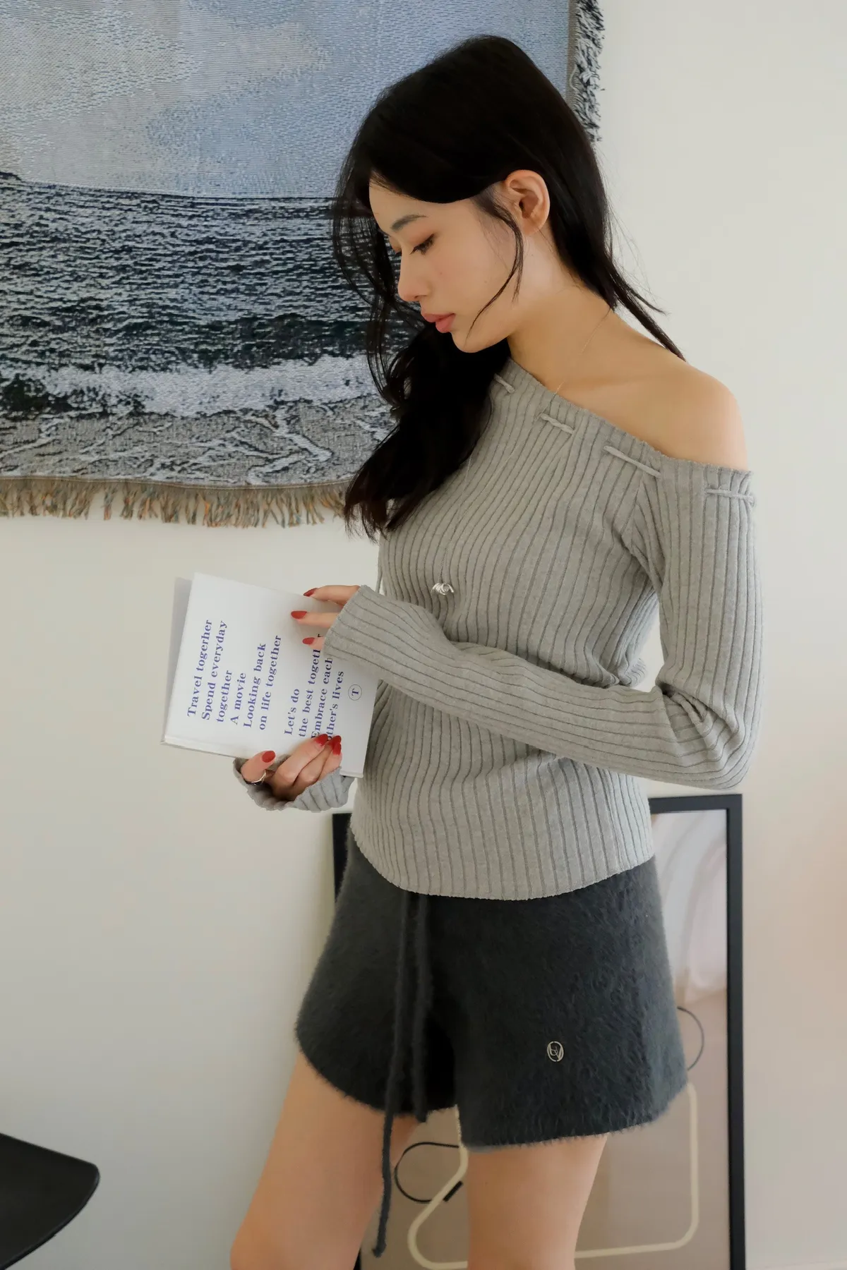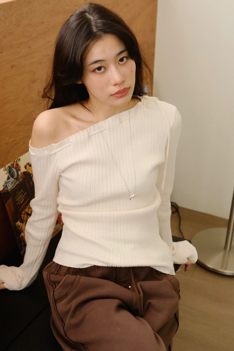 年末派對日綁帶斜肩上衣/三色