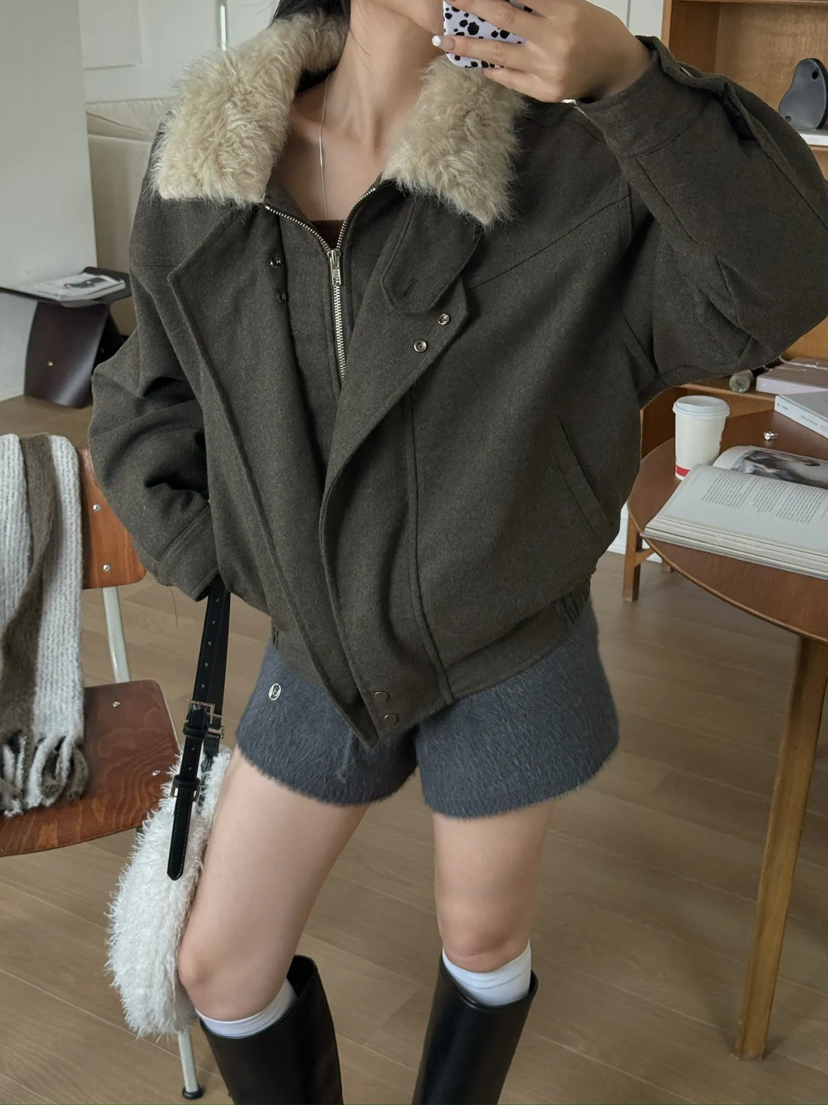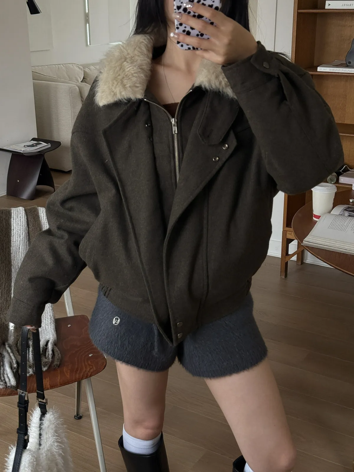 帥!!時髦毛領羊毛夾克/兩色
