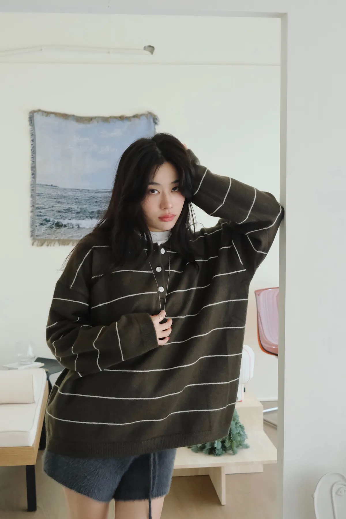 隨性細橫紋針織POLO衫/兩色