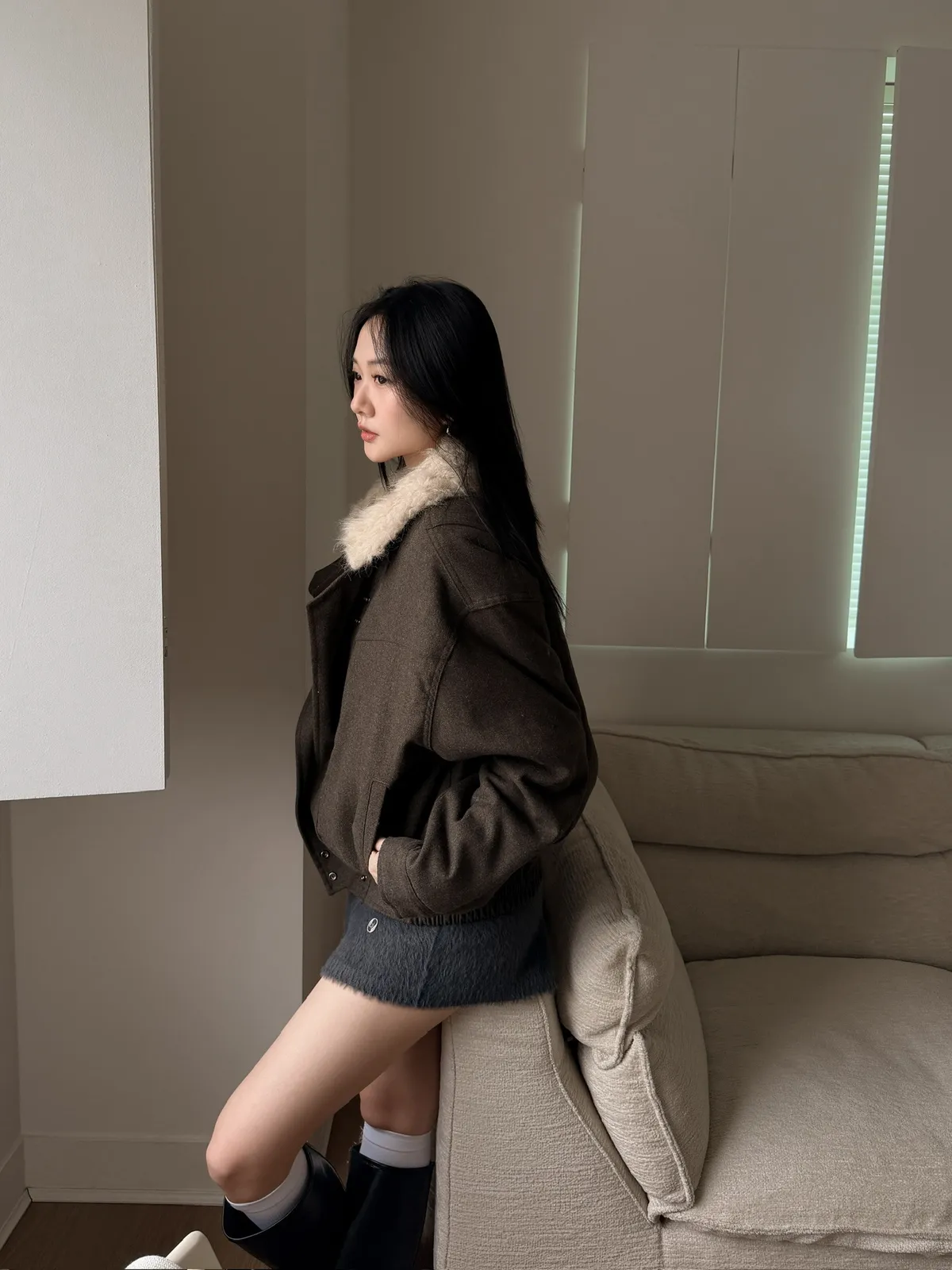 帥!!時髦毛領羊毛夾克/兩色