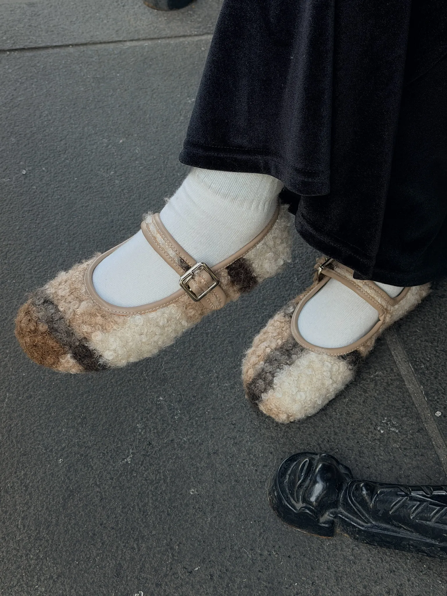 復古混色羊羔毛瑪麗珍鞋/兩色