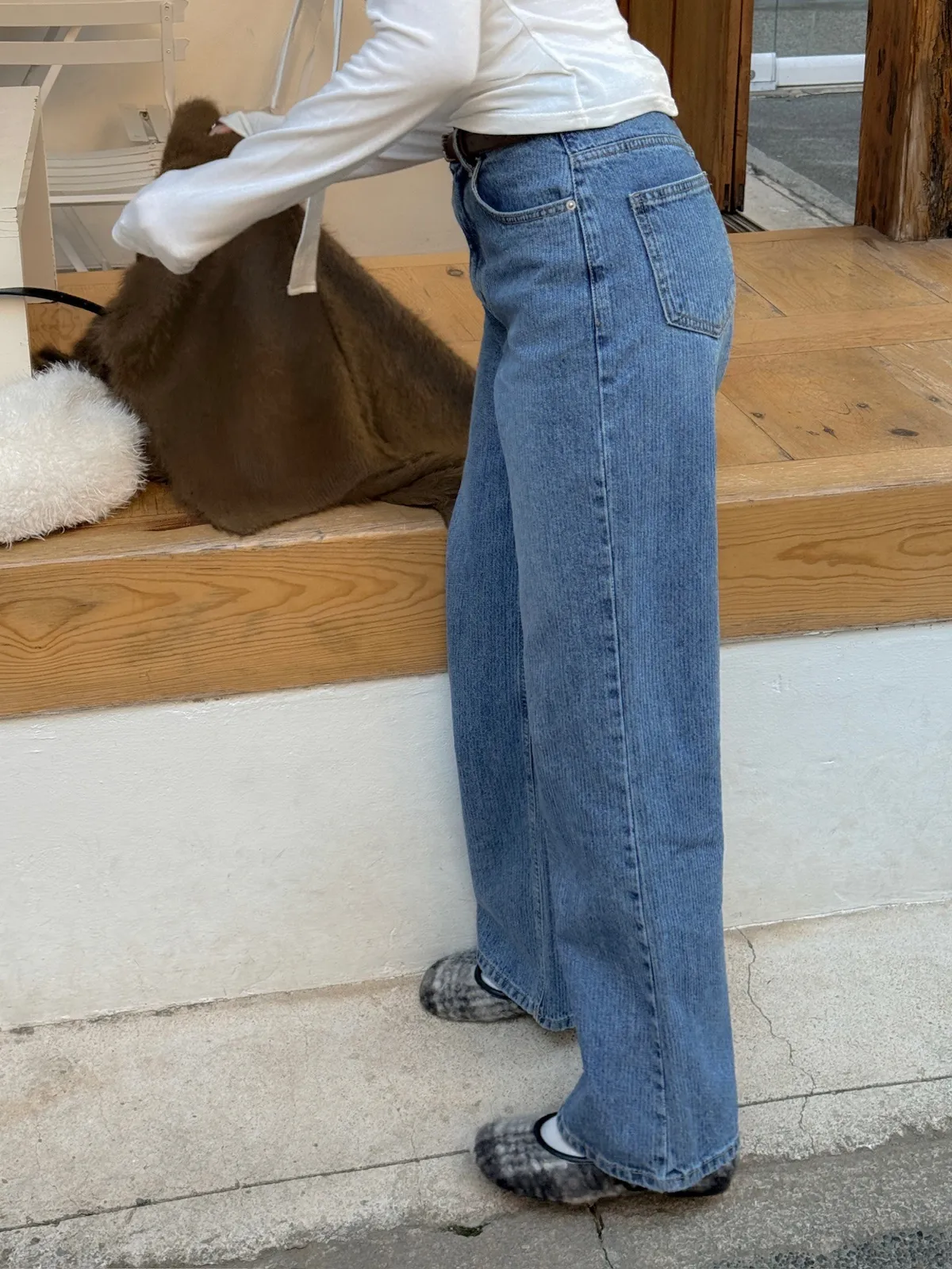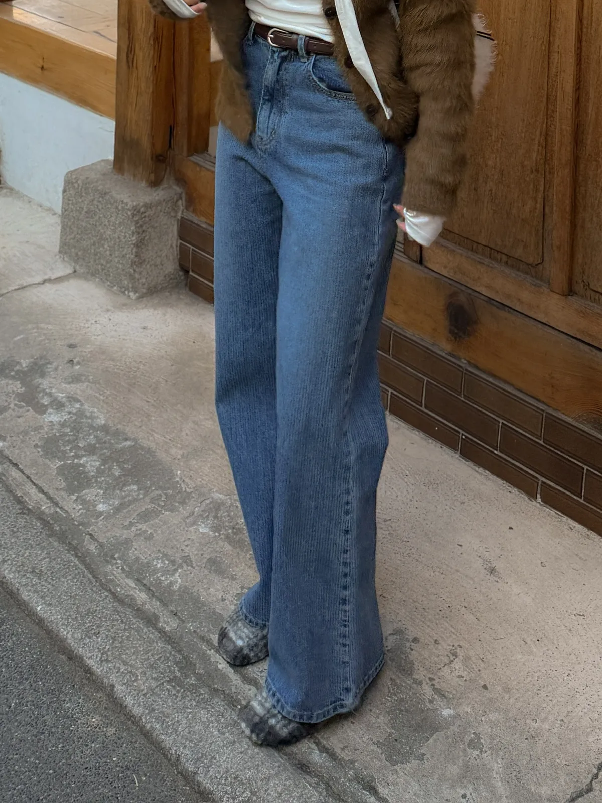 小復古直紋直筒牛仔褲