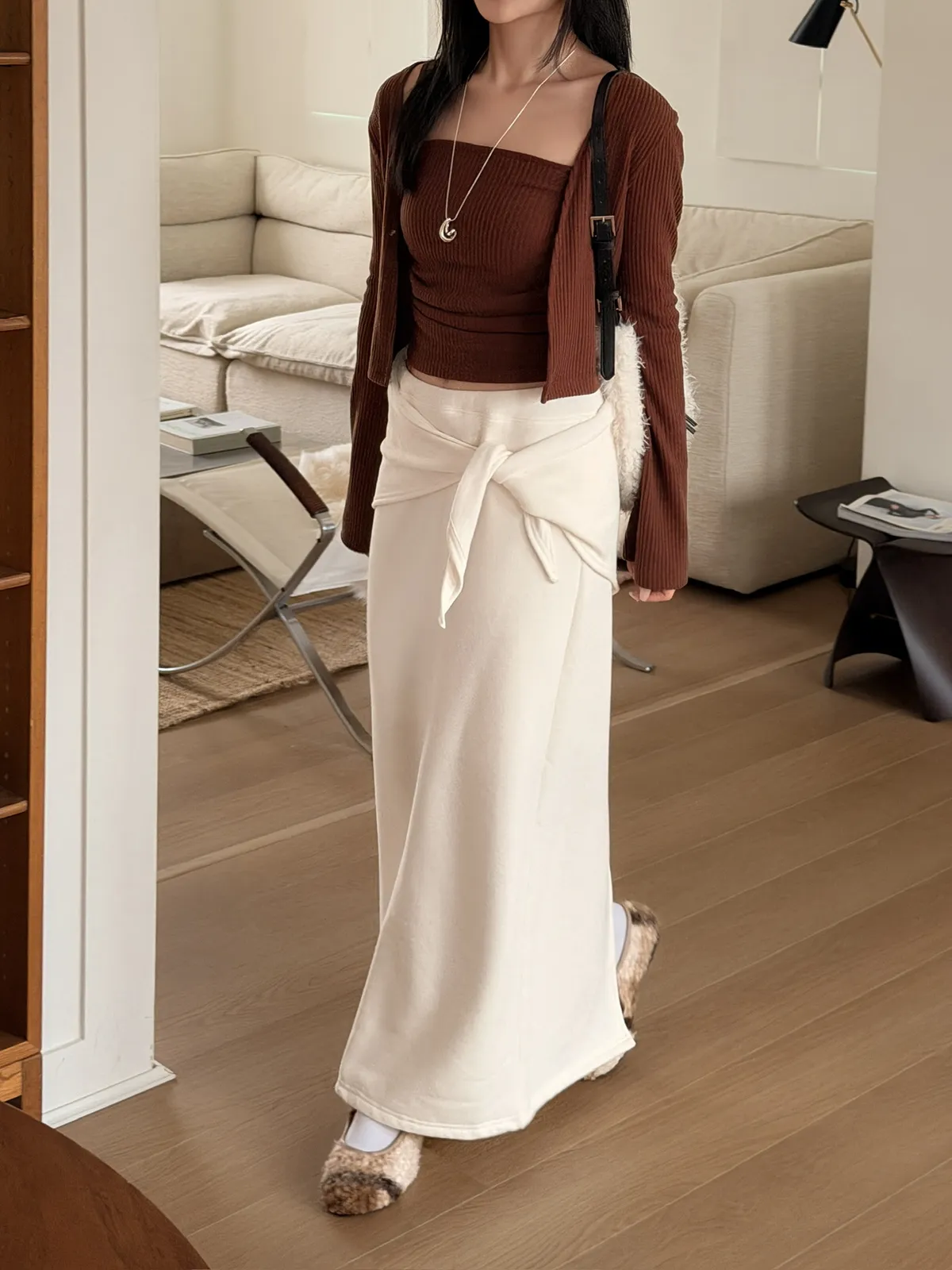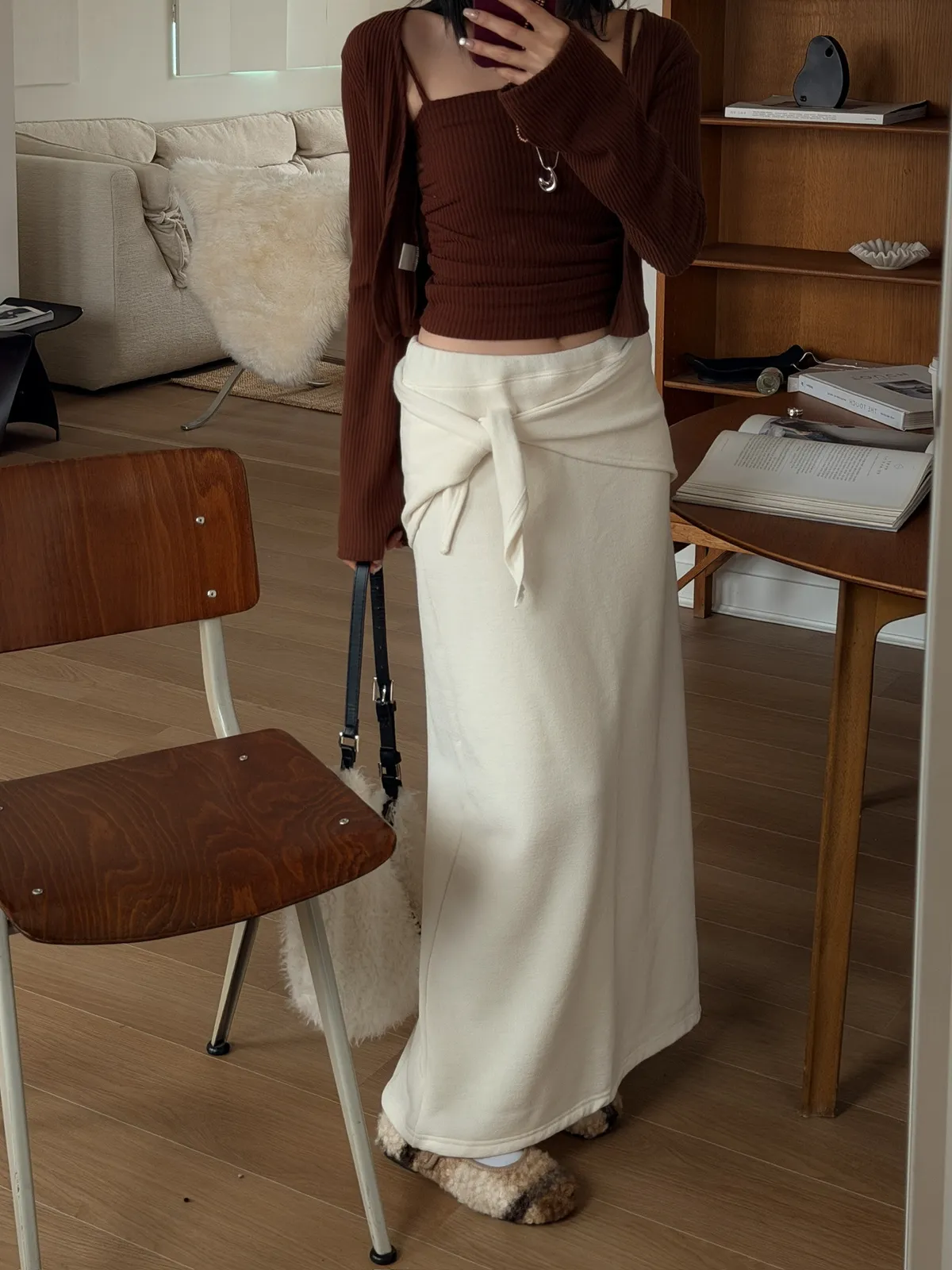 極簡打結刷絨半身裙/三色
