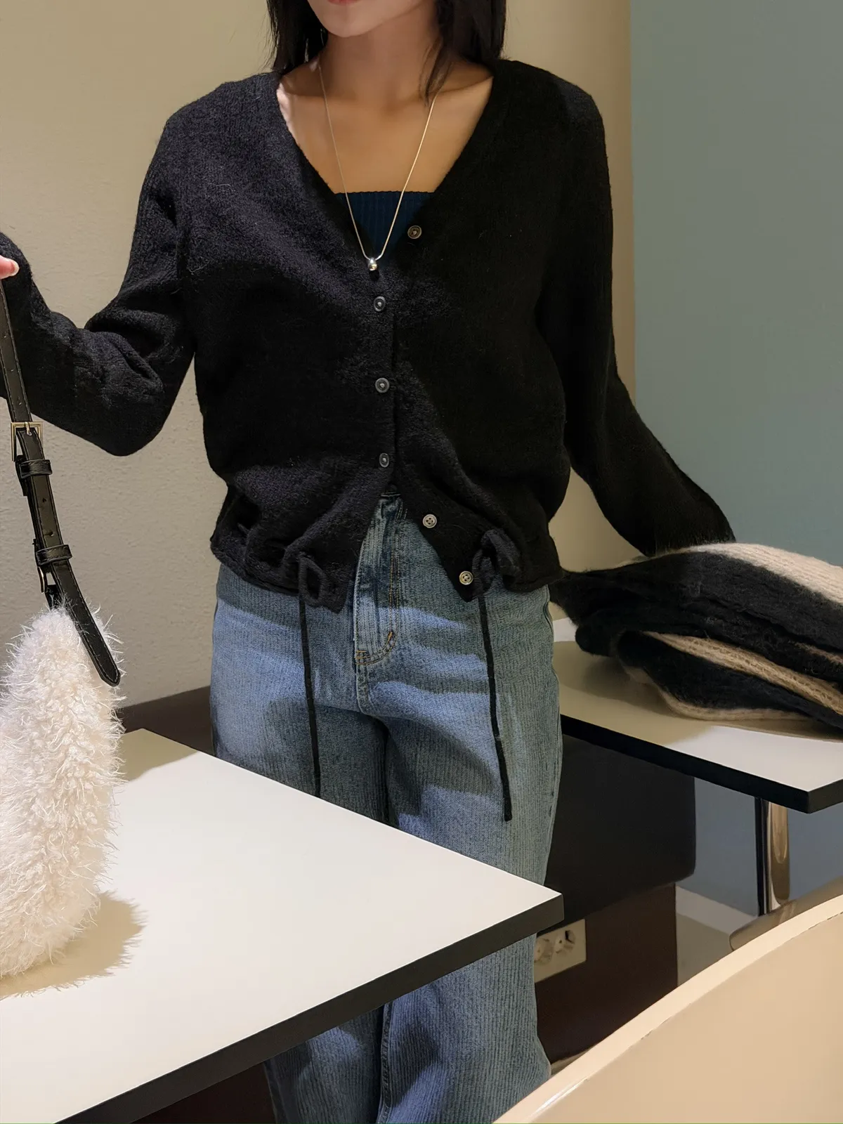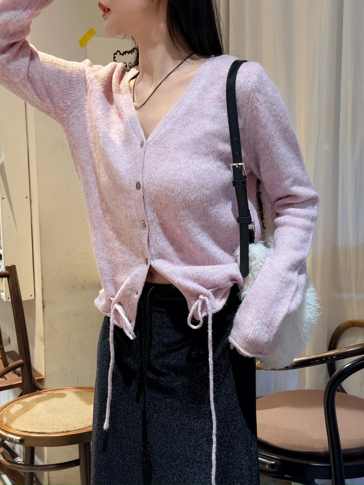 安格拉羊毛抽繩針織上衣/三色