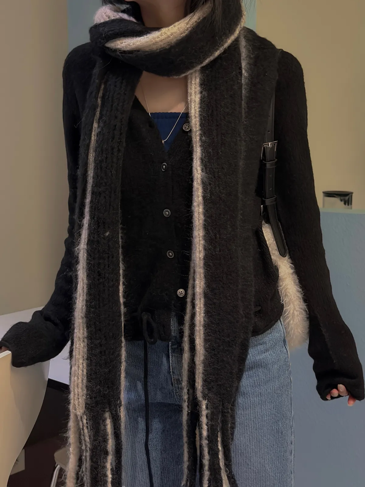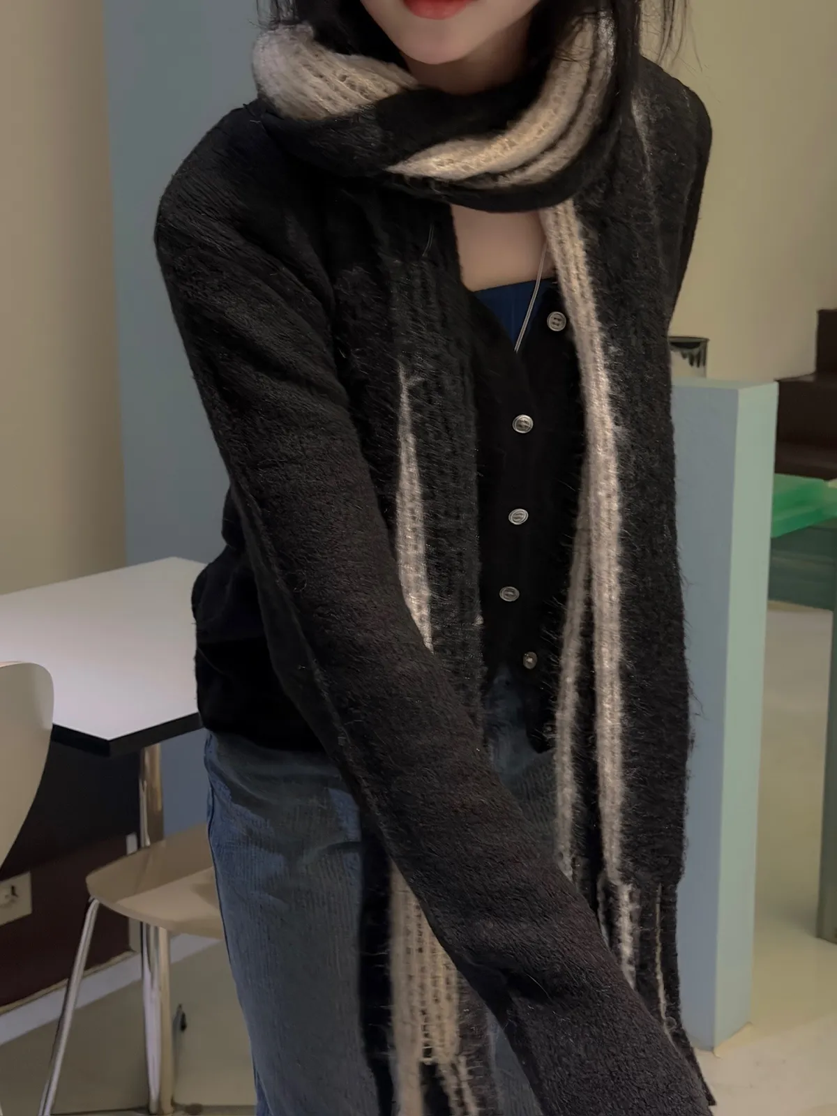 小復古直紋直筒牛仔褲