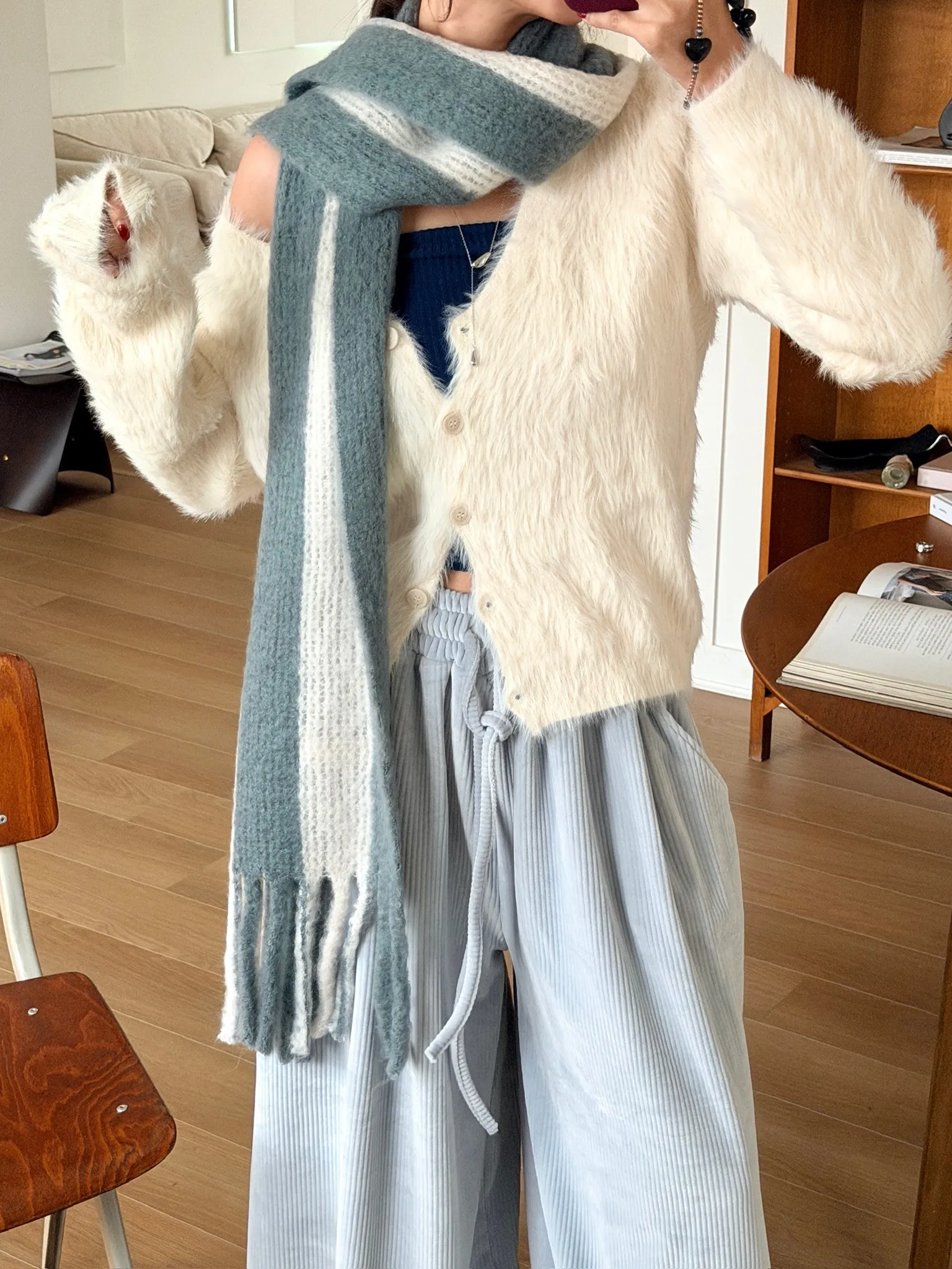 一見鍾情!直條撞色針織圍巾/三色