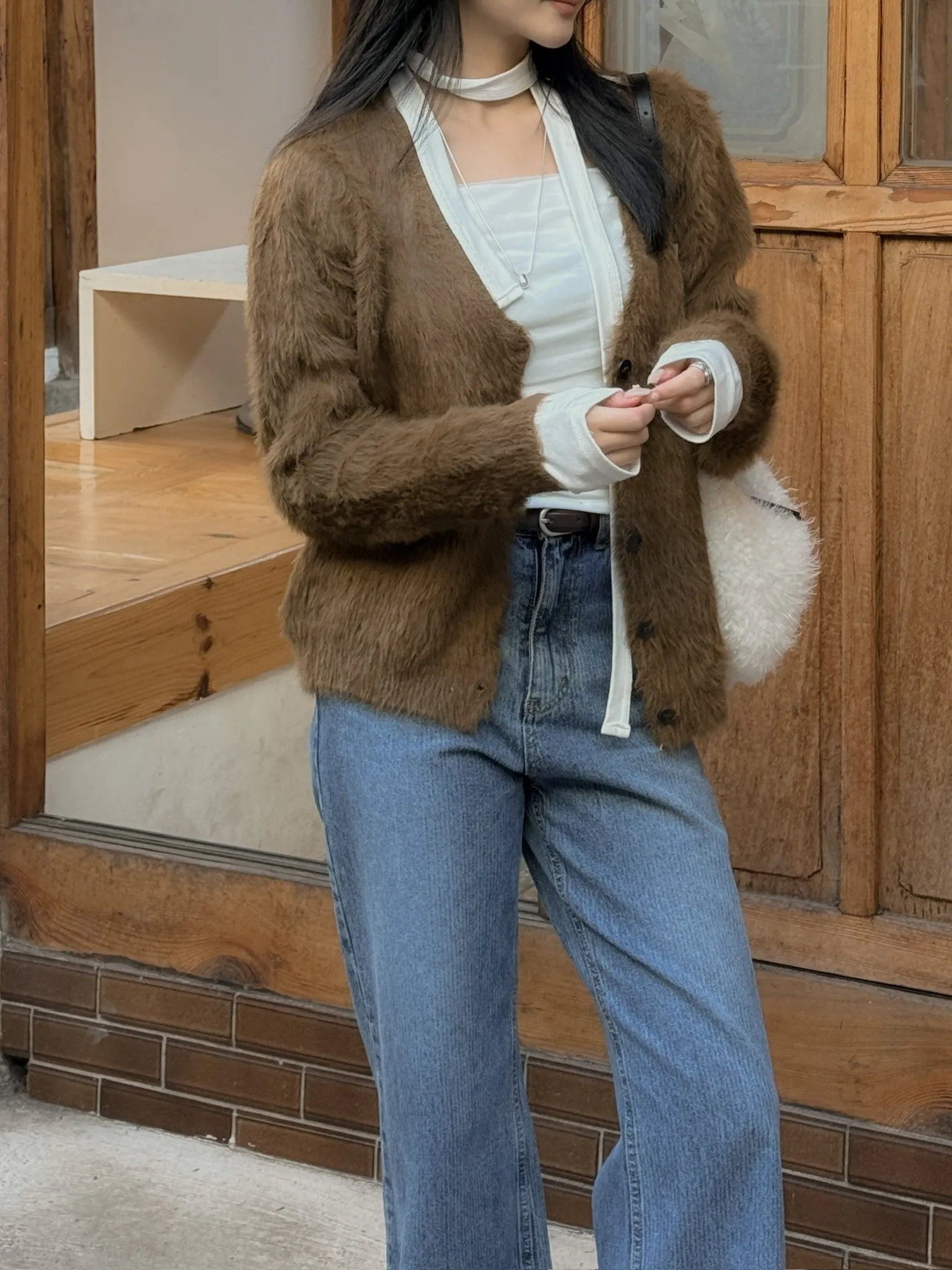 美!毛絨絨排釦針織外套/兩色