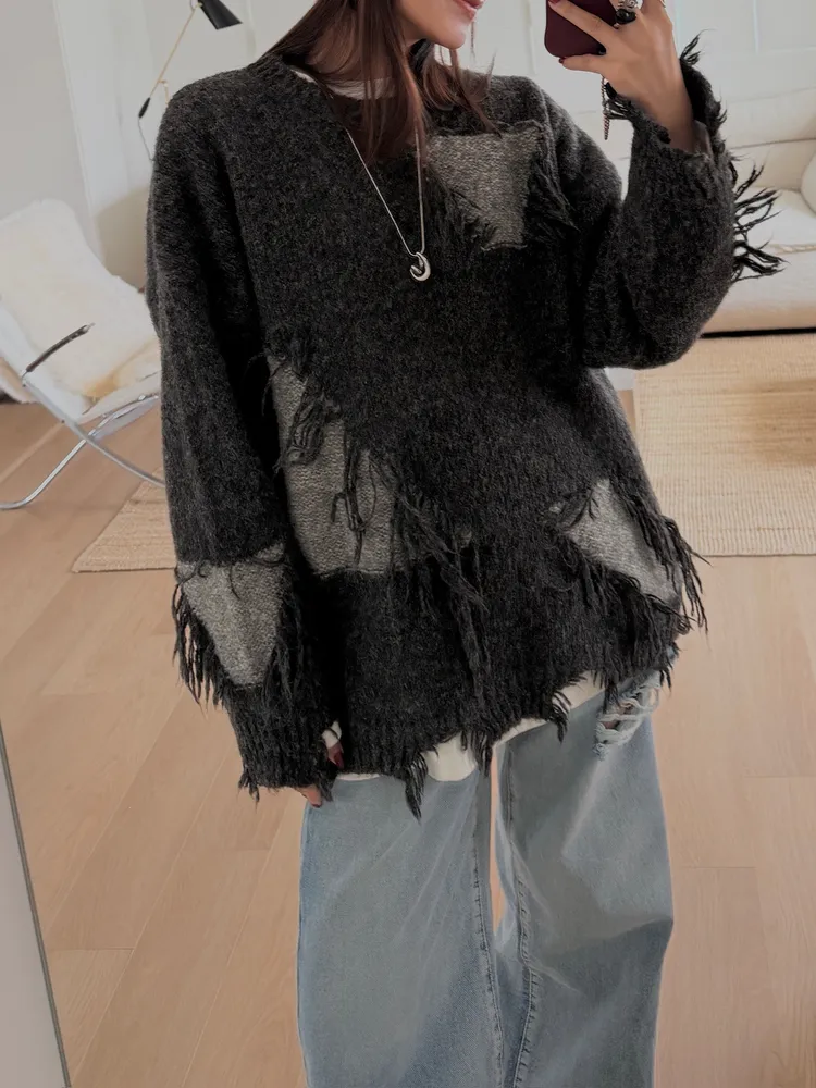 (sale)個性撞色破洞毛衣/兩色