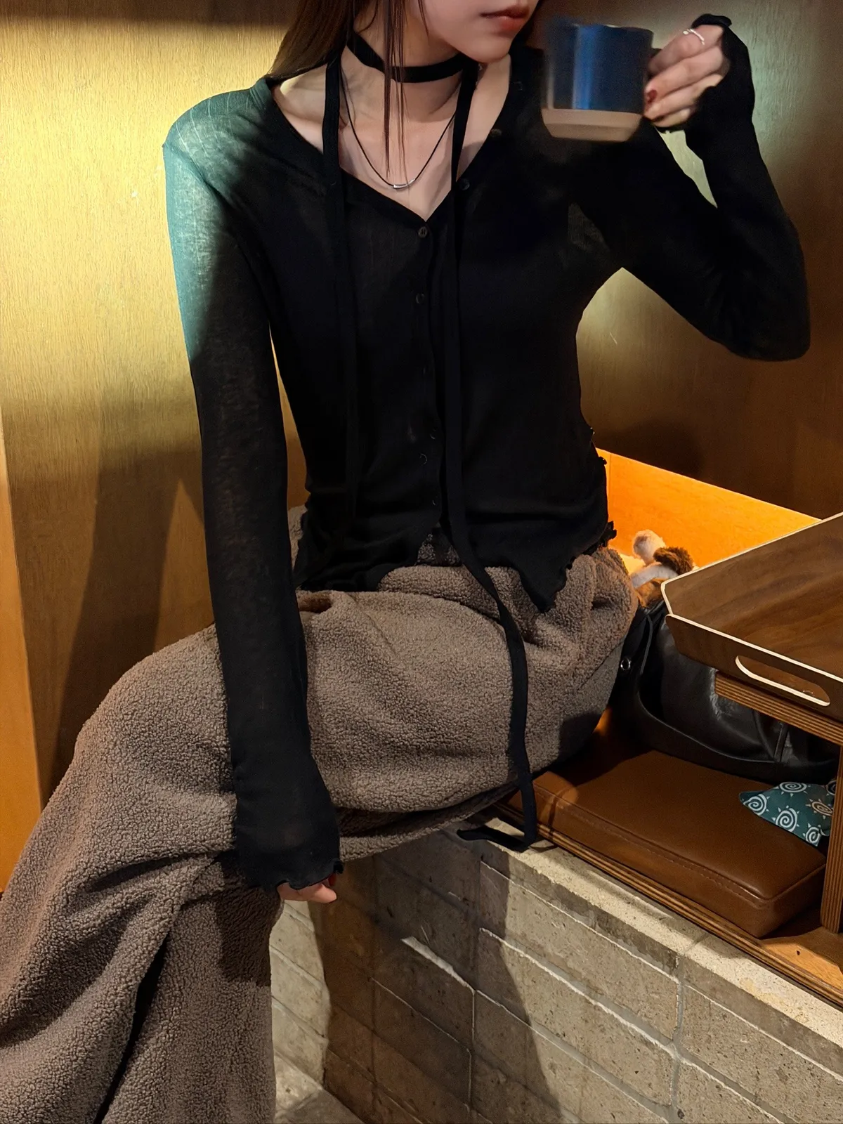 微辣小圍巾透膚羊毛天絲上衣/三色