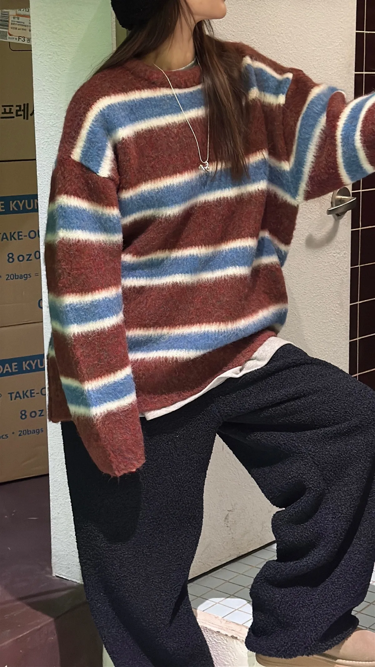 美混色橫條撞色針織毛衣