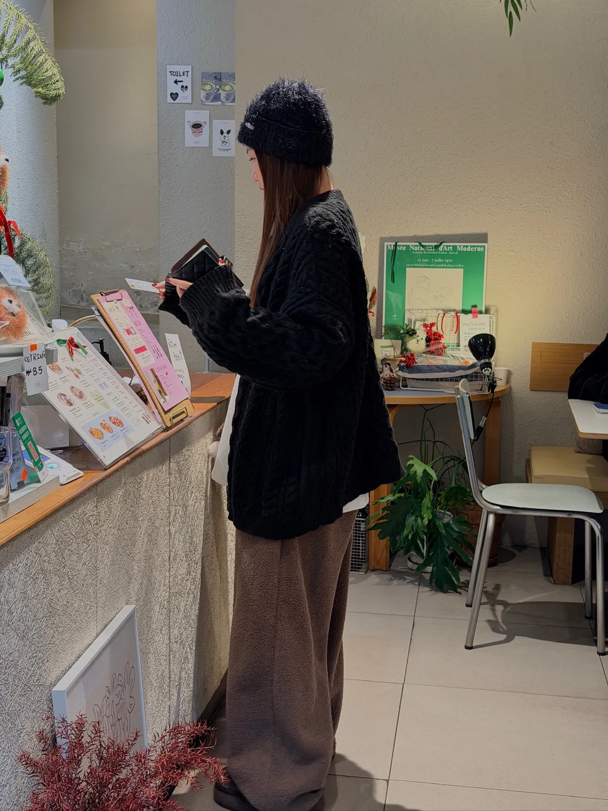 異質拼接護耳羊駝毛帽/三色