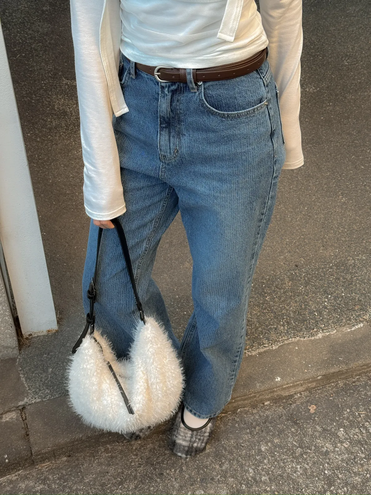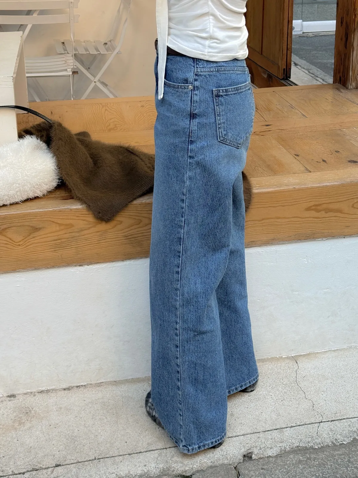 小復古直紋直筒牛仔褲