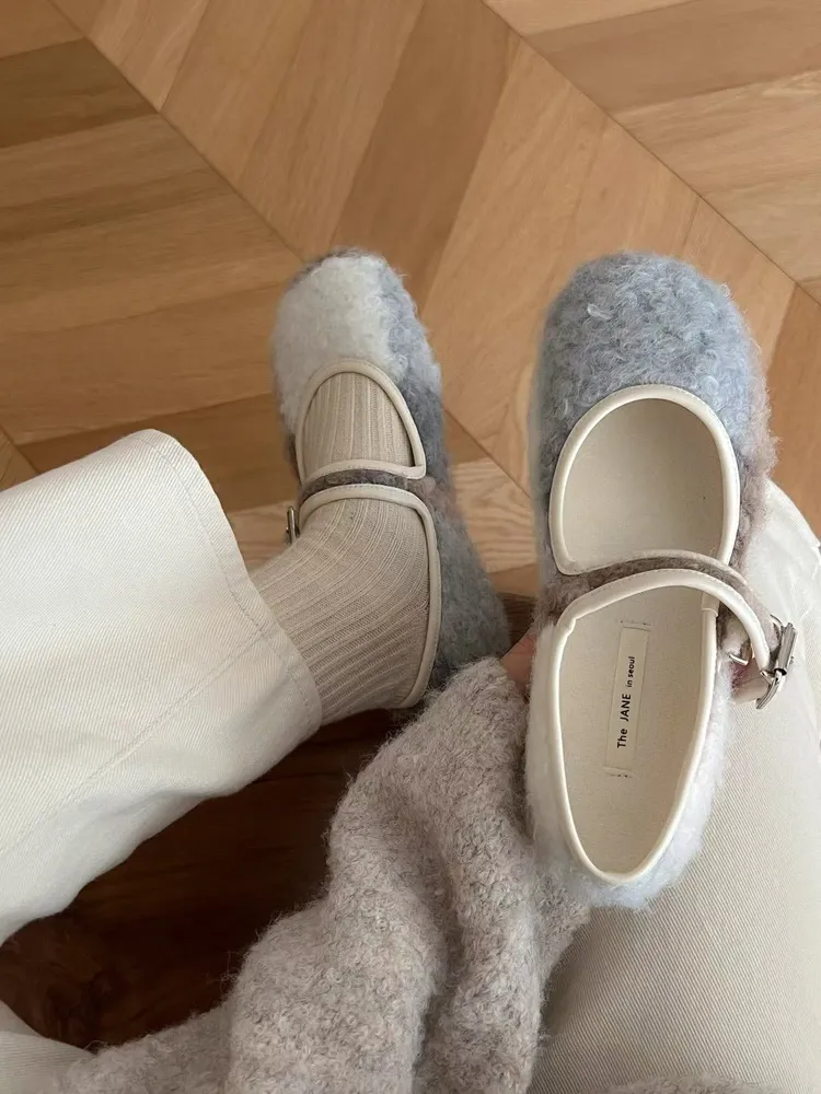 復古混色羊羔毛瑪麗珍鞋/兩色