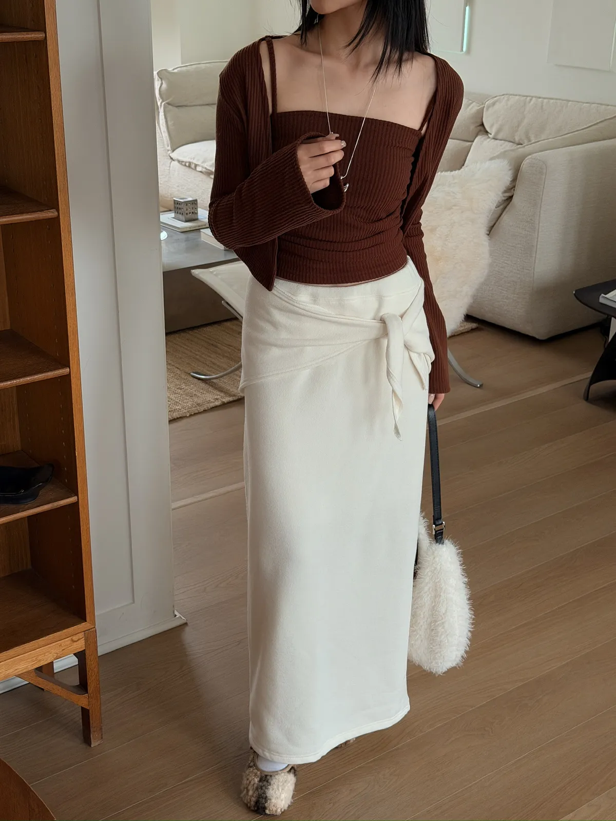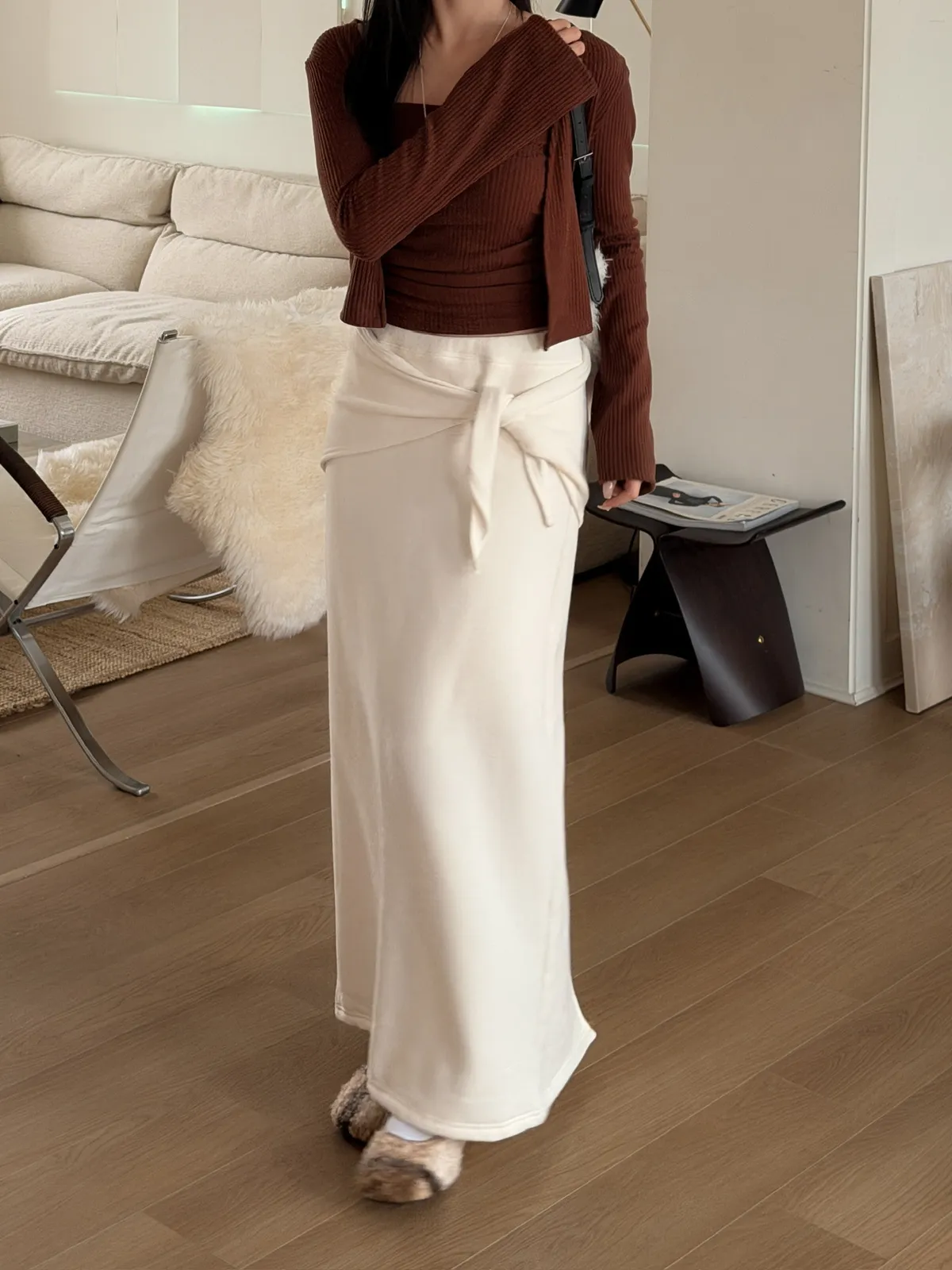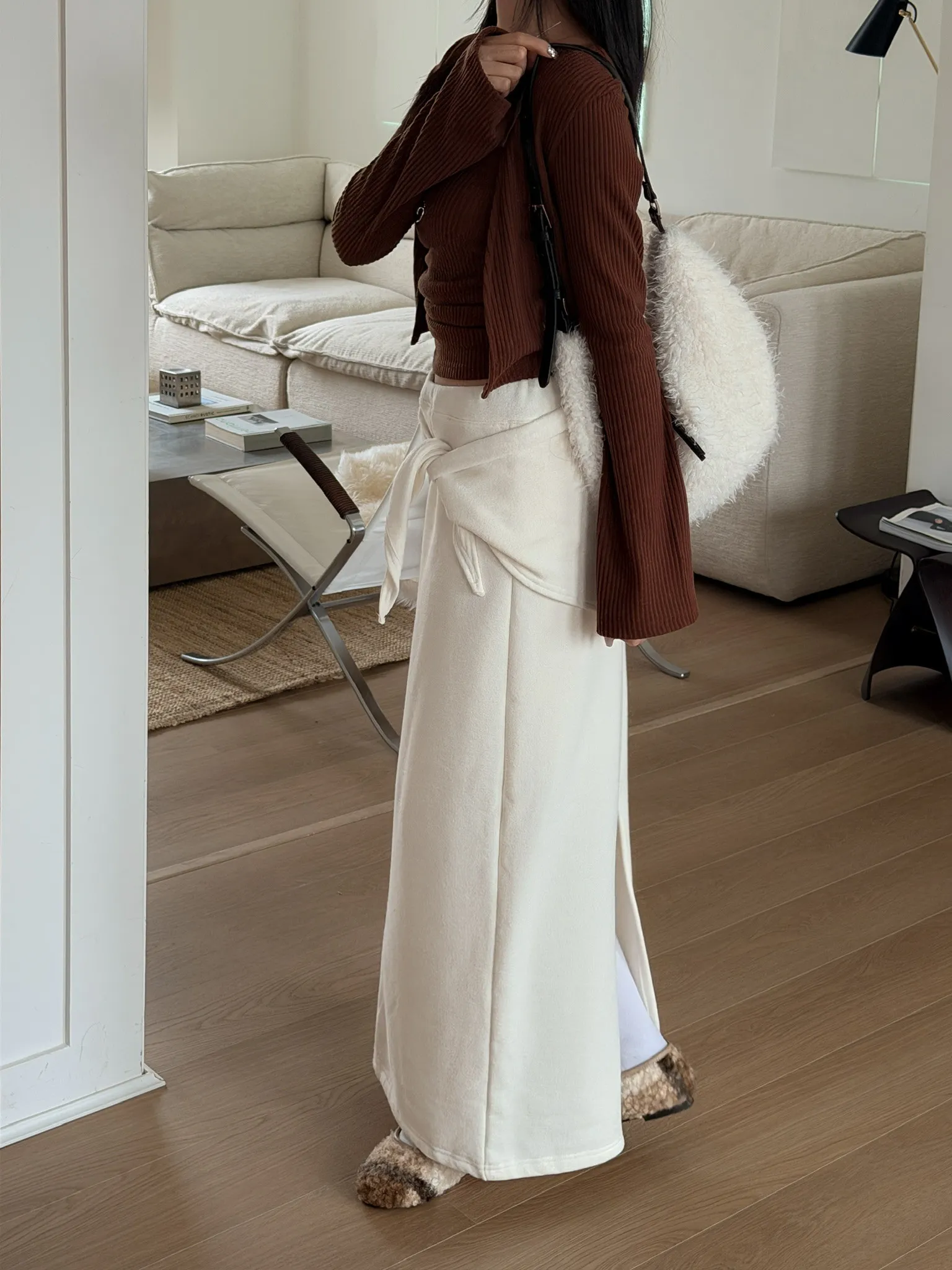 極簡打結刷絨半身裙/三色