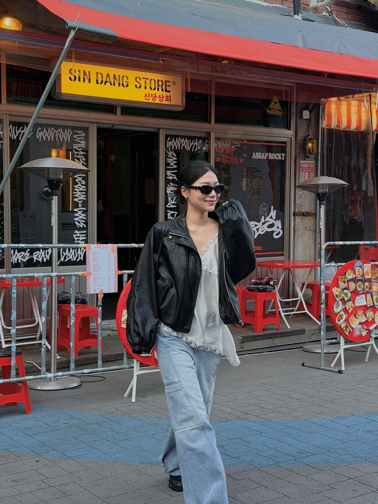 休閒日常抽繩皮革夾克/兩色