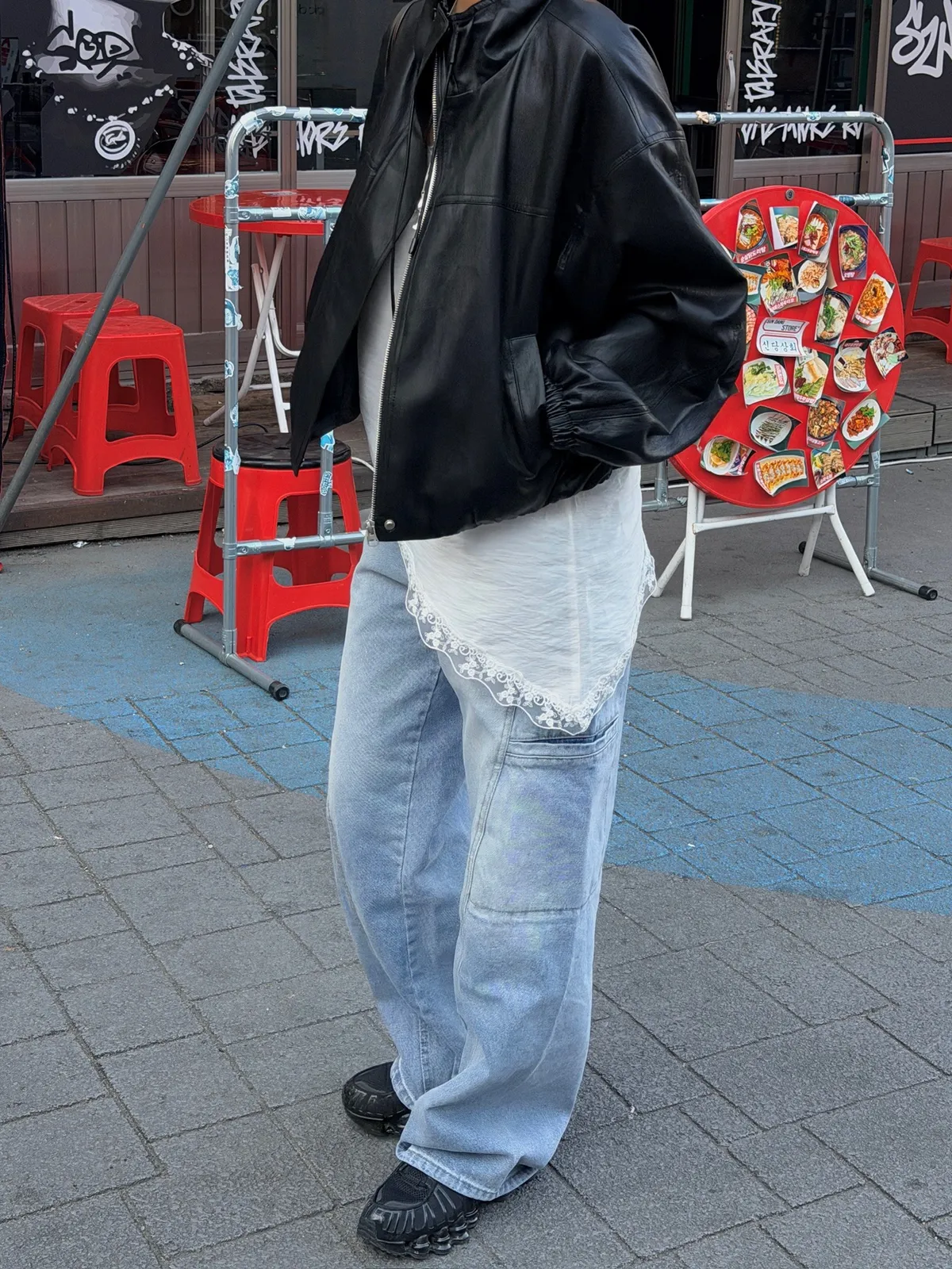 工裝時髦長腿淺牛仔褲