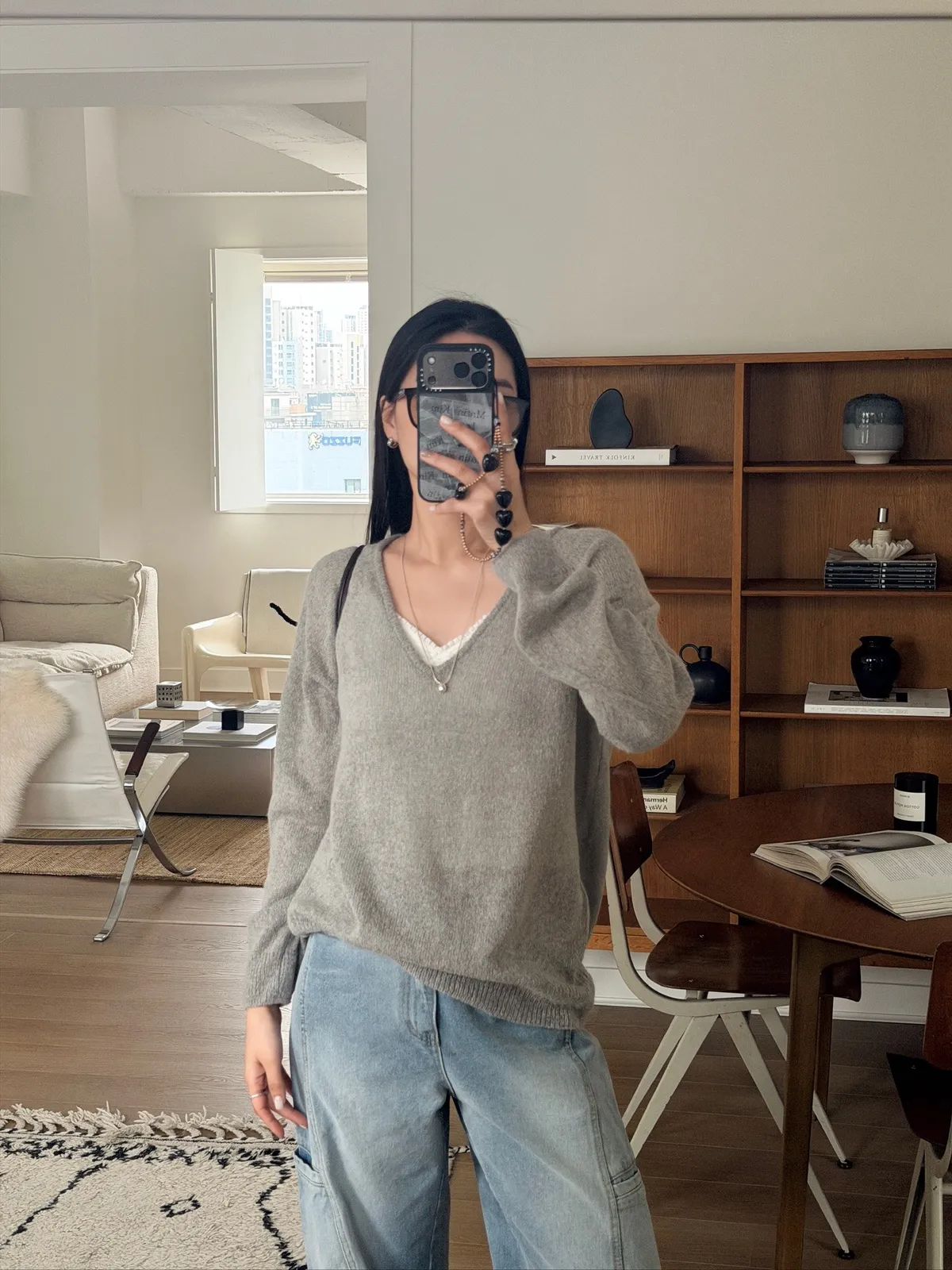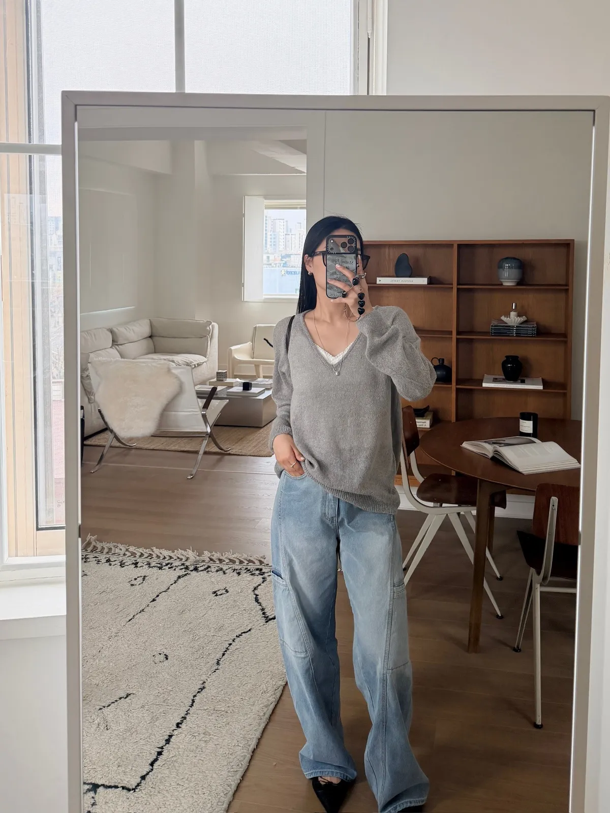 工裝時髦長腿淺牛仔褲