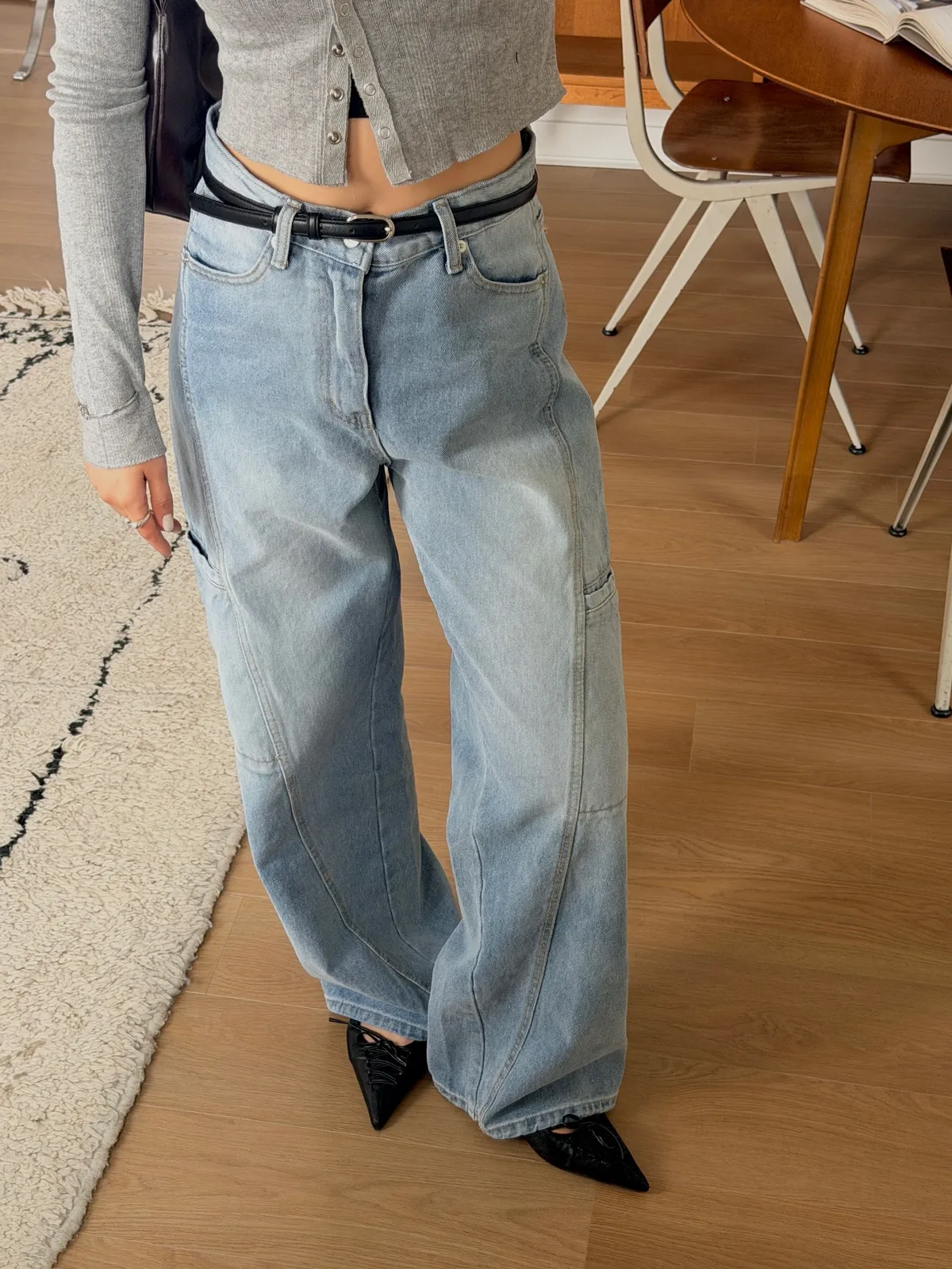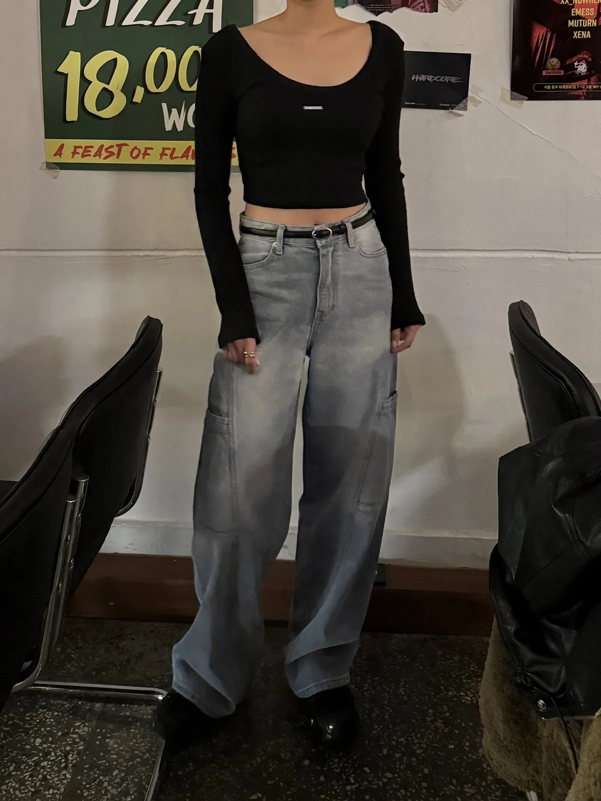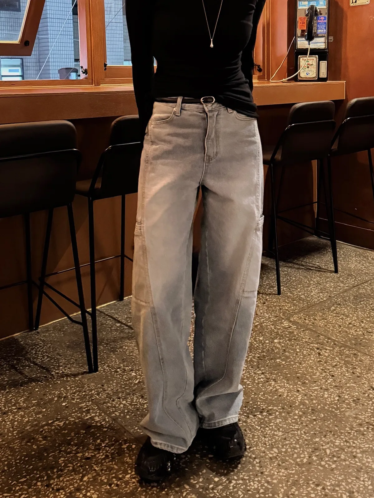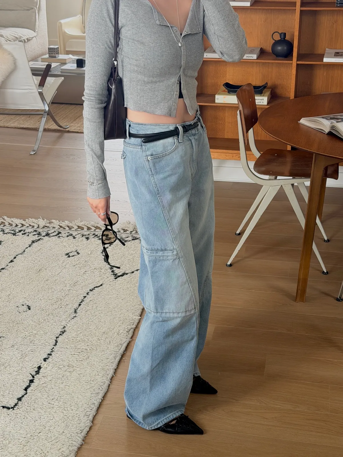 工裝時髦長腿淺牛仔褲