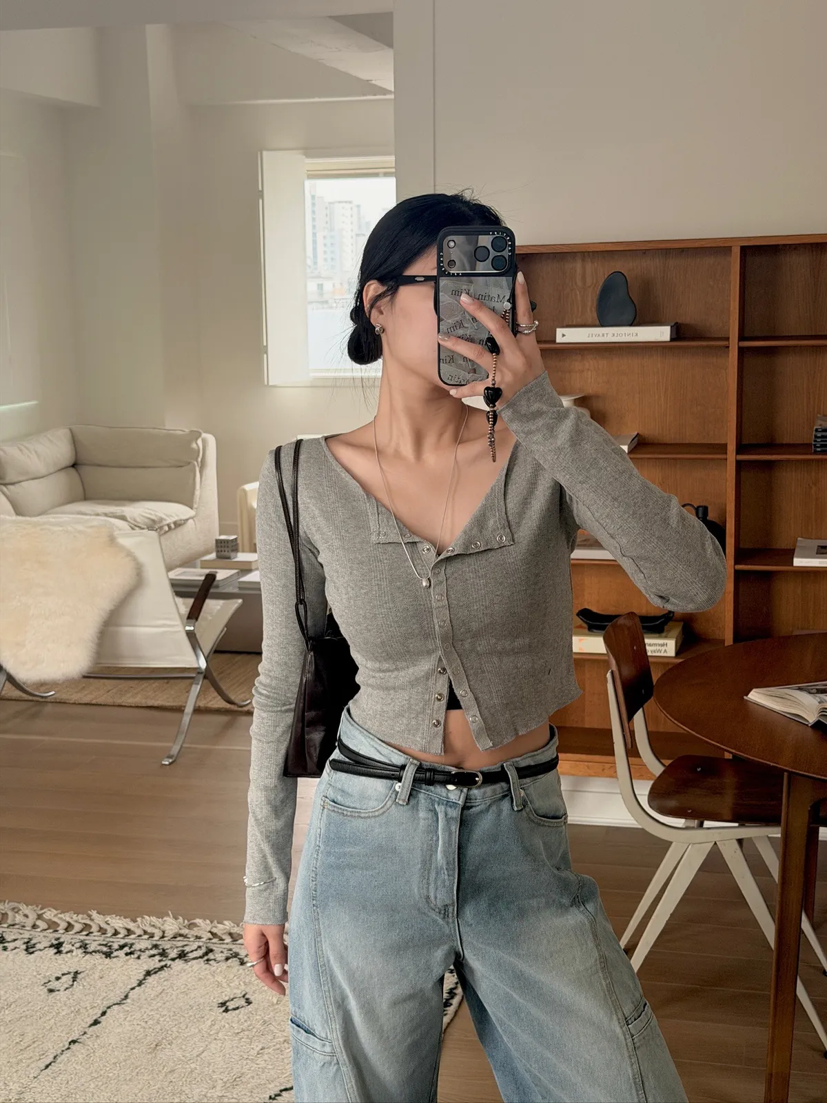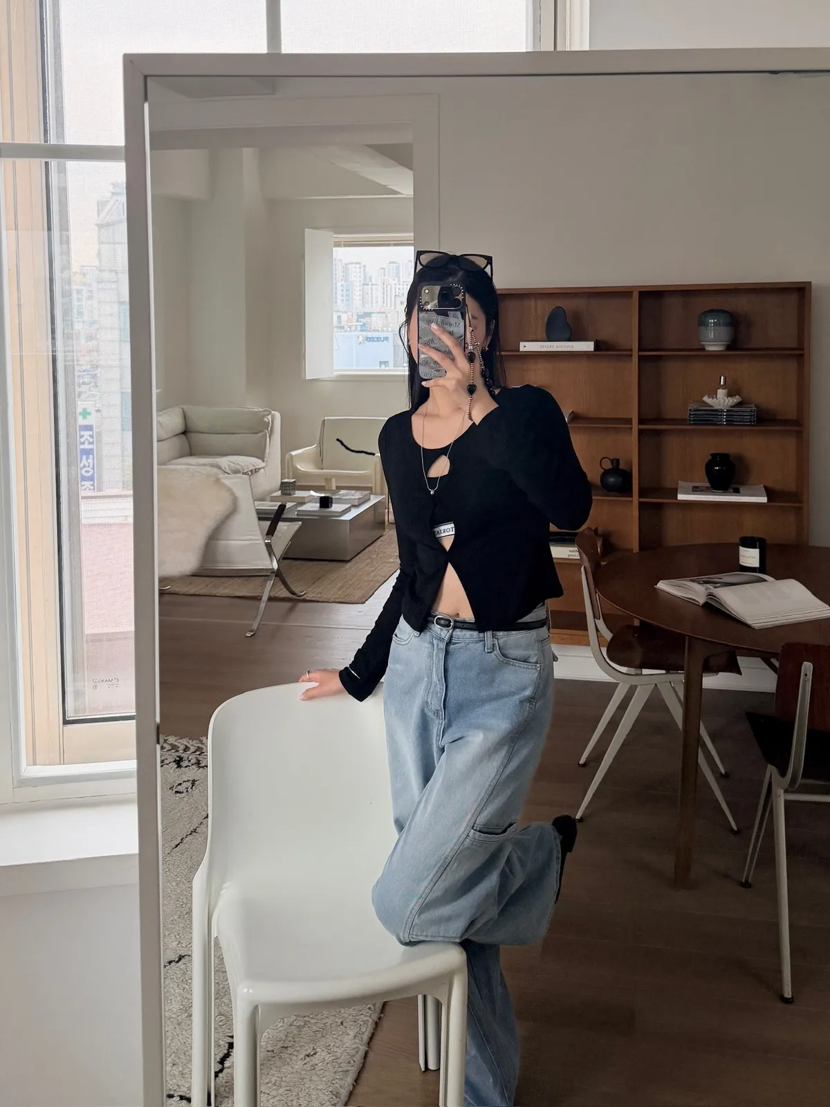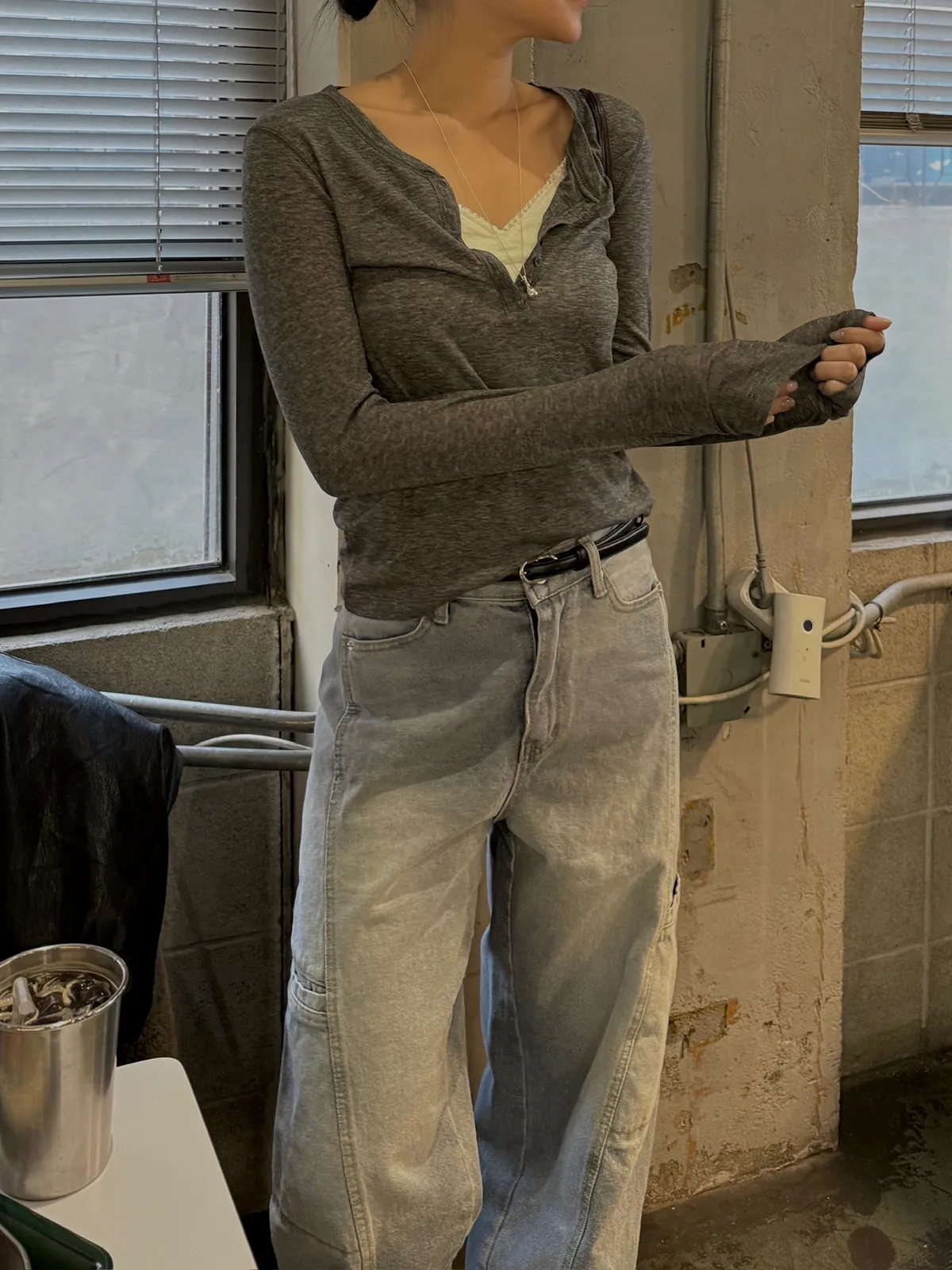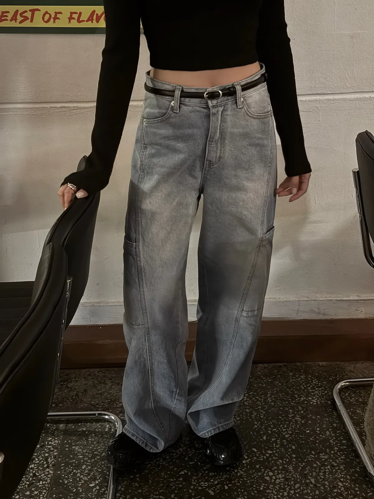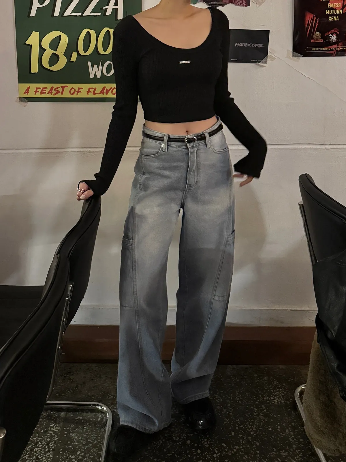 工裝時髦長腿淺牛仔褲